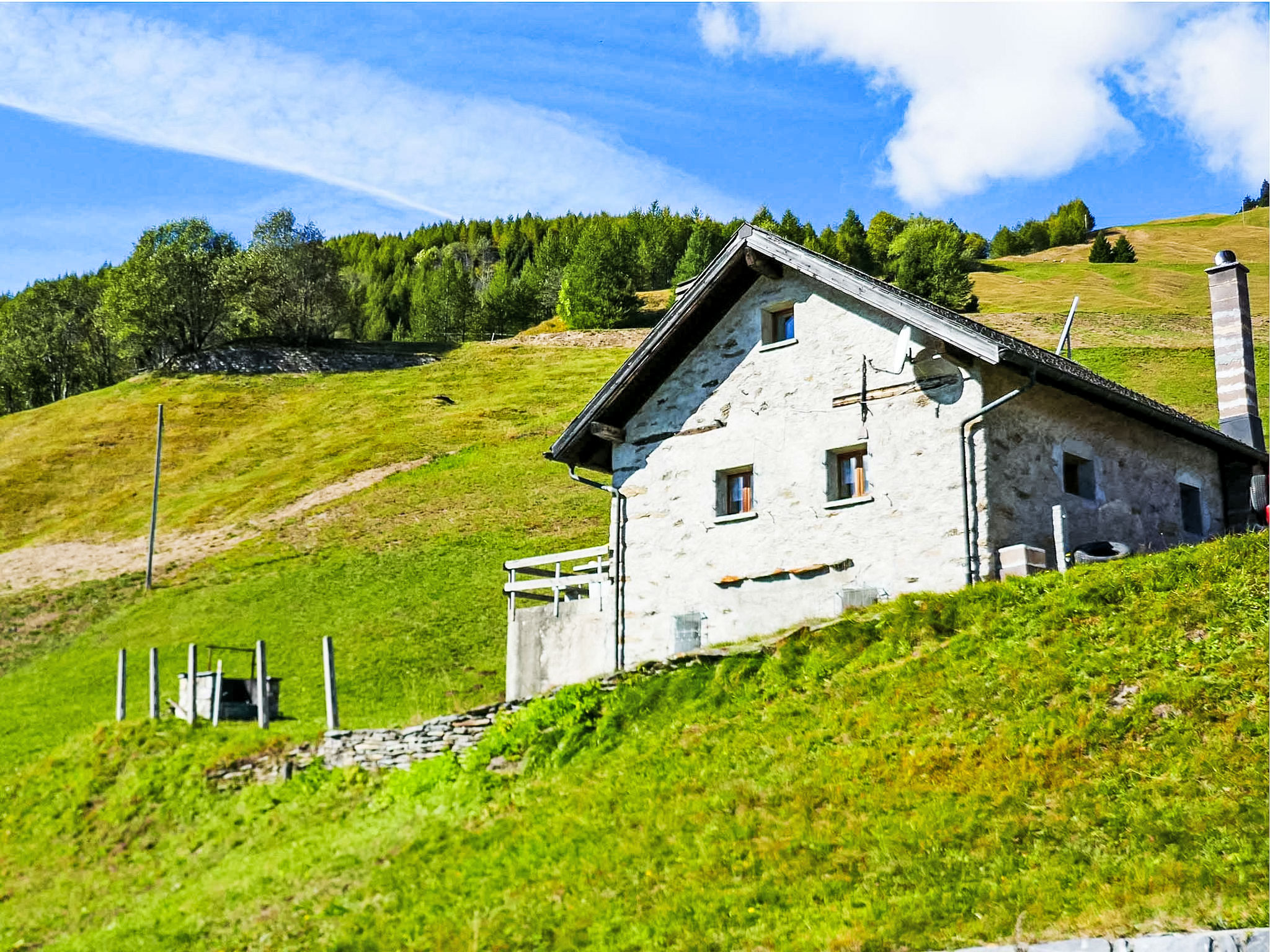 Gariva 20 km von Malvaglia: Rustikales, einfaches Einfamilienhaus "Baita Ficc", 1'480 m.ü.M., umgeben von Wiesen und Feldern. Im Bezirk Valle di Blenio, alleinstehende, ruhige, sonnige Lage, im Grünen, Richtung Süden. Zur Alleinbenutzung: naturbelassenes Grundstück 500 m2. Terrasse, Gartenmöbel, Grill. Im Hause: Einstellraum für Fahrräder. Zufahrt bis zum Haus (Bergstrasse). Parkplatz beim Haus. Lebensmittelgeschäft 3400 km, Supermarkt 3200 km, Restaurant 3400 km, Bushaltestelle "Ponto Valentino Fontana, 134" 9 km, Bahnstation "Biasca FFS - SBB" 25 km. Wanderwege ab Haus 5 m. Nahe gelegene Sehenswürdigkeiten: Museo della Valle di Blenio, Castello di Seravalle, Chiesa Negrentino, Archivio Doneta, Castelli di Bellinzona UNESCO, Monte Tamaro, Swissminiatur. Bekannte Seen in der Umgebung sind gut erreichbar: Lago di Luzzone, Lago Retico, Lago Maggiore, Lago d Lugano. Wandergebiete: Nara, Campo Blenio, Lucomagno, Valle di Blenio, Leventina. Bitte beachten: Fahrzeug empfohlen. Babyausstattung auf Anfrage (extra). Tiere in der Umgebung.