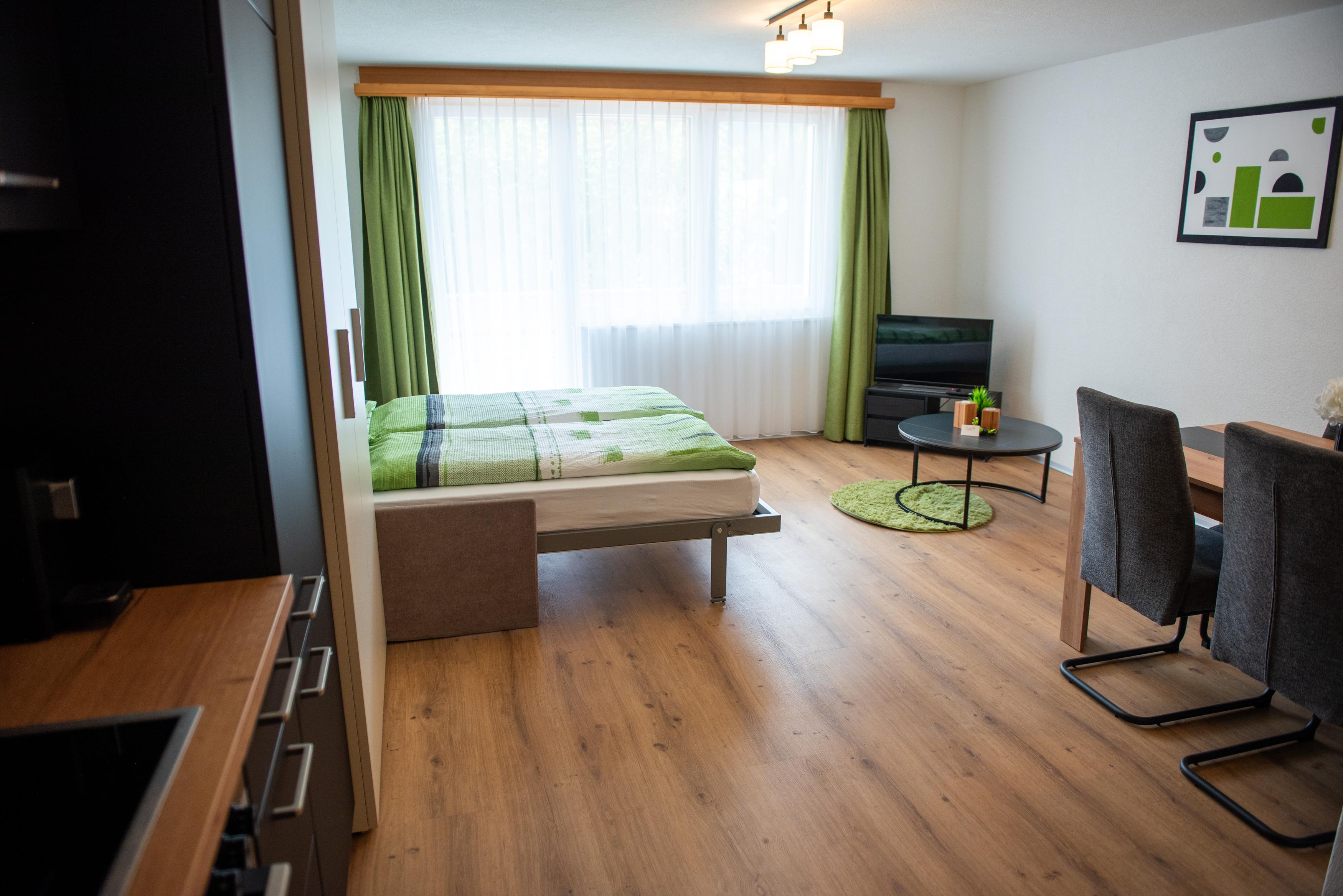 Unsere modern gestalteten Ferienwohnungen bieten ihnen höchsten Komfort und eine gemütliche Atmosphäre. Jedes Appartement ist vollständig ausgestattet und verfügt über eine Küche, ein Bad sowie einen Balkon mit atemberaubendem Blick auf die umliegenden Berge. Hier können sie sich nach einem erlebnisreichen Tag entspannen und die frische Bergluft geniessen.