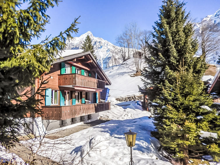 Freistehendes, komfortables Chalet auf 3 Stockwerken. 2 Wohnungen im Ferienhaus. Im Ortsteil Terrassenweg, 2.5 km vom Zentrum, ruhige, sonnige Lage am Hang, 150 m vom Skigebiet, Richtung Süden. Im Hause: Skiraum, Zentralheizung, Waschmaschine, Wäschetrockner (zur Mitbenutzung). Abstellraum vorhanden. Zufahrt bis 50 m zum Haus. Im Winter bitte Schneeketten mitbringen. 50 m Treppenweg bis zum Haus. Parkplatz in 50 m. Einkaufszentrum 2.5 km, Restaurant 150 m, Bäckerei 2.5 km, Fahrradverleih 2.5 km, Zentrum zu Fuss in 10 Minuten erreichbar, Bushaltestelle "Kreuzweg + Bodmi" 150 m, Bahnstation "Grindelwald Dorf" 2.9 km, Freibad 4 km, Hallenbad 2.8 km. Golfplatz (9 Loch) 3.5 km, Tennis 3 km, Minigolf 2.5 km, Sportzentrum 2.8 km, Skilift 150 m, Gondelbahn 2.6 km, Skipisten, Skiverleih, Skibushaltestelle, Skischule, Kinderskischule 150 m, Langlaufloipe 3 km, Eisfeld 2.8 km, Kinderspielplatz 2.8 km. Bekannte Skigebiete sind gut erreichbar: First 150 m, Kleine Scheidegg/Männlichen 4 km. Bekannte Seen in der Umgebung sind gut erreichbar: Thuner-/Brienzersee 20 km. Wandergebiete: Jungfrau Region. Bitte beachten: kein Fahrstuhl vorhanden. Gratis Skibus. Der gratis Skibus fährt zum Skigebiet Kl. Scheidegg/Männlichen und First. Die Schlüsselübergabe findet bei der Agentur Interhome in Grindelwald statt.