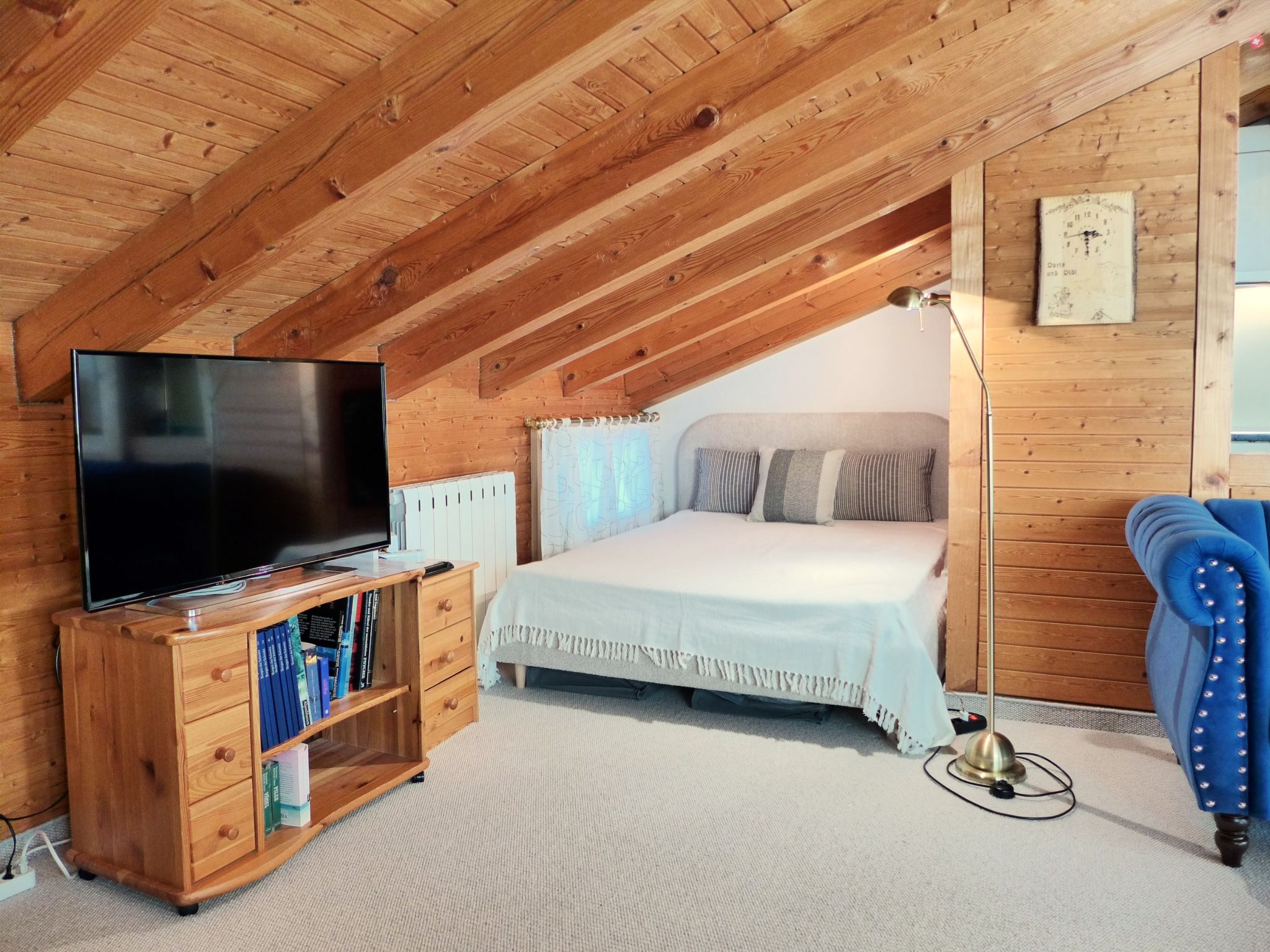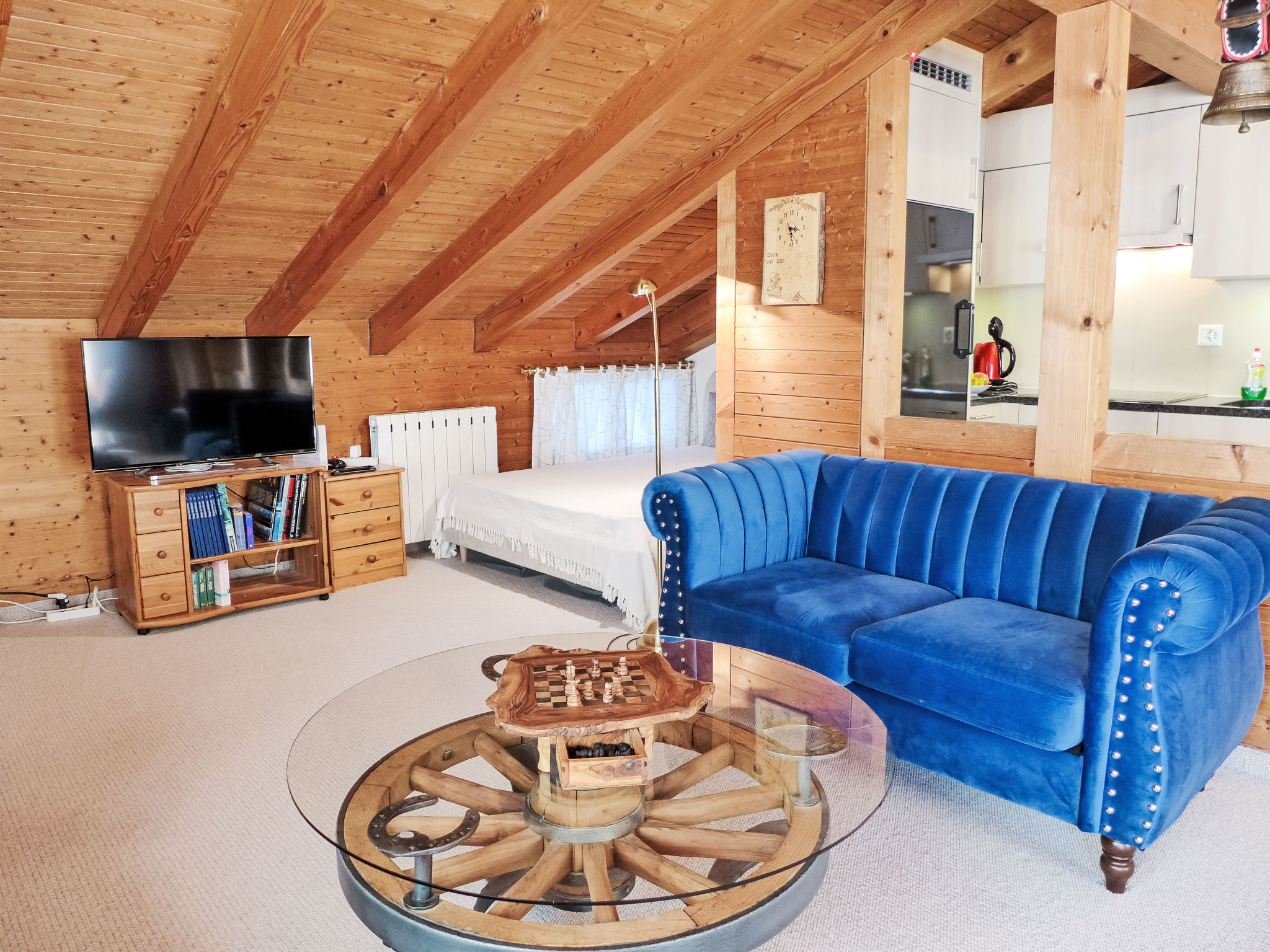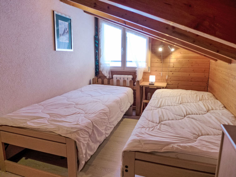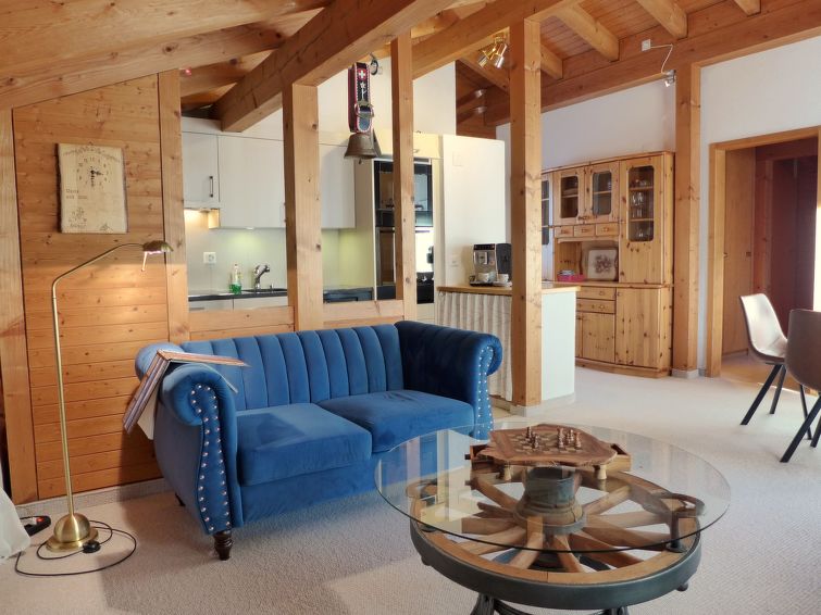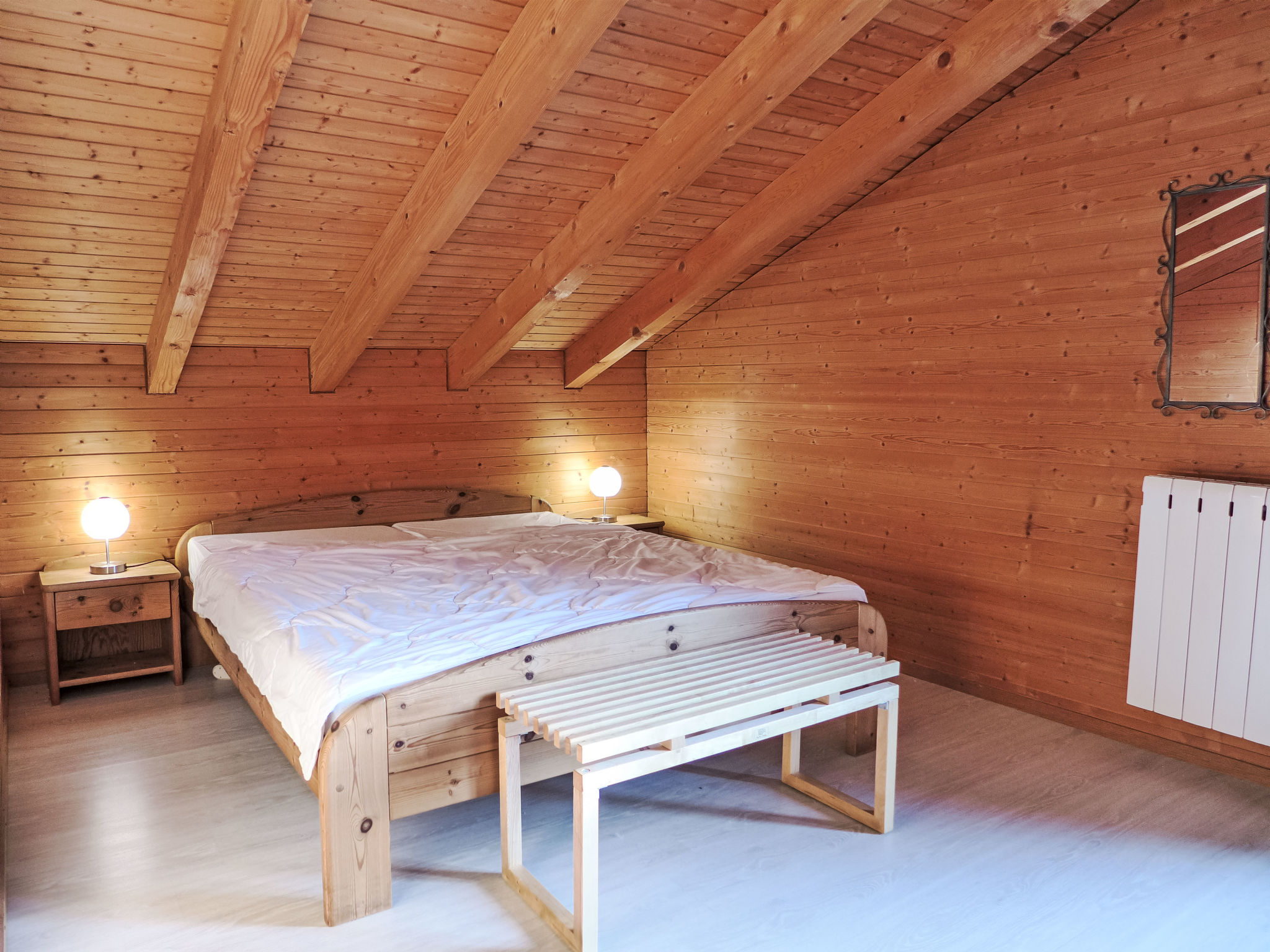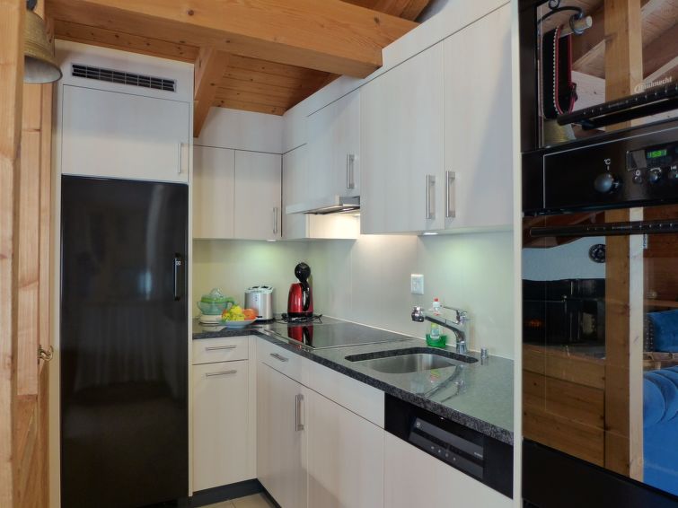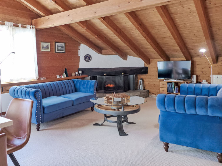 "Chalet Bienli Oben", 3-Zimmer-Wohnung im Dachgeschoss, Südlage. Objekt geeignet für 4 Erwachsene + 2 Kinder. Teilweise abgeschrägt, teilweise renoviert im Jahre 2024, gemütlich und mit viel Holz eingerichtet: abgeschrägtes, offenes Wohn-/Schlafzimmer mit 1 Doppelbett (160 cm, Länge 200 cm), offenem Kamin (nur Deko), Esstisch und Kabel-TV. Ausgang zum Balkon, Richtung Süden. 1 abgeschrägtes Zimmer mit 1 Doppelbett (2 x 80 cm, Länge 200 cm). Ausgang zum Balkon. 1 abgeschrägtes kleines Kinderzimmer mit 2 Betten (90 cm, Länge 200 cm). Offene Küche (Backofen, Geschirrspüler, 4 Glaskeramikplatten, Toaster, Wasserkocher, Mikrowelle, elektrische Kaffeemaschine, Racletteofen, Fondue Set (Chinoise, Käse)). Bad/WC. Teppichboden. Grosser Balkon, Südlage. Balkonmöbel. Herrliche Panoramasicht auf die Berge und Eigernordwand. Zur Verfügung: Haartrockner. Internet (Wireless LAN, gratis). Parkplatz in 50 m. Bitte beachten: Nichtraucher-Unterkunft. Feuerlöscher.