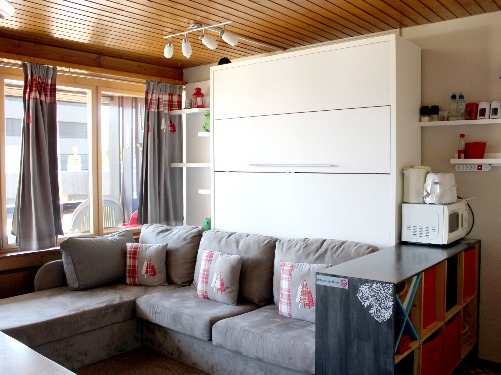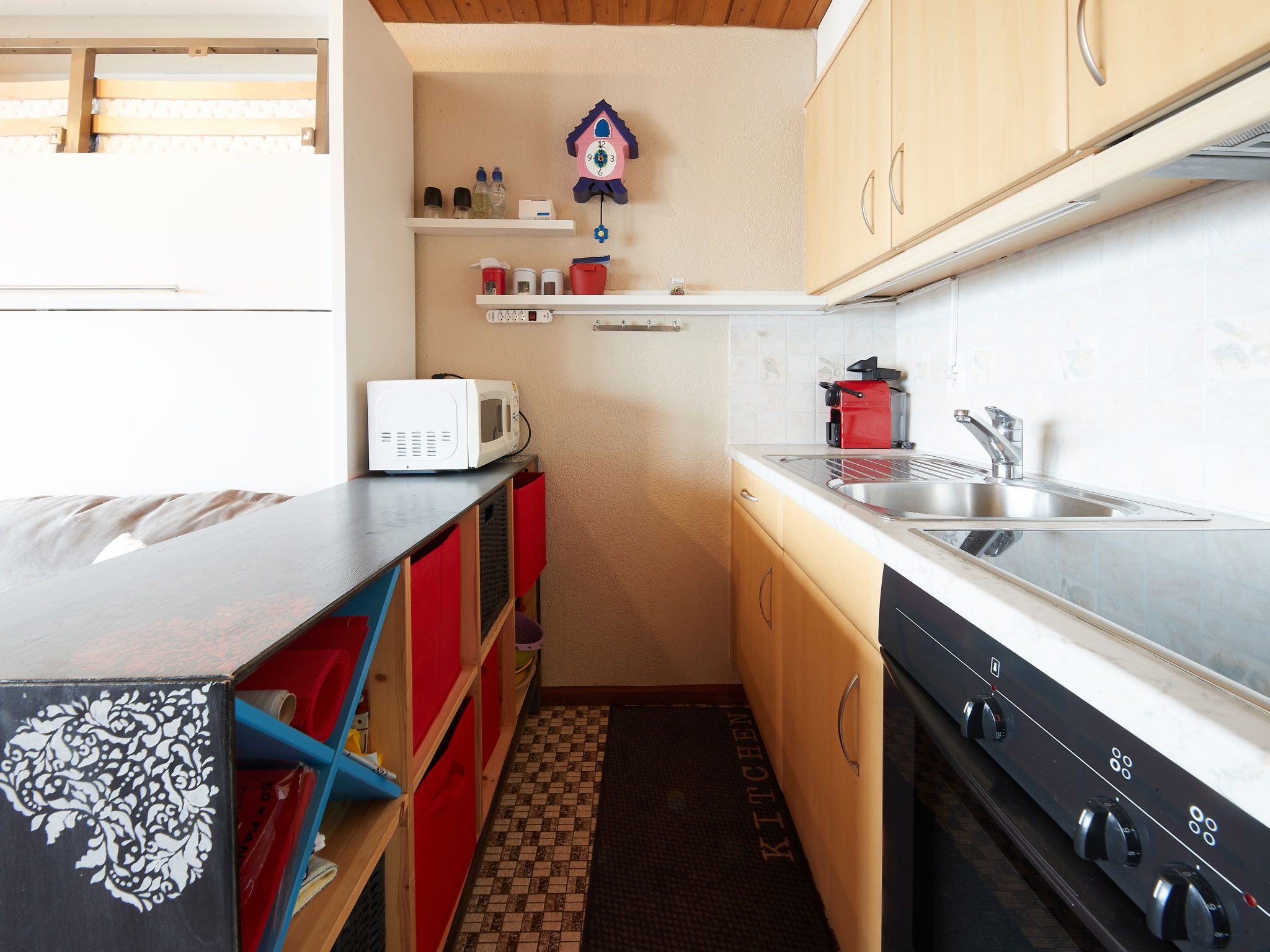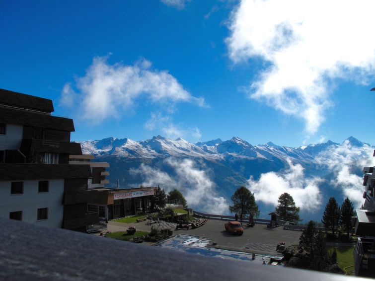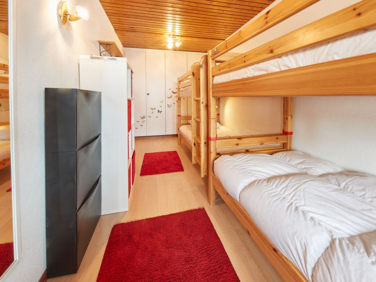 "Dixence 404", 2-Zimmer-Wohnung im 4. Stock. Zweckmässig und komfortabel eingerichtet: Wohn-/Schlafzimmer mit 1 Wandschrankbett (140 cm, Länge 200 cm), TV. Ausgang zum Balkon, Richtung Osten. 1 Zimmer mit 2 x 2 Etagenbetten (90 cm, Länge 200 cm). Offene Küche (Backofen, Geschirrspüler, 4 Glaskeramikplatten, Mikrowelle). Dusche/WC. Teppichboden. Balkon, Ostlage. Sehr schöne Sicht auf die Berge und die Landschaft. Zur Verfügung: Internet (Wireless LAN). Bitte beachten: Nichtraucher-Unterkunft.