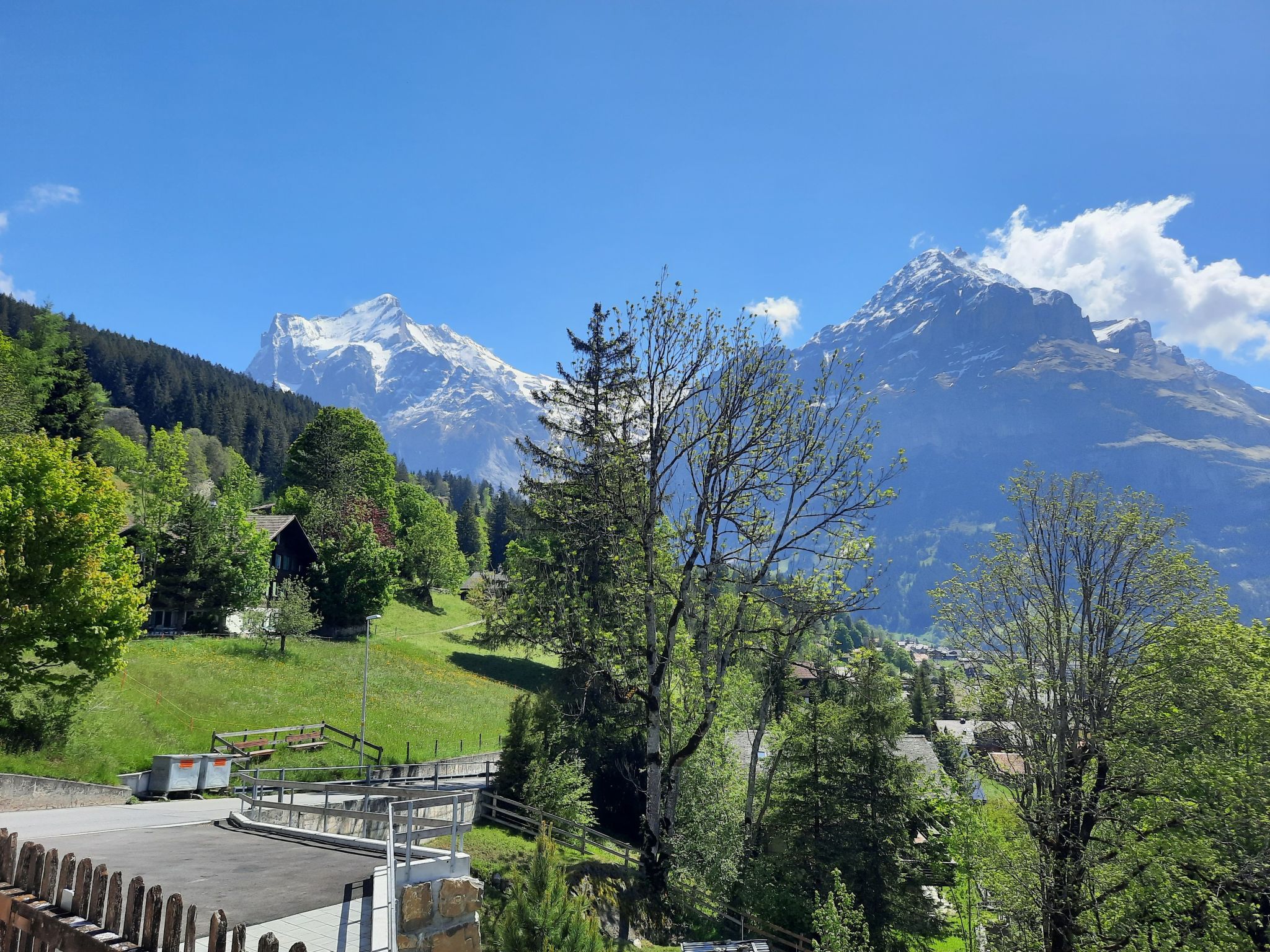 Draußen lädt eine Terrasse dazu ein, die Ruhe und die frische Bergluft zu genießen. Dieser private Außenbereich ist der ideale Ort, um die beeindruckende Aussicht auf die umliegenden Berge wie den Eiger und das Wetterhorn in vollen Zügen zu genießen. Hier können Sie entspannen und den Zauber der Natur unmittelbar erleben.