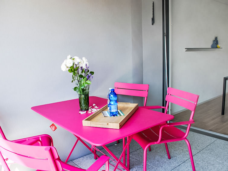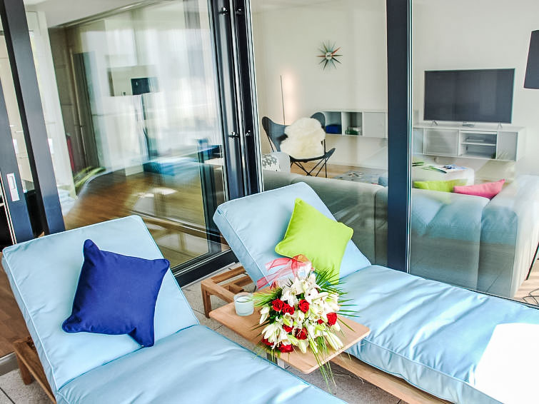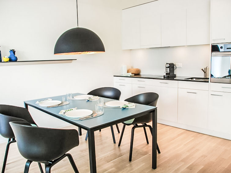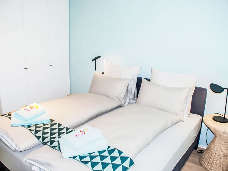 "LaVille A-2-3", 3-Zimmer-Wohnung 89 m2 im 2. Stock, Südwestlage. Geräumig und hell, modern und geschmackvoll eingerichtet: offenes grosses Wohn-/Esszimmer mit Sat-TV und Flachbildschirm. 1 Doppelzimmer mit 1 Doppelbett (2 x 90 cm, Länge 200 cm). 1 Zimmer mit 2 Betten (90 cm, Länge 200 cm). Offene Küche (Backofen, Geschirrspüler, 4 Induktionskochplatten, Tiefkühler, elektrische Kaffeemaschine, Kapseln für die Kaffeemaschine (Nespresso) extra) mit Esstisch. Ausgang zum Balkon. Bad/WC, Dusche/WC. Bodenheizung. Balkon 9 m2, Südlage und Westlage. Balkonmöbel, Liegestühle (1). Sicht auf die Berge und die Landschaft. Zur Verfügung: Waschmaschine, Wäschetrockner, Bügeleisen, Kinderhochstuhl, Babybett bis 2 Jahre (extra), Haartrockner. Internet (WLAN, gratis). Parkplatz Nr. 49 (extra), Höhe 210 cm, Breite 230 cm. Bitte beachten: Nichtraucher-Unterkunft. NL-00006855