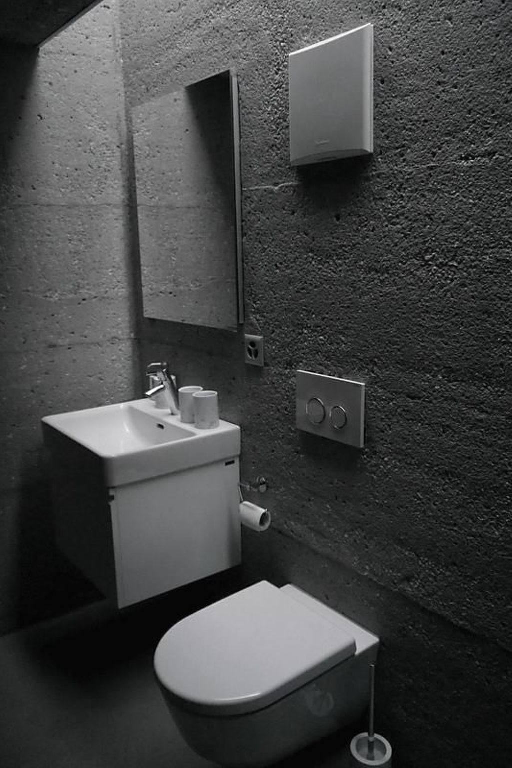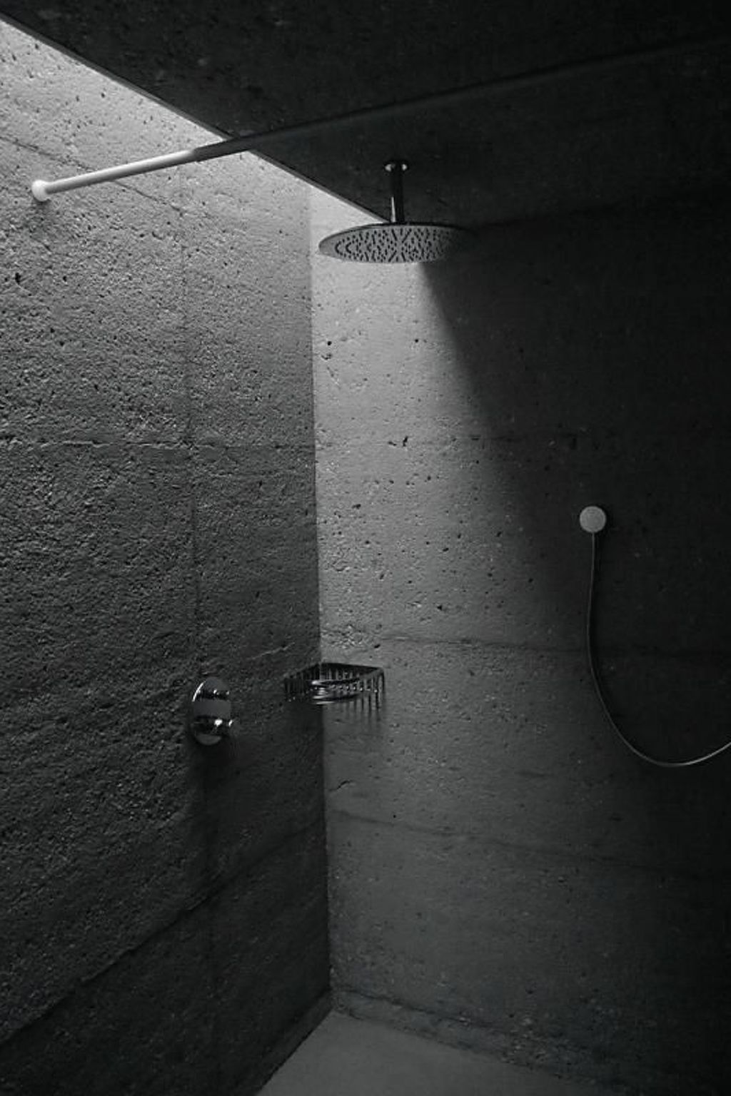 Im Sockel befindet sich das Hauptschlafzimmer, das sich auf eine überdachte Terrasse mit Blick auf das Tal ausdehnt. Das Badezimmer wird durch einen in den Boden gehauenen Schlitz beleuchtet, der ein diffuses Licht ermöglicht.