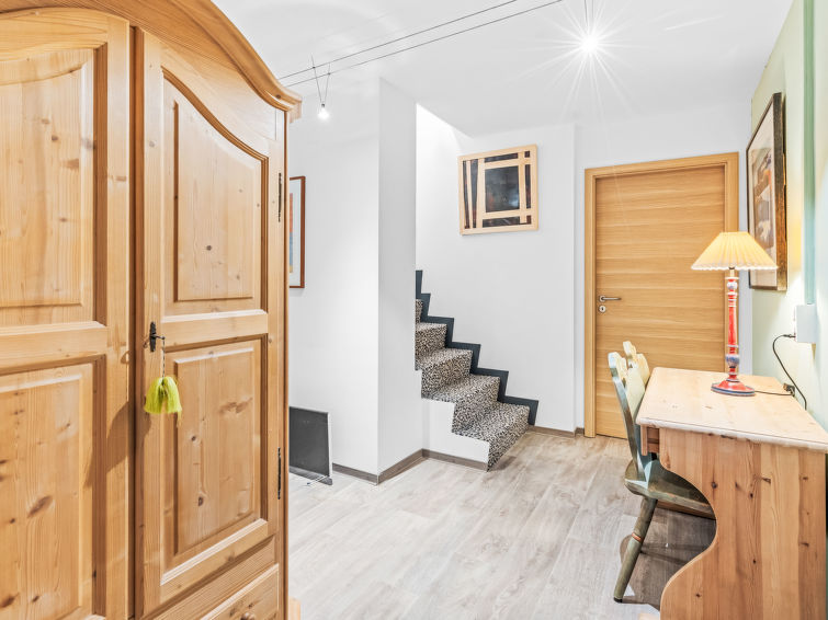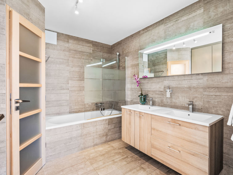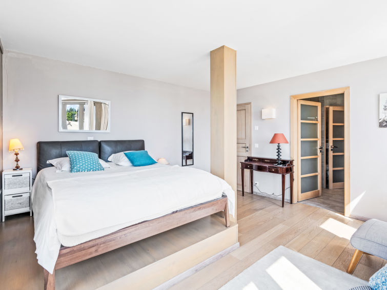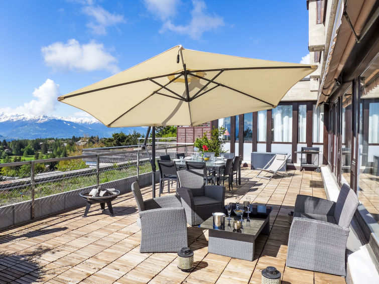 "Jeanne D'Arc LOFT Montagne", 6-Zimmer-Maisonette-Wohnung 200 m2, Südlage. Geräumig, geschmackvoll und gemütlich eingerichtet: grosses Wohn-/Esszimmer mit offenem Kamin, sep. WC und Kabel-TV. Ausgang zur Terrasse. 1 Zimmer mit 1 franz. Bett (160 cm, Länge 200 cm), Bad/WC, Doppelwaschbecken und Kabel-TV. 1 Zimmer mit 2 Betten (80 cm, Länge 200 cm), Dusche/WC. 1 Zimmer mit 2 Betten (80 cm, Länge 200 cm), Dusche/WC. Ausgang zur Terrasse. Offene Küche (Backofen, Geschirrspüler, 4 Glaskeramikplatten, Toaster, Wasserkocher, Mikrowelle, Tiefkühler, Racletteofen, Fondue Set (Chinoise)) mit Bar. Unteres Geschoss: (Wendeltreppe) grosses Spielzimmer mit Bar und TV. Grosser Salon. Sauna. Heizung nicht in allen Räumen. Terrasse, Südlage. Terrassenmöbel, Gartengrill (mobil). Herrliche Panoramasicht auf den See, die Berge, das Tal und die Landschaft. Zur Verfügung: Waschmaschine, Wäschetrockner, Bügeleisen, Haartrockner. Internet (WLAN, gratis). Garage Nr. 21 in 350 m, Höhe 200 cm, Breite 290 cm. Bitte beachten: geeignet für Familien. Nichtraucher-Unterkunft. Eigener Eingang, kein Fahrstuhl. Verbindungstür zur Wohnung CH3962.180.17 mit Schlafgelegenheit für 6.