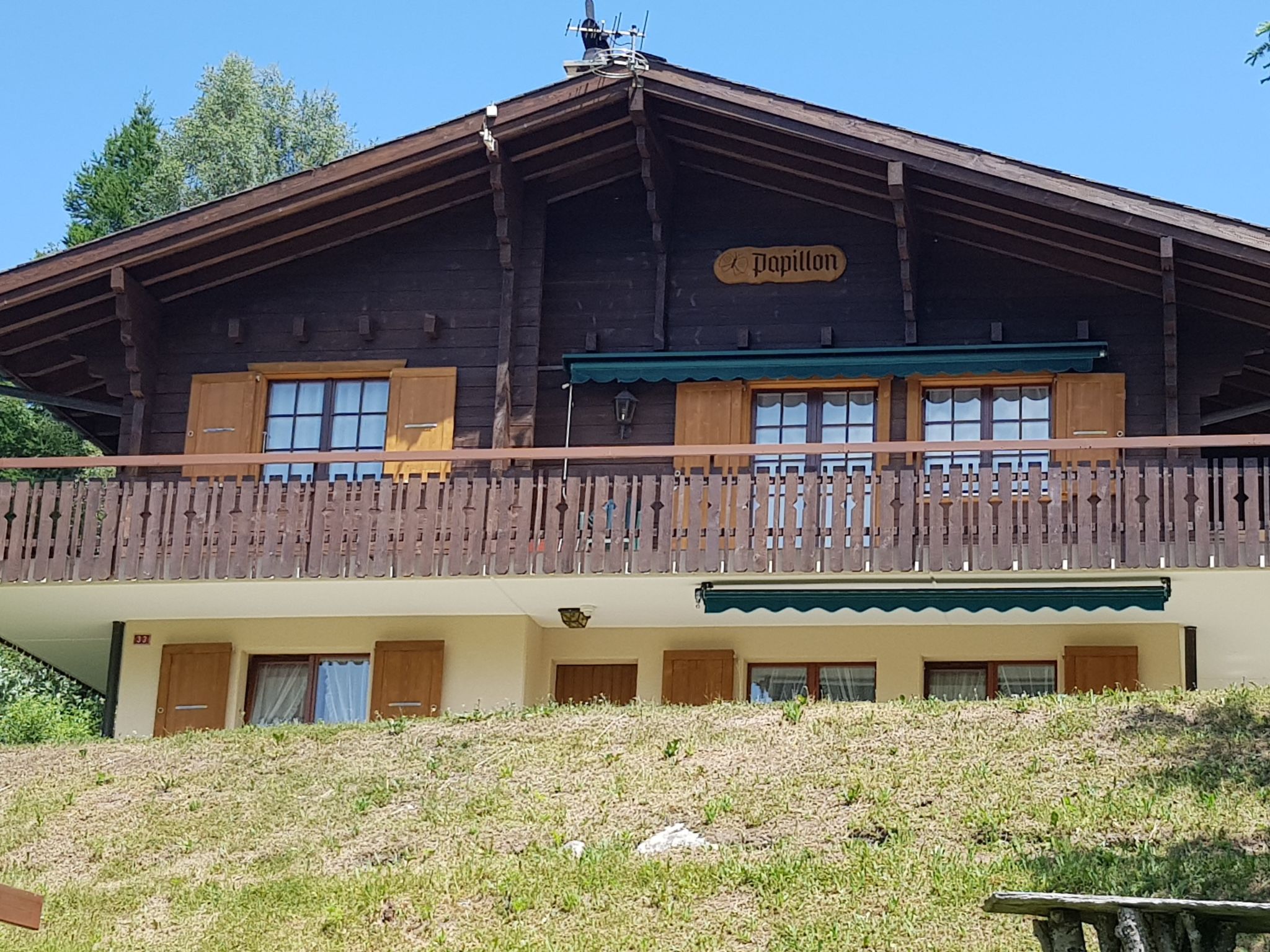 Sehr schönes Zweifamilienhaus "Chalet Papillon", 1'600 m.ü.M.. Ruhige, sonnige Lage am Hang. Im Hause: Skiraum, Zentralheizung. Zufahrt bis 100 m zum Grundstück. Im Winter bitte Schneeketten mitbringen. 100 m steiler Fussweg bis zum Haus. Parkplatz. Lebensmittelgeschäft 3.5 km, Restaurant, Bushaltestelle 300 m, Bahnstation "Visp" 12 km. Sessellift 400 m, Skipisten 300 m, Skischule 500 m.