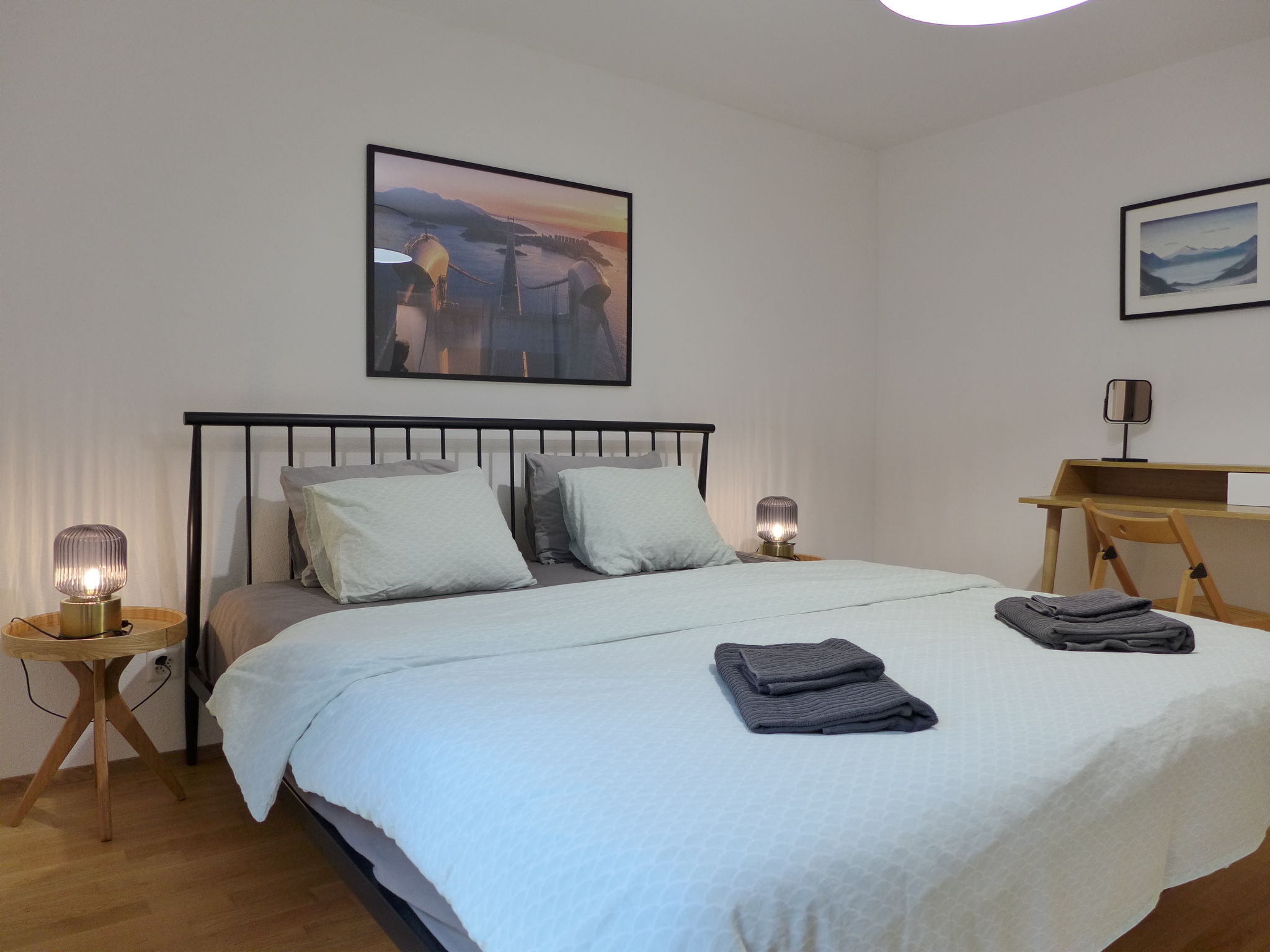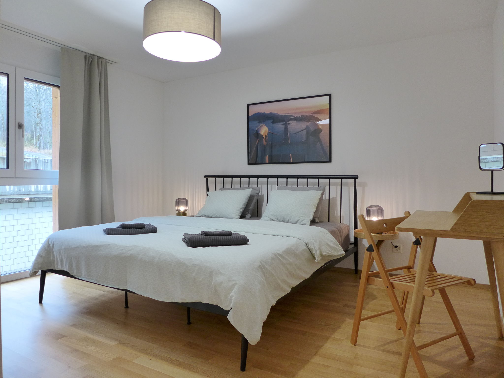 "Lantau", 3-Zimmer-Wohnung 68 m2 im 1. Stock. Geräumig und hell, komfortabel und gemütlich eingerichtet: offenes Wohn-/Esszimmer mit Panoramafenster mit Esstisch, Kabel-TV, Radio und elektrischem Rollladen. Ausgang zum Balkon. 1 grosses Zimmer mit 1 Doppelbett (180 cm, Länge 200 cm). 1 Zimmer mit 1 franz. Bett (160 cm, Länge 200 cm). Ausgang zum Balkon. Offene Küche (Backofen, Geschirrspüler, 4 Glaskeramikplatten, Toaster, Wasserkocher, Tiefkühler, elektrische Kaffeemaschine, Kapseln für die Kaffeemaschine (Nespresso) extra, Fondue Set (Käse)). Dusche/WC. Fussbodenheizung. Grosser Balkon, Südlage. Balkonmöbel. Herrliche Panoramasicht auf die Berge und die Ortschaft. Zur Verfügung: Haartrockner. Internet (WLAN, gratis). Parkplatz (überdacht). Bitte beachten: Nichtraucher-Unterkunft. Maximal 1 Haustier/Hund erlaubt.