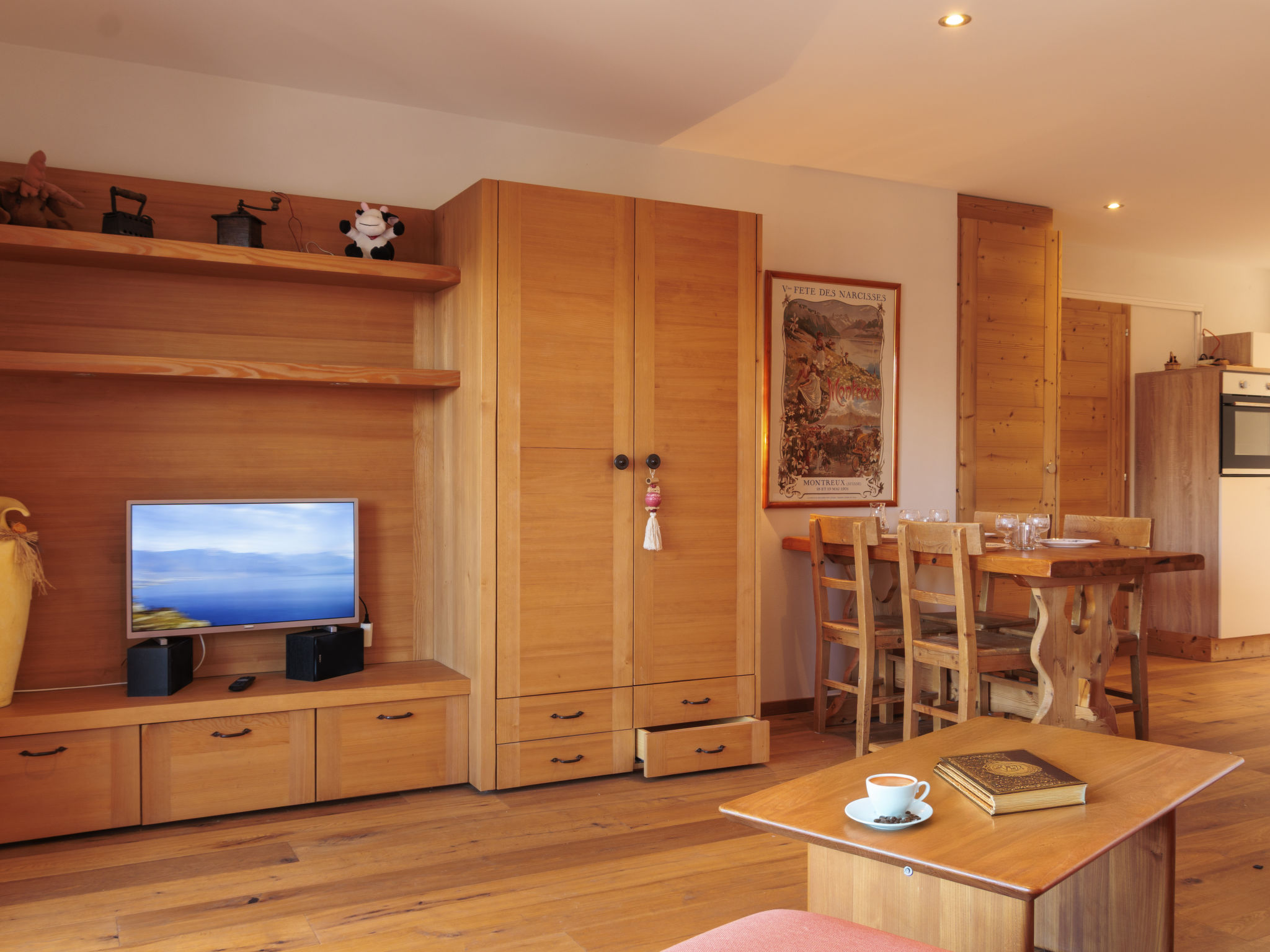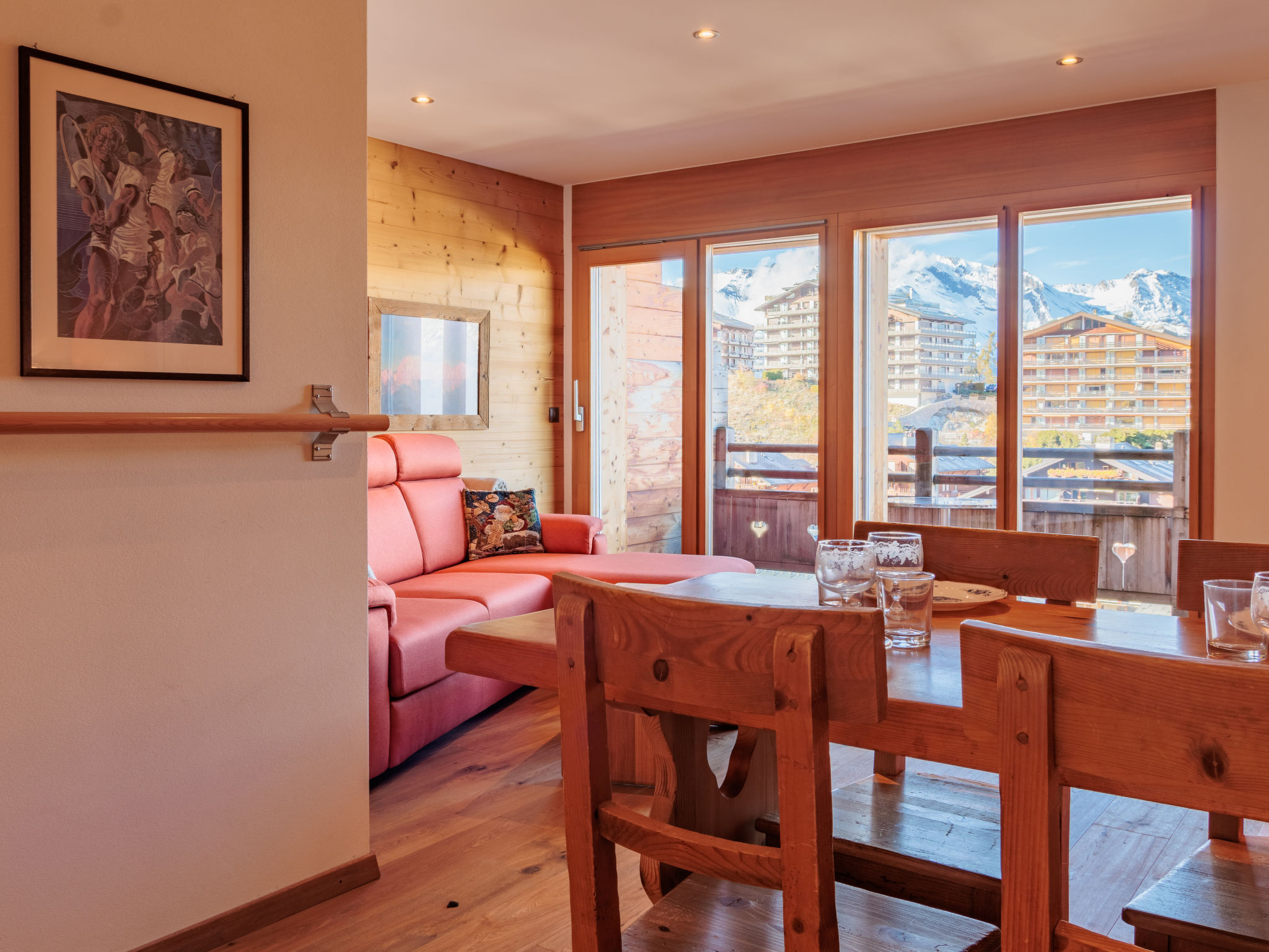 "Ferme de Sandra AP C3", 2-Zimmer-Wohnung 50 m2 im 3. Stock, Nordlage. Objekt geeignet für 2 Erwachsene + 2 Kinder. Hell, komfortabel und schön eingerichtet: Wohn-/Esszimmer mit 1 Doppeldiwanbett (115 cm, Länge 180 cm), Kabel-TV. Ausgang zum Balkon, Richtung Norden. 1 Zimmer mit 1 Doppelbett (160 cm, Länge 200 cm). Ausgang zum Balkon, Richtung Süden. Offene Küche (Backofen, Geschirrspüler, 4 Glaskeramikplatten, Toaster, Wasserkocher, elektrische Kaffeemaschine). Ausgang zum Balkon, Richtung Süden. Dusche/WC, Doppelwaschbecken. Fussbodenheizung. Balkon, Nordlage Balkon, Südlage. Balkonmöbel. Sehr schöne Sicht auf die Berge. Zur Verfügung: Haartrockner. Internet (WLAN, gratis). Parkplatz Nr. 7 (1 Auto). Bitte beachten: Nichtraucher-Unterkunft. Anstelle eines abgeschlossenen Schlafzimmers befinden sich manche Schlafplätze in einem offenen Bereich (Galerie, Nische etc.).