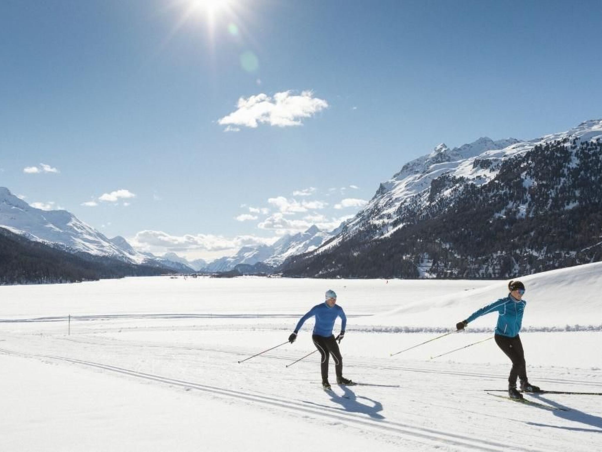 Im Winter laden 350 feinste Pistenkilometer der Skigebiete Corviglia, Corvatsch, Diavolezza und das familienfreundliche Zuoz zu wahrem Ski- und Snowboardvergnügen ein. Langläufer finden über 220 km präparierte Loipen im Oberengadin und in den Seitentälern. Die Winterwanderwege und Langlaufloipen auf den zugefrorenen Oberengadiner Seen glänzen mit Licht, Sonne und Weite inmitten einer inspirierenden Bergwelt. Wer die Stille und Schönheit der verschneiten Wälder geniessen möchte, wandert auf den 150 km Winterwanderwegen in die Seitentäler Val Roseg, Val Fex oder Val Bever, wer lieber den Überblick hat, geniesst atemberaubende Aussichten auf den Panoramawanderwegen hoch über den Seen auf Muottas Muragl.