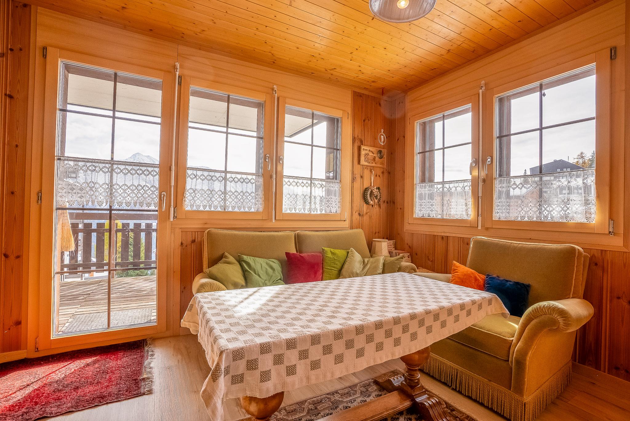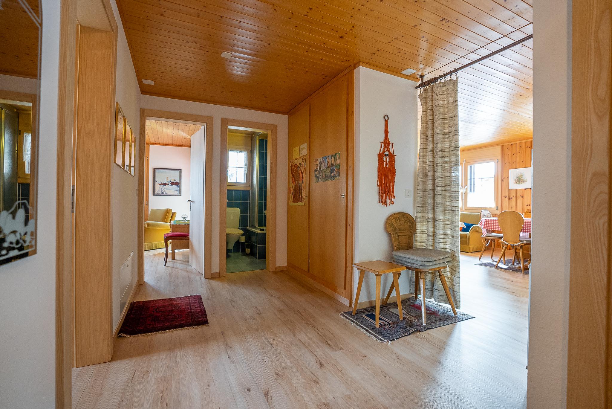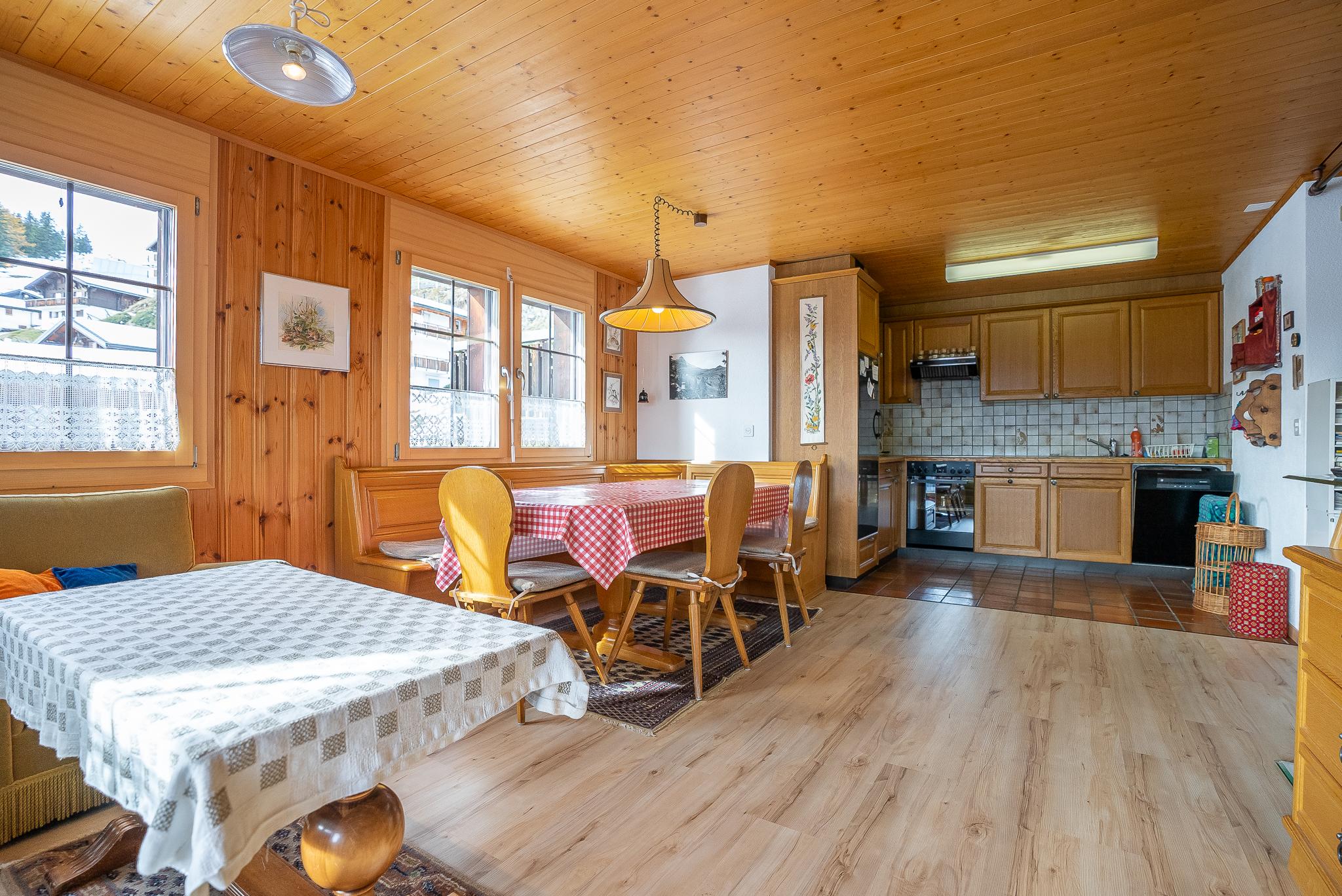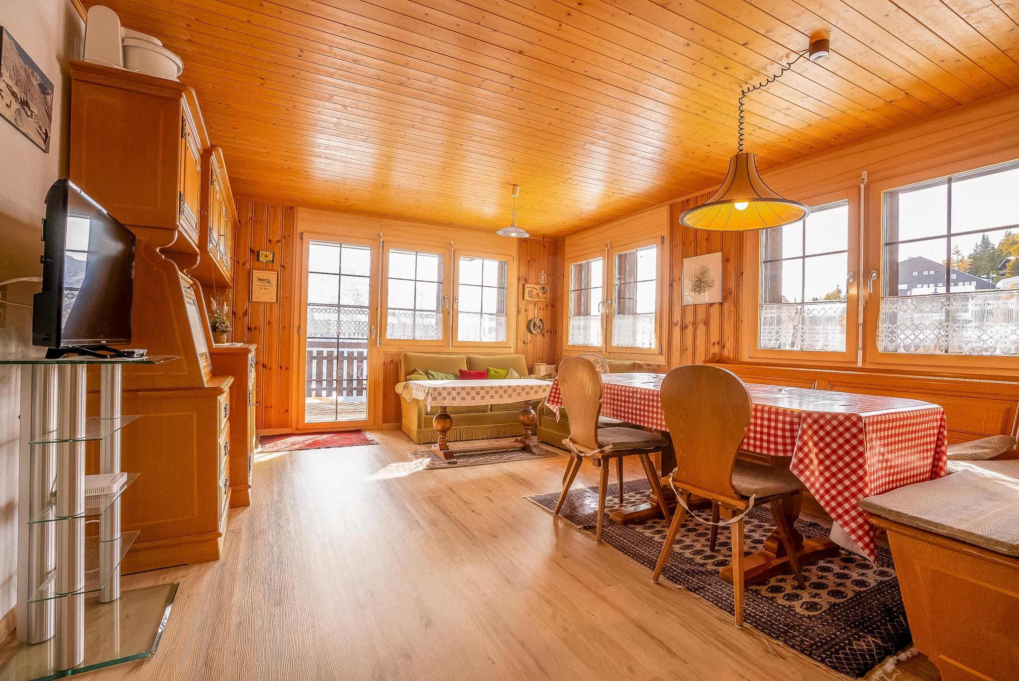 Die Ferienwohnung Kleewasu liegt im autofreien Bergdorf Bettmeralp und besticht durch ihre direkte Lage an der Alpmattenstrasse, die im Winter zur Skipiste wird. Von der Haustür gelangst du direkt auf die Skier und fährst bequem bis zum Alpmattenlift – ideal für Wintersportfans. Im Sommer überzeugt die ruhige, sonnige Umgebung mit direktem Zugang zu Wanderwegen, Restaurants und dem Dorfzentrum. Die Wohnung befindet sich im ersten Stock und ist über eine Aussentreppe auf der Ostseite erreichbar.