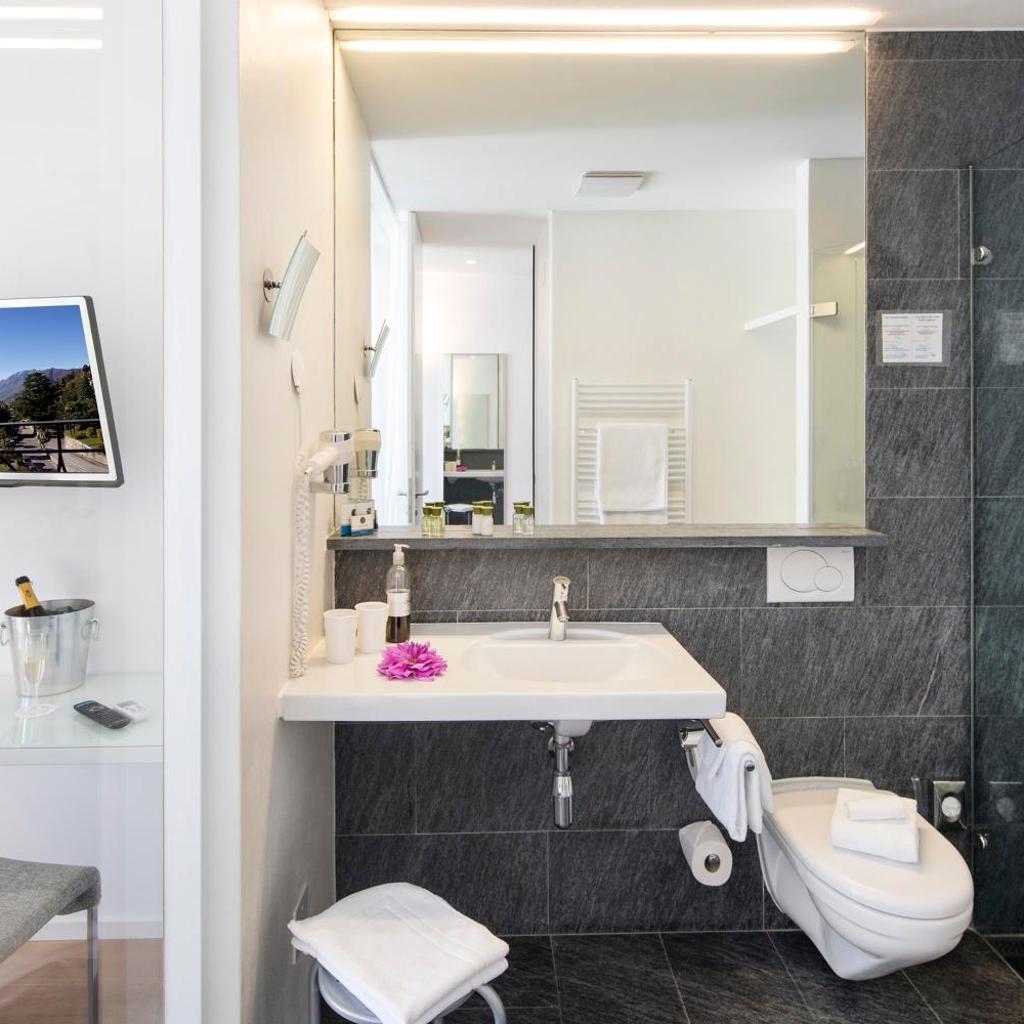 Ihr Fahrzeug können Sie gegen Aufpreis auf dem Privatparkplatz vor dem Hotel abstellen. Das Stadtzentrum erreichen Sie nach einer 8-minütigen Autofahrt, Ascona nach einer 12-minütigen Autofahrt.