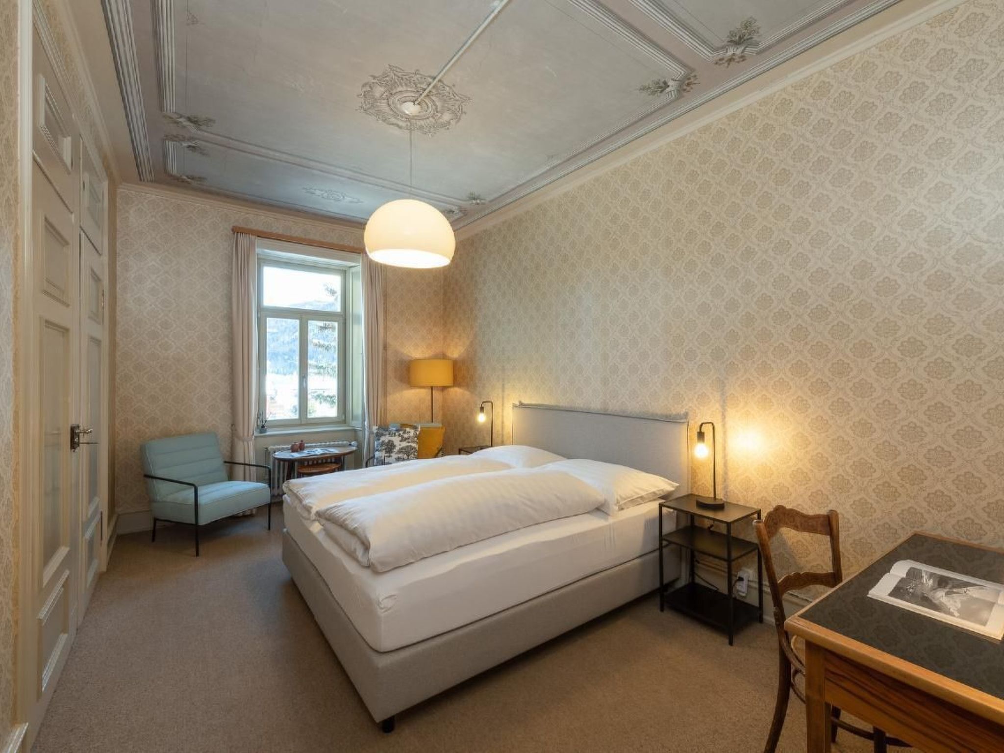 In der Innenausstattung lassen vier gemütliche Schlafzimmer mit Boxspringbetten, ein Badezimmer mit Dusche und WC sowie ein weiteres Badezimmer mit Badewanne und WC keine Wünsche offen. Die vollausgestattete Küche mit Essecke lädt zum gemeinsamen Kochen und Verweilen ein. Hinzu kommt ein bezauberndes Arvenholzzimmer mit TV, das Gemütlichkeit und Erholung verspricht. Durch den historischen Baustil der Villa ergeben sich architektonische Besonderheiten, die dem Inneren einen unvergleichlichen Charakter verleihen (Küche /Arvenholzstube und ein Badezimmer sind über den Flur erreichbar).