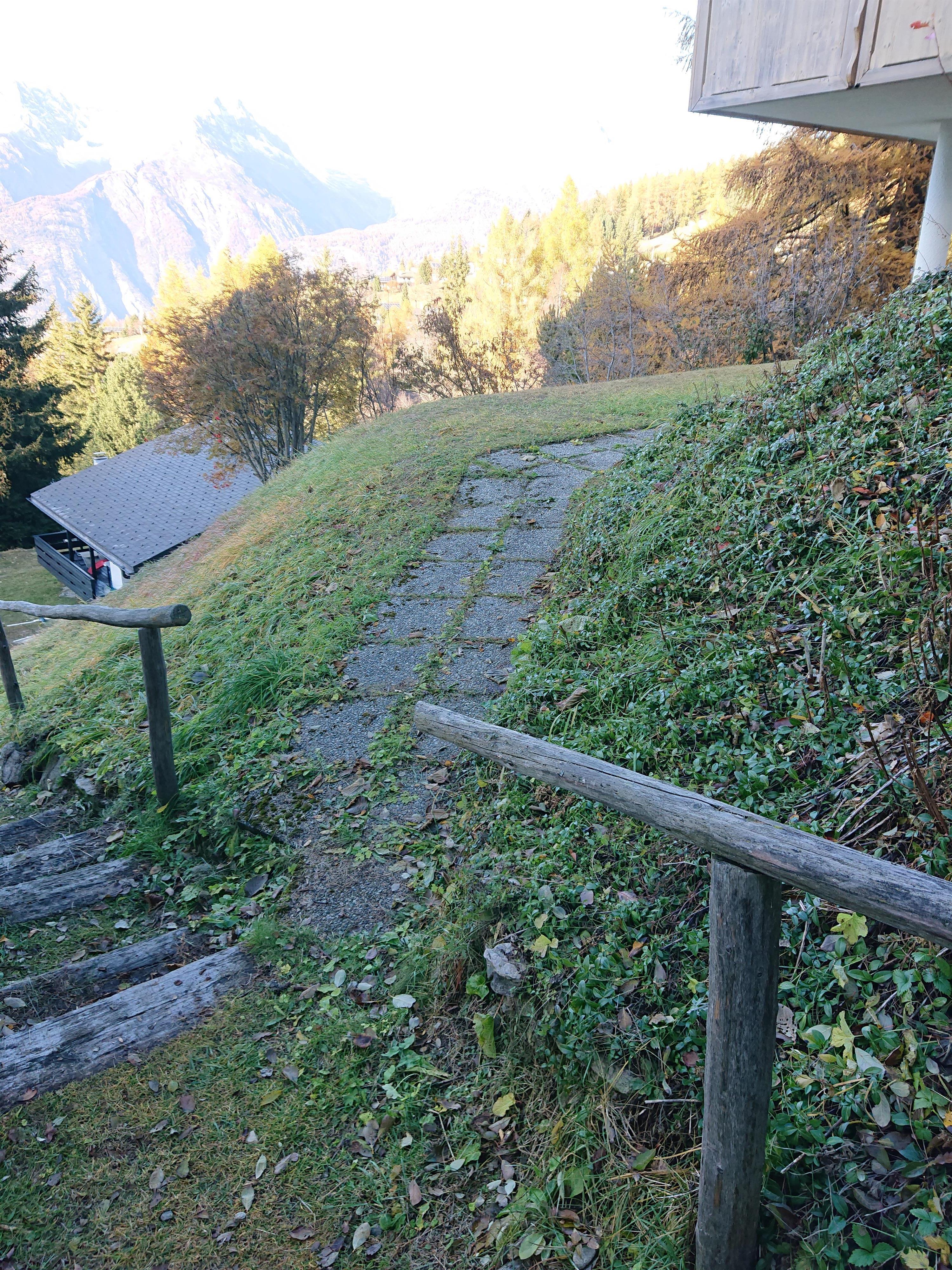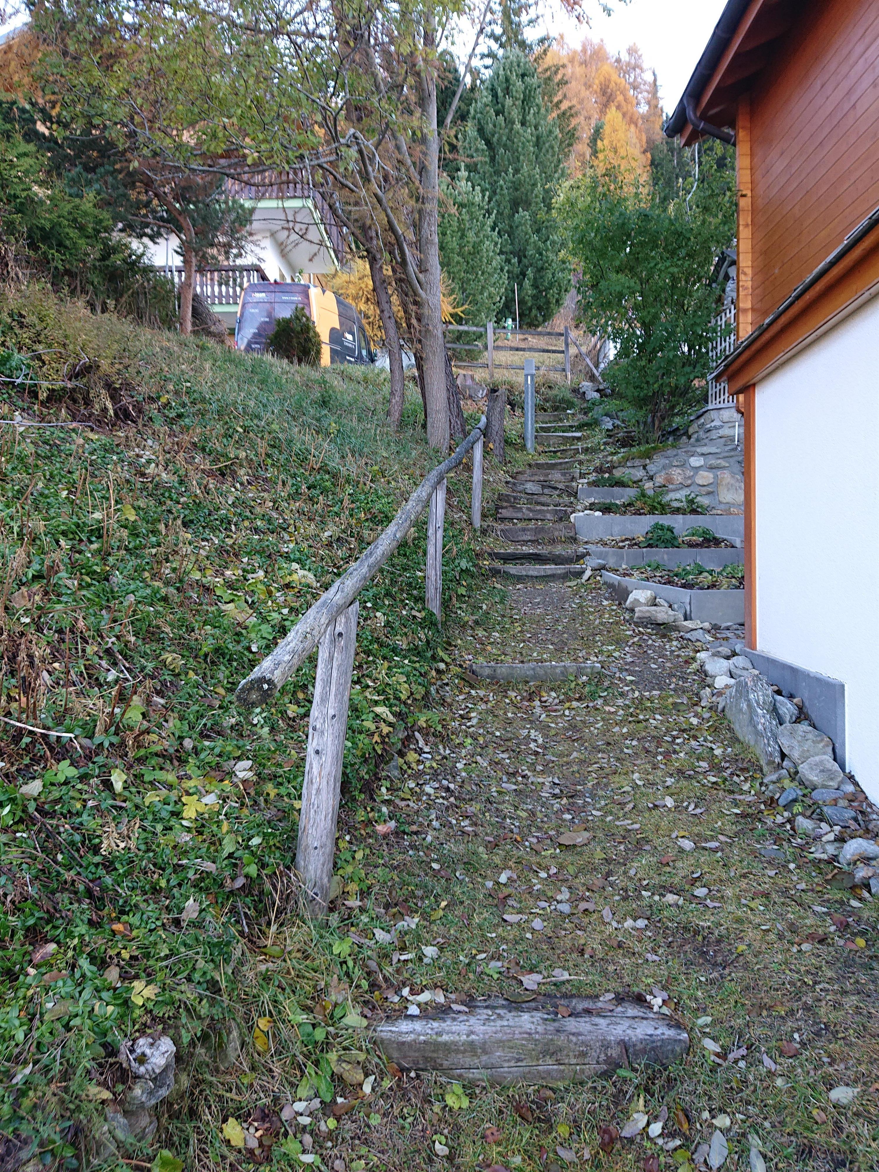 Freizeitaktivitäten in unmittelbarer Umgebung (z.B: Mountainbike-Trail in 2 min, Suonenwanderweg in 5 Gehminuten, Postbus in 7 Gehminuten, Alpuschnaager (Moosalp Schlittenweg; Schneeschuhwanderweg) in 10 Gehminuten. Der Kinderspielplatz und Lebensmittelgeschäft sind ebenfalls in wenigen Minuten erreichbar.