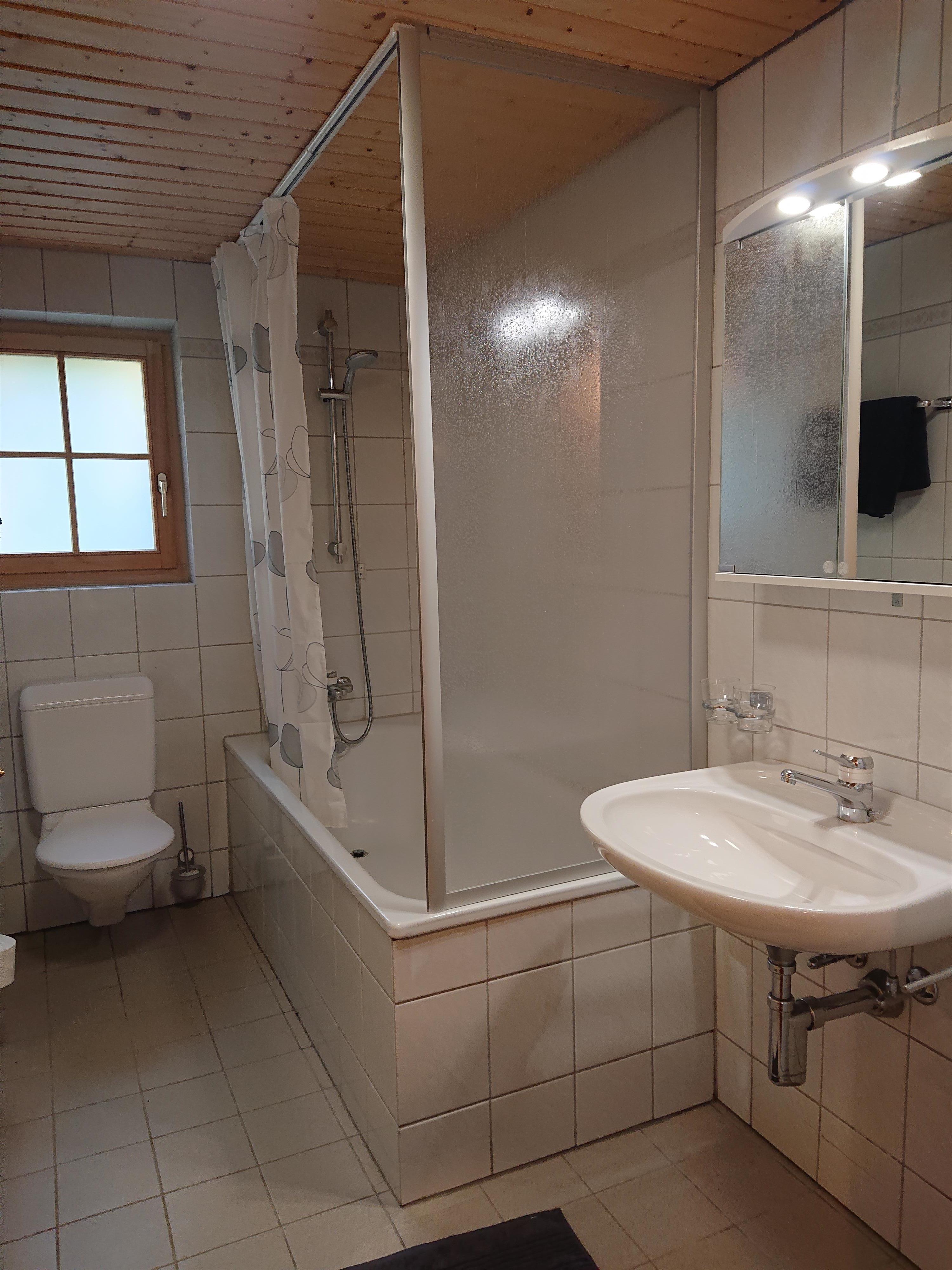 Die Wohnung im Erdgeschoss verfügt über ein Schlafzimmer mit Doppelbett, ein modernes Bad mit Badewanne, einen grossen Wohn-/Essraum inkl. Schlafsofa für eine Person / Kind, TV und eine gut ausgestatteten Küche (Raclette, Fondue, Filter-Kaffeemaschine, Waffeleisen, Eierkocher, Wasserkocher, Backofen, etc.).