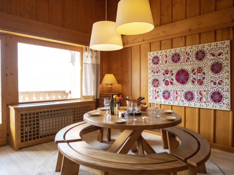 "Licorne 13", 4-Zimmer-Wohnung 100 m2 auf 2 Stockwerken im 2. Stock. Geräumig und hell, komfortabel und schön eingerichtet: grosses Wohn-/Esszimmer mit offenem Kamin und E-Heizung. 1 Zimmer mit 2 Betten (90 cm, Länge 200 cm). Offene Küche (4 Kochplatten, Backofen, Geschirrspüler, Toaster, Wasserkocher, elektrische Kaffeemaschine, Kapseln für die Kaffeemaschine (Nespresso) extra, Racletteofen, Kombinationsmikrowelle, Fondue Set (Käse)) mit Bar. Dusche/WC. Obergeschoss: abgeschrägte, offene Galerie mit Kabel-TV, Radio und CD. 1 Zimmer mit 1 x 2 Etagenbetten (90 cm, Länge 200 cm). 1 Zimmer mit 1 Doppelbett (2 x 90 cm, Länge 200 cm). Bad. Grosser Balkon, Südlage. Terrassenmöbel. Panoramasicht. Zur Verfügung: Internet (Wireless LAN, gratis). Parkplatz Nr. 13. Bitte beachten: Nichtraucher-Haus.