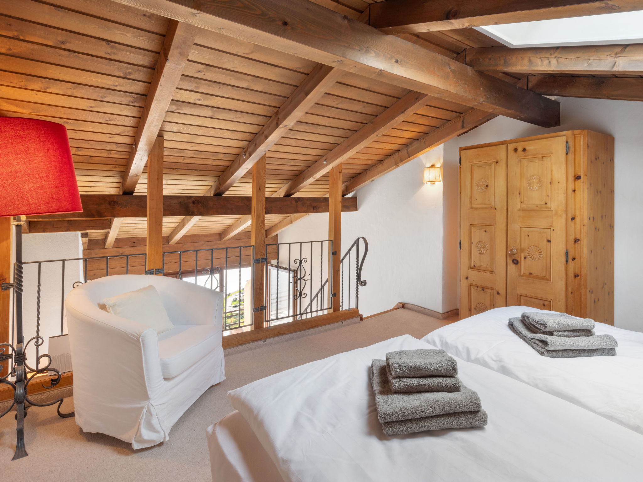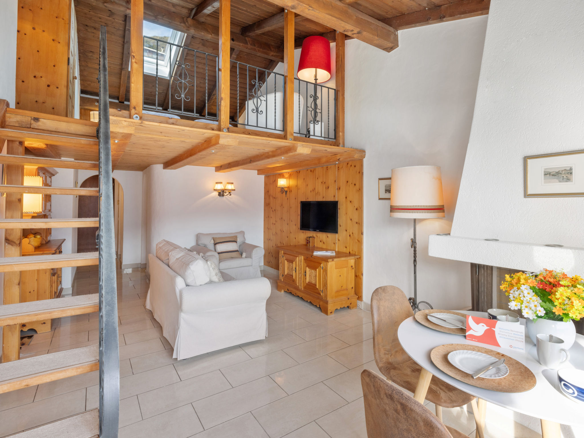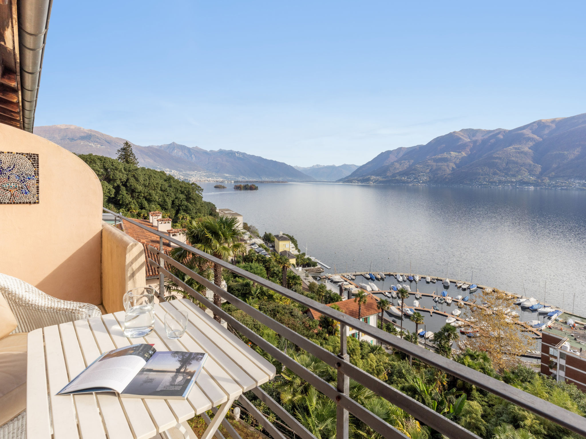 "Brissago Blue", 1-Zimmer-Maisonette-Wohnung 45 m2 auf 2 Stockwerken, im Obergeschoss, Südostlage. Teilweise abgeschrägt, gemütlich und mit viel Holz eingerichtet: Wohn-/Esszimmer mit Esstisch, TV, Internationale TV-Sender und Ventilator. Ausgang zur Terrasse, Richtung Süden und Richtung Osten. Kleine Küche (Geschirrspüler, 4 Glaskeramikplatten, Toaster, Wasserkocher, elektrische Kaffeemaschine, Kapseln für die Kaffeemaschine (Delizio) extra). Bad oder Dusche/WC. Heizung. Heizung nur verfügbar von 25.10. bis 15.04. Obergeschoss: abgeschrägte, offene Galerie, Deckenhöhe 185 - 250 cm mit Dachfenster mit 1 Doppelbett (2 x 90 cm, Länge 200 cm). Holzdielenboden, Natursteinboden. Terrasse 10 m2. Terrassenmöbel. Herrliche Panoramasicht auf den See, die Berge und die Ortschaft. Zur Verfügung: Bügeleisen, Haartrockner. Internet (WLAN). Parkplatz, Höhe 180 cm, Breite 200 cm. Bitte beachten: Nichtraucher-Unterkunft. Maximal 1 Haustier/Hund erlaubt. Anstelle eines abgeschlossenen Schlafzimmers befinden sich manche Schlafplätze in einem offenen Bereich (Galerie, Nische etc.). NL-00012945