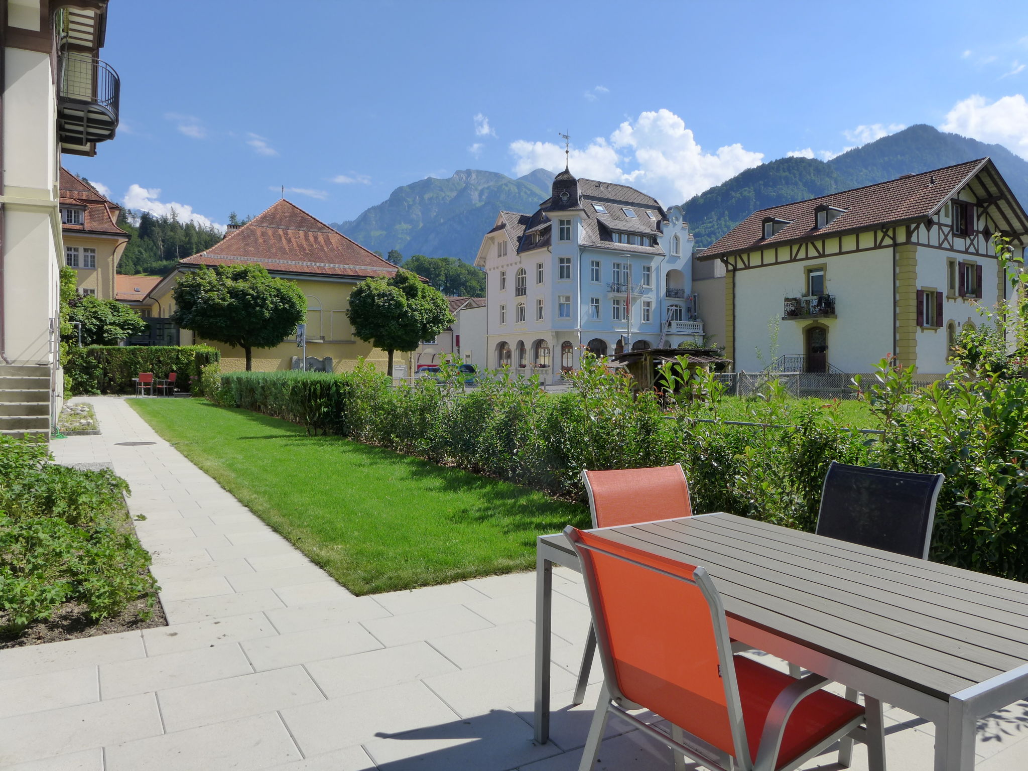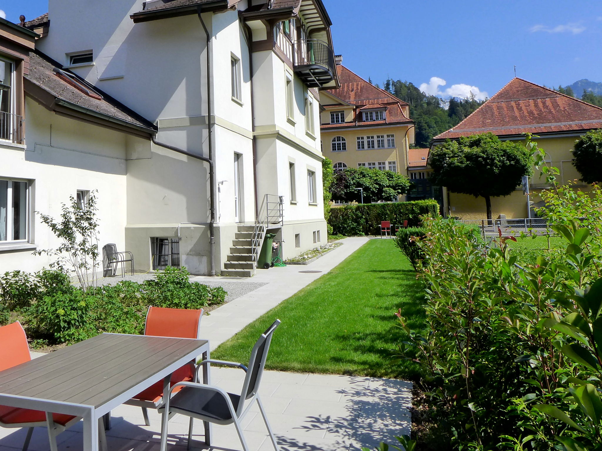 Schönes, komfortables, historisches Mehrfamilienhaus "Henry's Apartments", auf 3 Stockwerken, Baujahr 1908, renoviert im Jahre 2022. Zentrale, ruhige Lage in einem Wohnquartier. Zur Mitbenutzung: grosser, gepflegter Garten Rasen und Pflanzen. Sitzplatz. Im Hause: Zentralheizung, Waschmaschine, Wäschetrockner (zur Mitbenutzung, extra), Trockenraum. Parkplatz (beschränkte Anzahl). Supermarkt 250 m, Zentrum zu Fuss in 5 Minuten erreichbar, Bushaltestelle "Interlaken West, Bahnhof" 300 m, Bahnstation "Interlaken West" 300 m, Freibad 1.3 km, Hallenbad 1.3 km. Golfplatz (18 Loch) 3.5 km, Segelschule 3.5 km, Tennis 750 m, Minigolf 1.6 km, Skisportanlagen 25 km, Eisfeld 700 m. Nahe gelegene Sehenswürdigkeiten: Jungfraujoch, Schilthorn, Tell-Freilichtspiele, Ballenberg Openair Museum. Bekannte Skigebiete sind gut erreichbar: Grindelwald, Wengen 25 km. Bekannte Seen in der Umgebung sind gut erreichbar: Thunersee, Brienzersee. Bitte beachten: kein Fahrstuhl vorhanden. Weitere Unterkünfte sind buchbar.