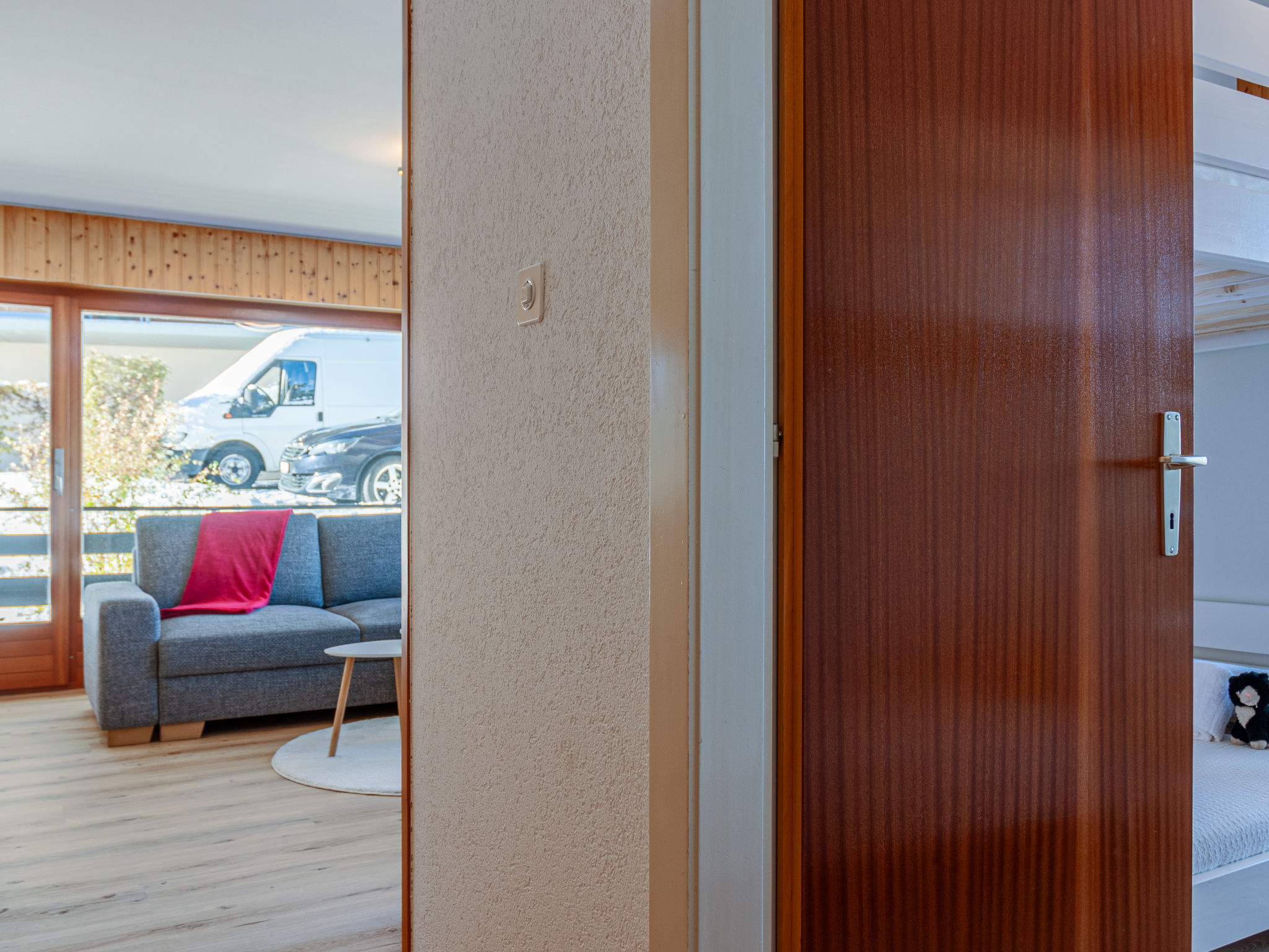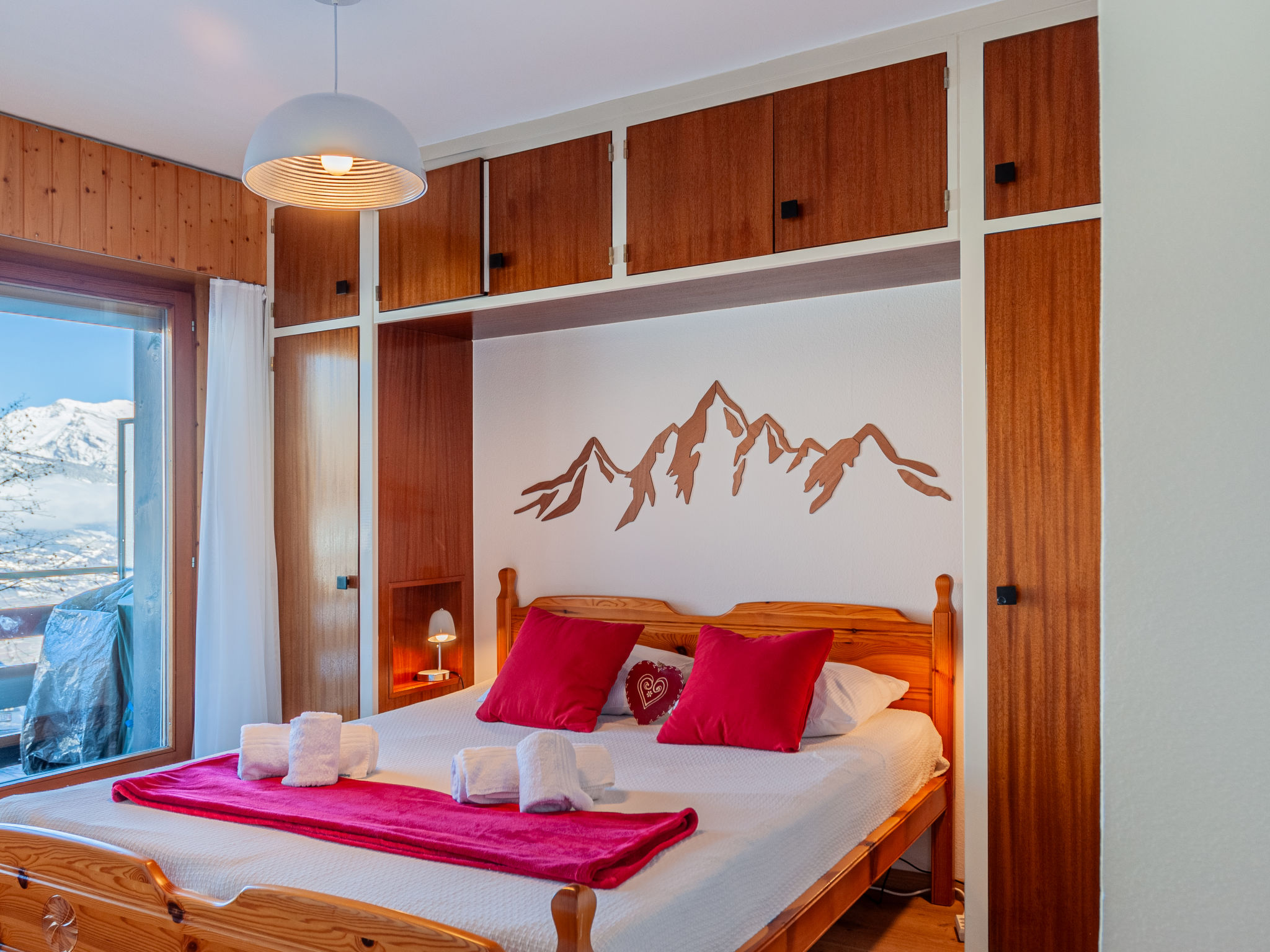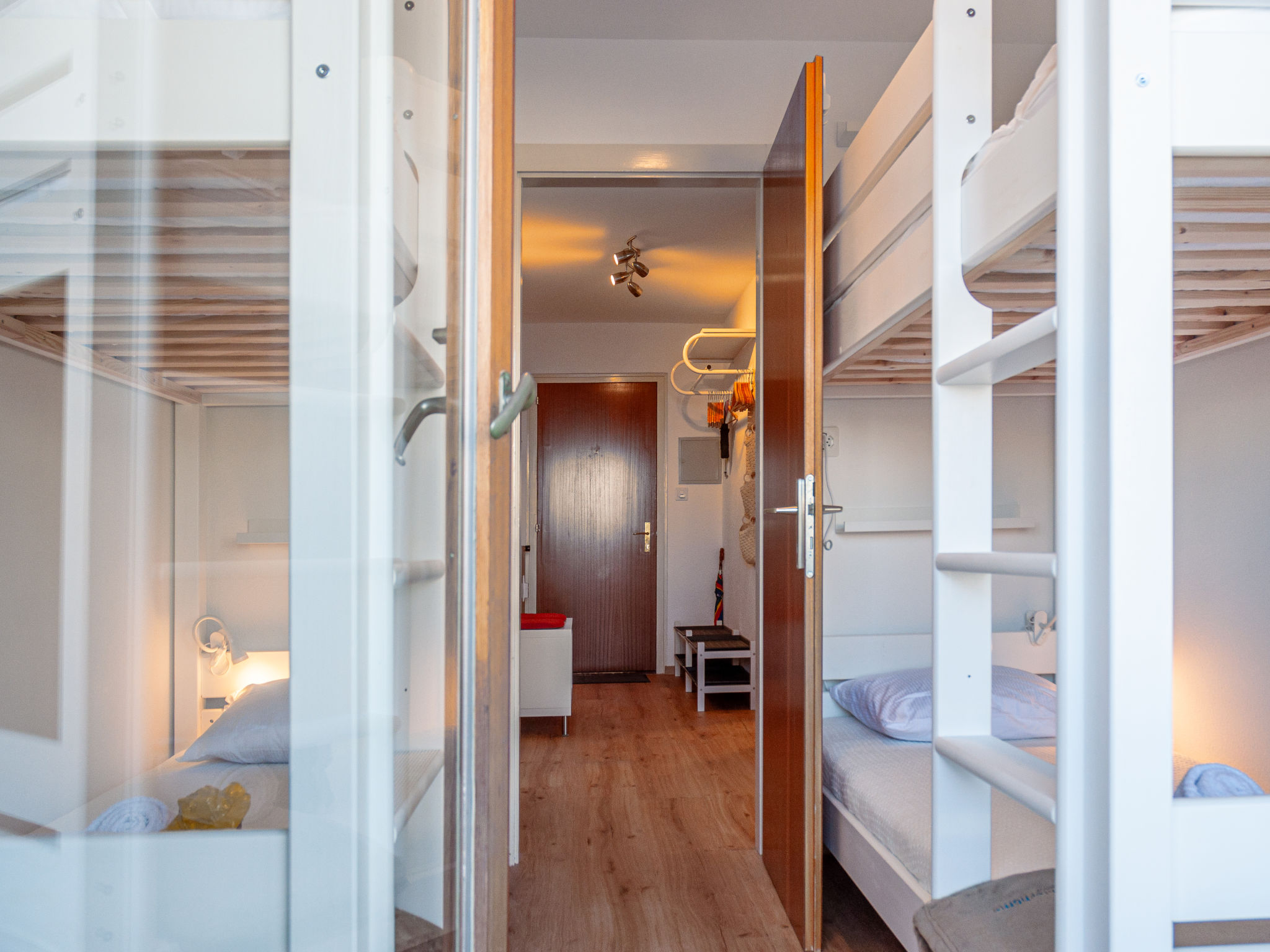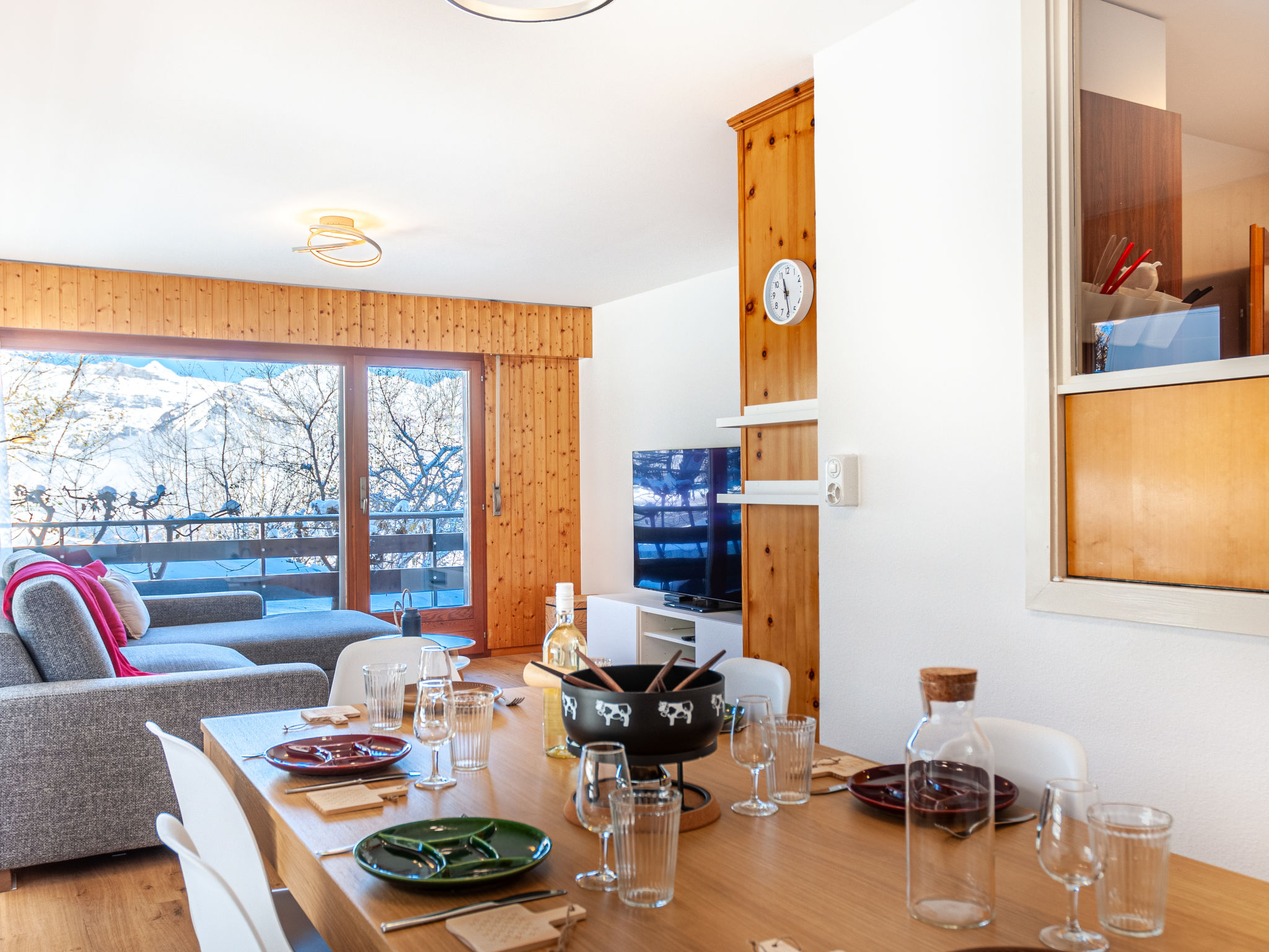 "Aiglon J2", 3-Zimmer-Wohnung 75 m2 im 2. Stock. Objekt geeignet für 2 Erwachsene + 4 Kinder. Teilweise renoviert im Jahre 2023, schön und gemütlich eingerichtet: Eingang. Wohn-/Esszimmer mit Kabel-TV. Ausgang zum Balkon. 1 Zimmer mit 1 franz. Bett (160 cm, Länge 190 cm). 1 kleines Kinderzimmer 9 m2 mit 2 x 2 Etagenbetten (80 cm, Länge 190 cm). Küche (Backofen, Geschirrspüler, 4 Glaskeramikplatten, Toaster, Wasserkocher, Mikrowelle, elektrische Kaffeemaschine, Kapseln für die Kaffeemaschine (Delizio) extra, Racletteofen, Fondue Set (Chinoise, Käse)). Bad/WC, sep. WC. Grosser Balkon, Nordostlage und Südlage. Balkonmöbel, Gartengrill. Sicht auf die Berge. Zur Verfügung: Haartrockner. Internet (Wireless LAN, gratis). Bitte beachten: Nichtraucher-Unterkunft.