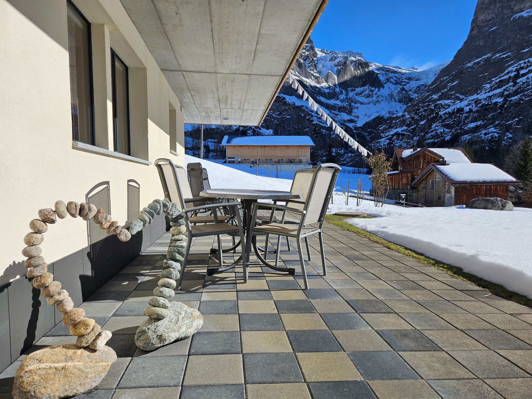 Das Chalet Boimenzüün liegt oberhalb von Grindelwald an sonniger, sehr ruhiger und unverbauter Lage. Von der grossen Terrasse, mit Blumengarten aus erblicken Sie die herrliche Bergwelt mit der eindrücklichen Eigernordwand.