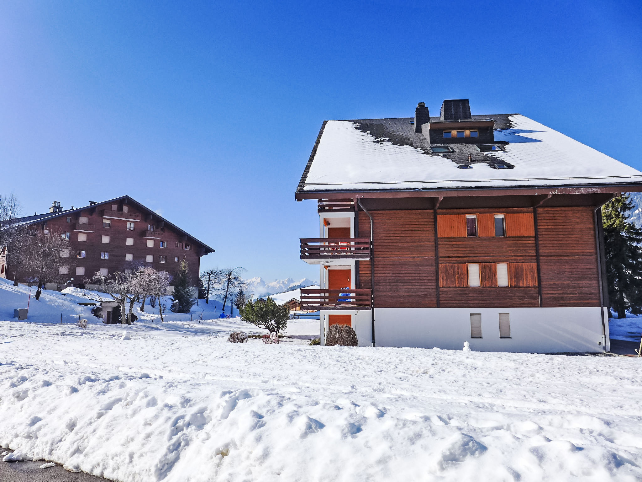 Rochegrise: Residenz "Opale". Oberhalb von Villars, sonnige Lage, 200 m vom Skigebiet, Richtung Süden. Zur Mitbenutzung: Grundstück mit Rasen und Pflanzen. Im Hause: Fahrstuhl, Skiraum, Zentralheizung, Waschmaschine (zur Mitbenutzung, extra). Parkplatz (beschränkte Anzahl) auf dem Grundstück, öffentliche Parkplätze 20 m. Einkaufsgeschäft 1 km, Lebensmittelgeschäft 700 m, Restaurant, Bäckerei 900 m, Zentrum zu Fuss in 10 Minuten erreichbar, Bushaltestelle 1.5 km, Bahnstation "Roches Grises" 120 m, Hallenbad 1.4 km, Thermalbad "Lavey-les-Bains" 19 km. Sporthafen 25 km, Golfplatz (18 Loch) 7 km, Tennishalle 50 m, Sportzentrum 50 m, Bergeisenbahn 120 m, Skilift 500 m, Gondelbahn 2 km, Skibushaltestelle 1.5 km, Skischule 1.4 km, Kinderskischule 50 m, Eisfeld 1.4 km, Kinderspielplatz 200 m. Der gratis Skibus fährt zum Skigebiet Villars. Bitte beachten: Weitere Unterkünfte sind buchbar.