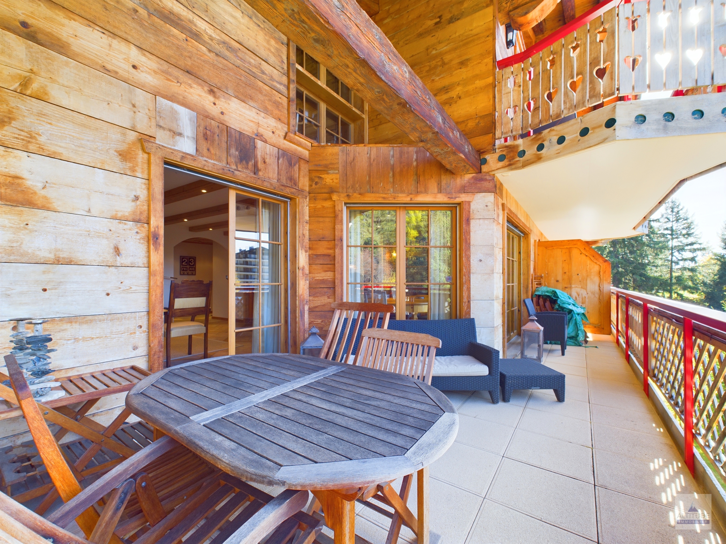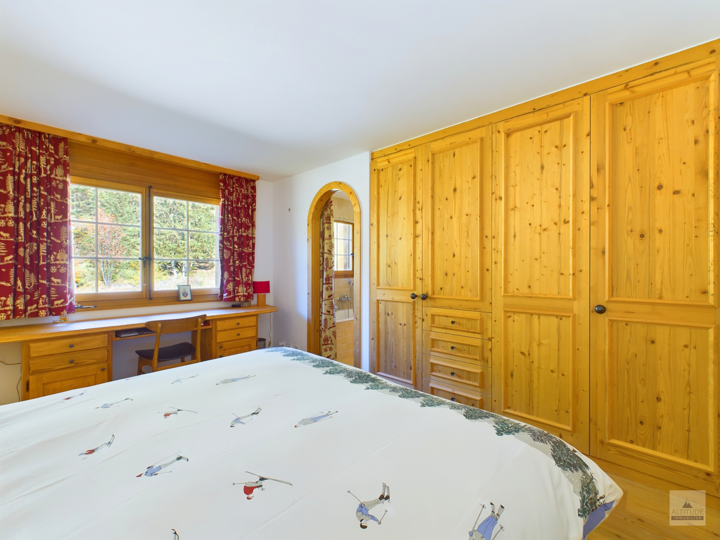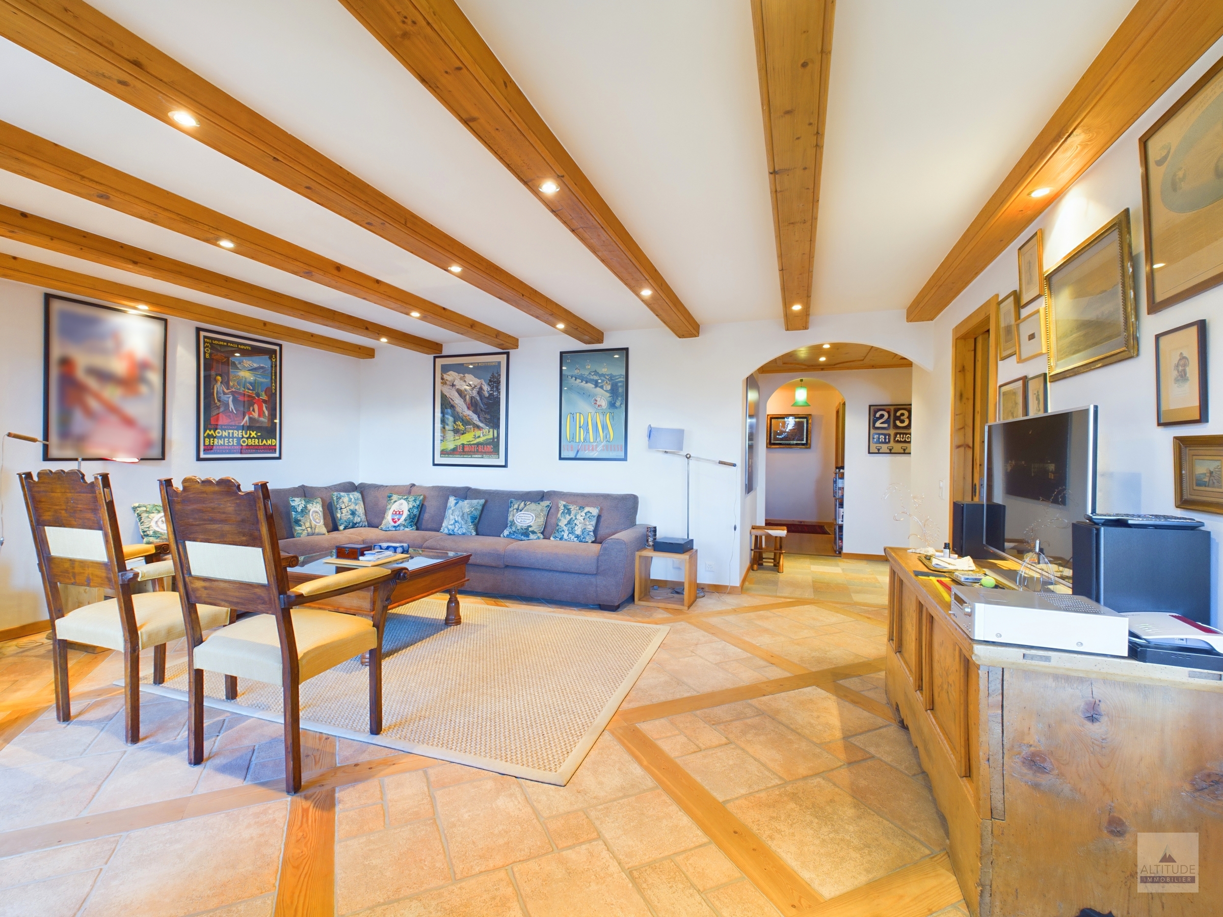 Chalet résidentiel de standing proche des pistes de ski Crans-Montana, Vermala entre le centre de la station, le départ des télécabines et le légendaire restaurant le Cervin,renommé pour sa cuisine gastronomique et sa cave exceptionnelle. En pleine nature et au calme, ce site privilégié est un point de départ de très belles promenades en forêt. Idéalement situé, cet appartement vous offre le calme de la montagne et d'un cadre naturel, tout en restant tout proche du centre. Belle vue sur les Alpes au sud. Magnifique appartement de 4 pièces 1/2 - Lumineux et spacieux séjour - salle à manger avec accès à la terrasse plein sud de 15 m2 environ- Cuisine semi-ouverte complètement équipée avec lave-vaisselle et micro-onde- 1 chambre à coucher parentale avec salle de bain attenante, nombreux rangements grâce aux armoires murales, espace bureau- 1 chambre à coucher avec lits jumeaux et salle de douche attenante- 1 chambre à coucher avec 2 lits simples et salle de douche attenante A dispostion dans l'appartement : - Wi-Fi privatif- Stores électriques.- Cheminée.- Télévision - Micro-ondes, four, set fondue fromage,toaster.- Robot ménager, mixeur.- Machine à café, Bouilloire- Meubles de jardin. A disposition dans l'immeuble : - Accès au sauna commun - Buanderie commune à la résidence - Local à skis- 2 place de parc privatives dans le garage souterrain
