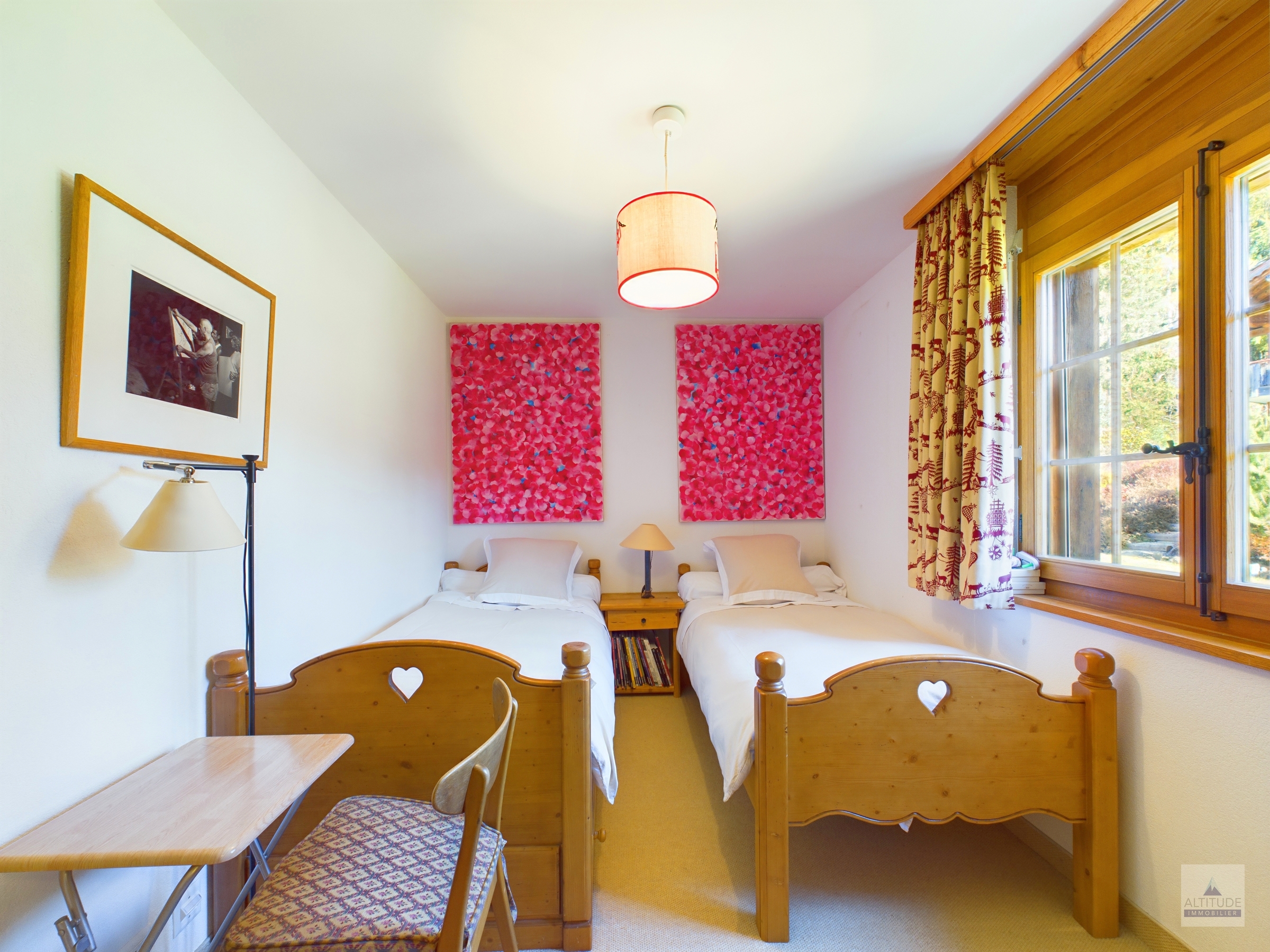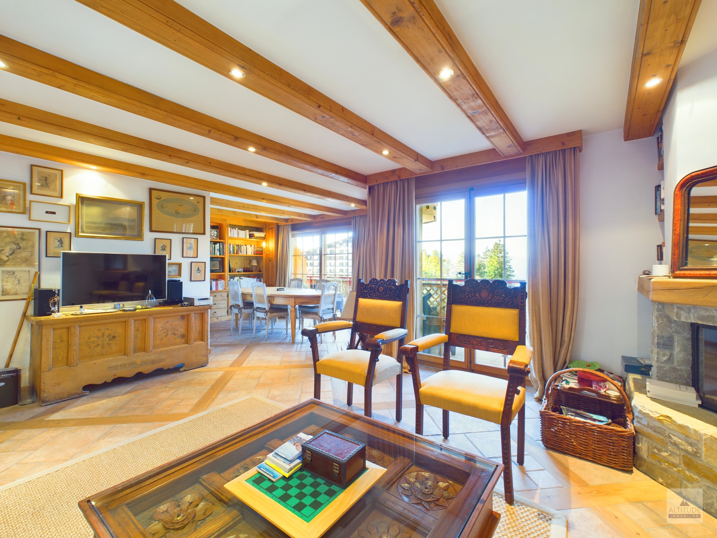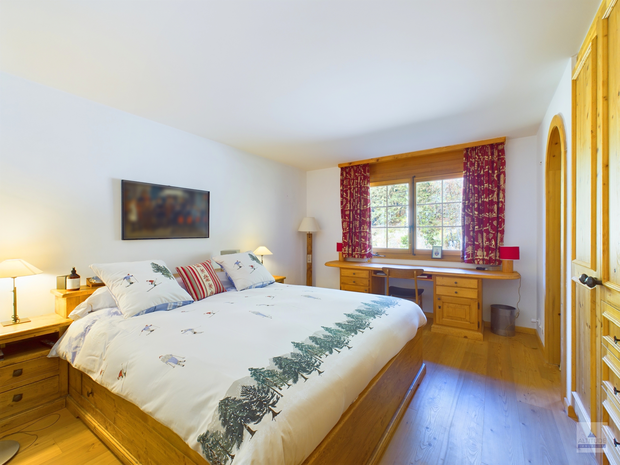 Chalet résidentiel de standing proche des pistes de ski Crans-Montana, Vermala entre le centre de la station, le départ des télécabines et le légendaire restaurant le Cervin,renommé pour sa cuisine gastronomique et sa cave exceptionnelle. En pleine nature et au calme, ce site privilégié est un point de départ de très belles promenades en forêt. Idéalement situé, cet appartement vous offre le calme de la montagne et d'un cadre naturel, tout en restant tout proche du centre. Belle vue sur les Alpes au sud. Magnifique appartement de 4 pièces 1/2 - Lumineux et spacieux séjour - salle à manger avec accès à la terrasse plein sud de 15 m2 environ- Cuisine semi-ouverte complètement équipée avec lave-vaisselle et micro-onde- 1 chambre à coucher parentale avec salle de bain attenante, nombreux rangements grâce aux armoires murales, espace bureau- 1 chambre à coucher avec lits jumeaux et salle de douche attenante- 1 chambre à coucher avec 2 lits simples et salle de douche attenante A dispostion dans l'appartement : - Wi-Fi privatif- Stores électriques.- Cheminée.- Télévision - Micro-ondes, four, set fondue fromage,toaster.- Robot ménager, mixeur.- Machine à café, Bouilloire- Meubles de jardin. A disposition dans l'immeuble : - Accès au sauna commun - Buanderie commune à la résidence - Local à skis- 2 place de parc privatives dans le garage souterrain
