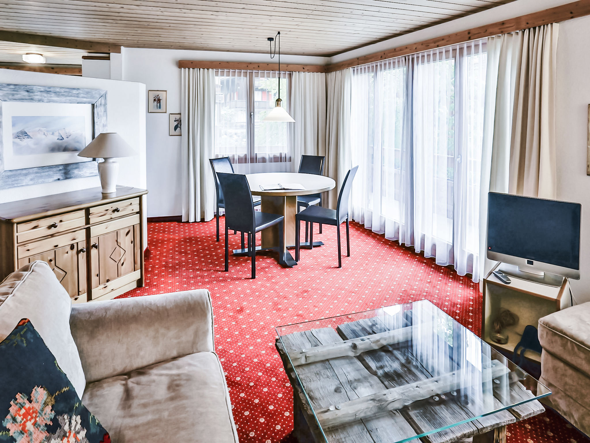 2-Zimmer-Wohnung 56 m2. Schön und gemütlich eingerichtet: Wohn-/Esszimmer mit Kabel-TV (Flachbildschirm). 1 Doppelzimmer. Offene Küche (Backofen, Geschirrspüler, 4 Glaskeramikplatten, Toaster, Wasserkocher, elektrische Kaffeemaschine, Kapseln für die Kaffeemaschine (Nespresso) extra). Bad, sep. WC. Balkon, Südlage und Nordlage. Sicht auf die Berge und Eiger. Zur Verfügung: Haartrockner. Internet (WLAN, gratis). Bitte beachten: Nichtraucher-Unterkunft. Maximal 1 Haustier/Hund erlaubt. Ein Fondue Set (Fleisch oder Käse) sowie ein Raclette Ofen kann an der Rezeption ausgeliehen werden.