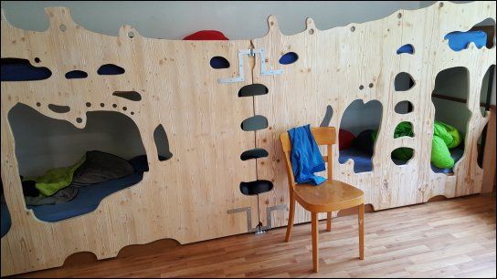 Das Haus wurde als Jugendhaus konzipiert und bietet grosszügige Zimmer mit Warm-/Kaltwasser. Viele 2-Bett-Zimmer sowie originelle Mehrbettzimmer sorgen für eine persönliche Atmosphäre – ganz nach dem Motto: „Jedes Kind hat seine eigene Höhle.“ Das Gebäude ist klar strukturiert mit mehreren Etagen, breiten Fluren und pro Flur zwei Nasszellen; im Neubau stehen zusätzlich moderne WC-/Duschanlagen zur Verfügung.