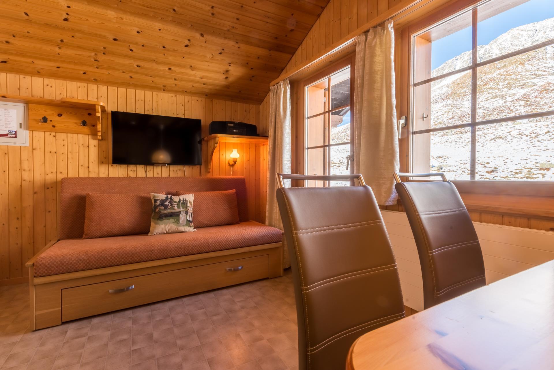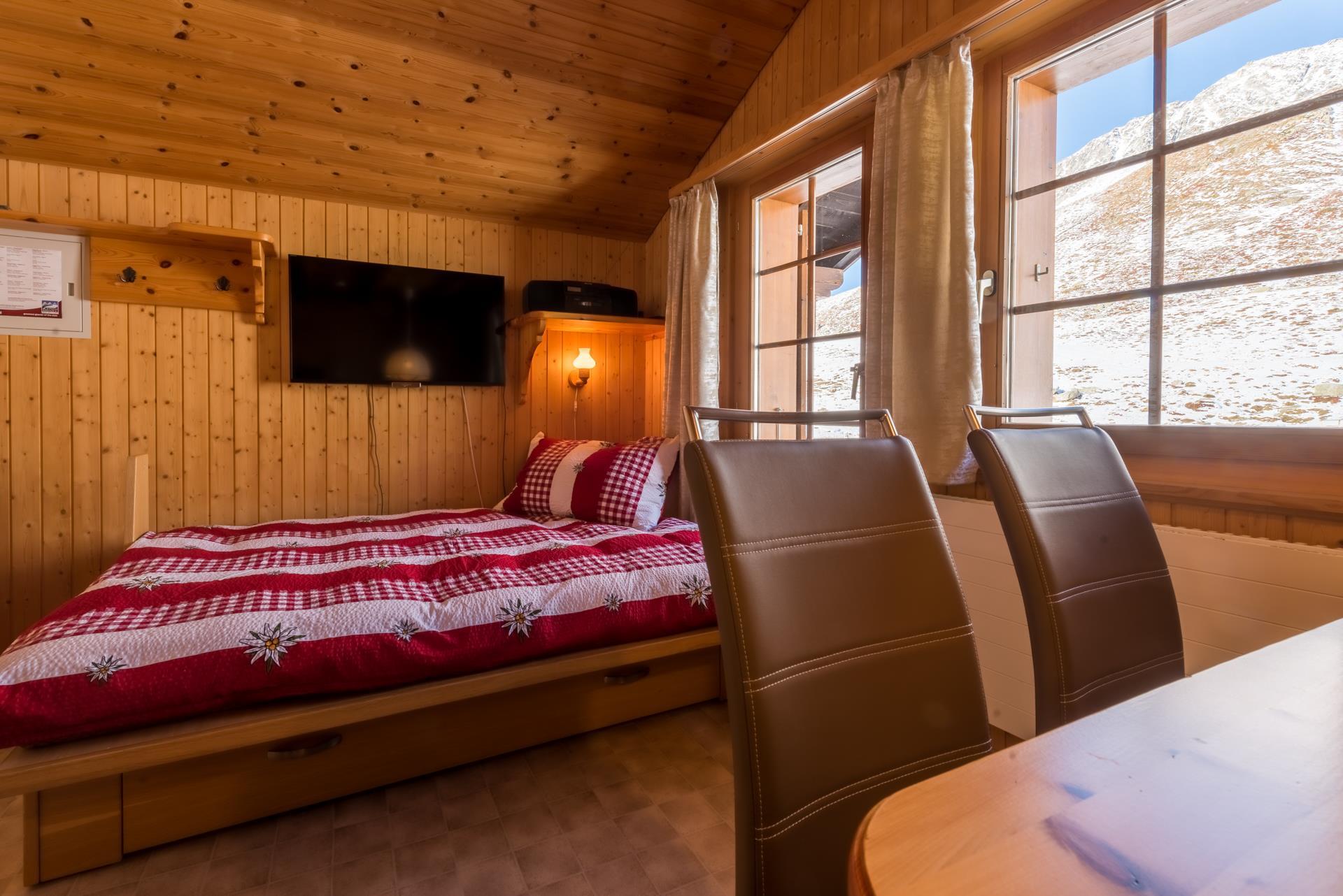 2-Zimmer-Dachwohnung mit kleinem Nordwestbalkon mitten im Ski- und Wanderparadies der Aletscharena (2 Minuten zum Skilift). 1 Schlafzimmer mit Doppelbett, 2 Schlafplätze auf der Galerie für Kinder oder Jugendliche, Dusche/WC. Wohnküche, ausgestattet mit Backofen, Kühlschrank, Nespresso-Kaffeemaschine. Zusätzlich Grossbildfernseher, portables Radio/TB/CD-Gerät. Wohnfläche 35 m2 plus Galerie, hauseigener Skiraum. Transportschlitten für Gepäck (Distanz Gondelbahn-Ferienhaus 12 Min.)