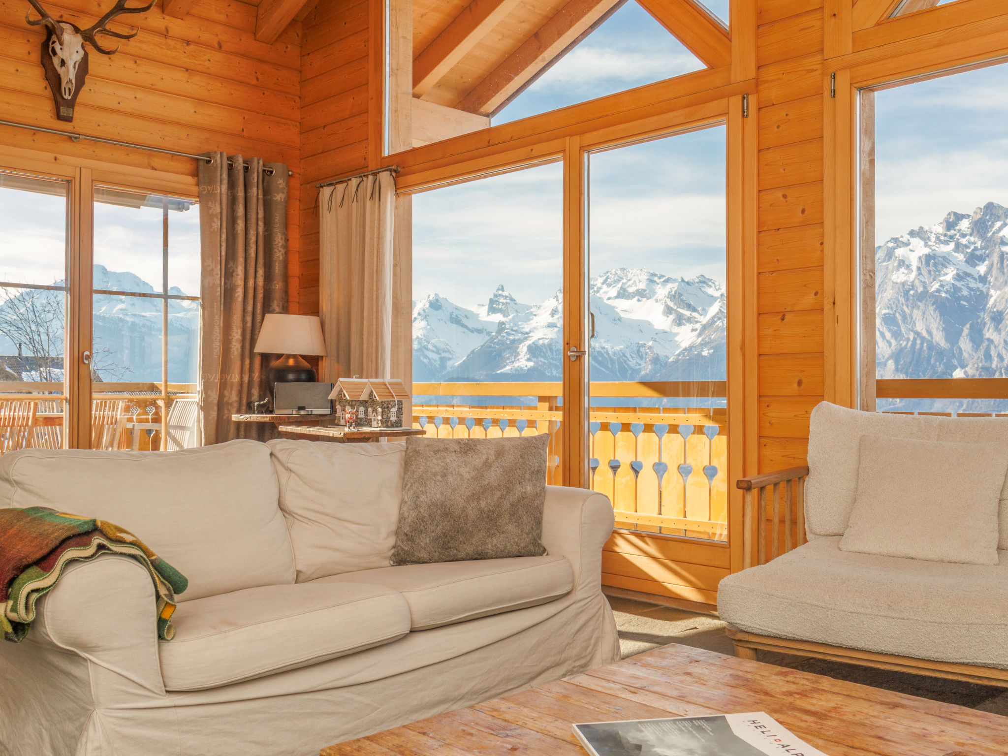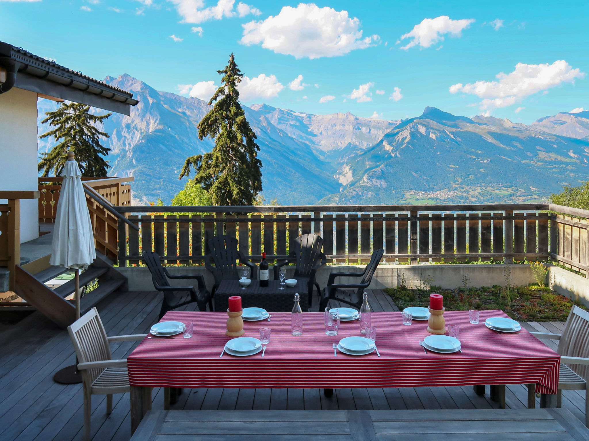 "Ratatouille", 5-Zimmer-Chalet 210 m2 auf 3 Stockwerken. Schön und geschmackvoll eingerichtet: Wohn-/Esszimmer mit offenem Kamin und Sat-TV. Offene Küche (Backofen, Geschirrspüler, 5 Glaskeramikplatten, Toaster, Wasserkocher, Mikrowelle, elektrische Kaffeemaschine, Kapseln für die Kaffeemaschine (Nespresso) extra, Racletteofen, Fondue Set (Käse)) mit Bar. E-Heizung. Unteres Geschoss: 1 Zimmer mit 1 franz. Bett. 2 Zimmer, jedes Zimmer mit 2 Betten (90 cm, Länge 200 cm). Bad/WC, Dusche, sep. WC. Obergeschoss: 1 Zimmer mit 2 Betten (90 cm, Länge 200 cm). Dusche/WC. Natursteinboden. Grosser Balkon, Nordlage und Westlage, kleiner Balkon, Ostlage Terrasse, Westlage. Terrassenmöbel, Gartengrill, Liegestühle. Sehr schöne Sicht auf die Berge und das Tal. Zur Verfügung: Waschmaschine, Wäschetrockner, Kinderhochstuhl, Babybett, Haartrockner. Internet (WLAN, gratis). Garage (2 Autos), Höhe 195 cm, Breite 275 cm. Bitte beachten: Nichtraucher-Haus. Maximal 1 Haustier/Hund erlaubt.
