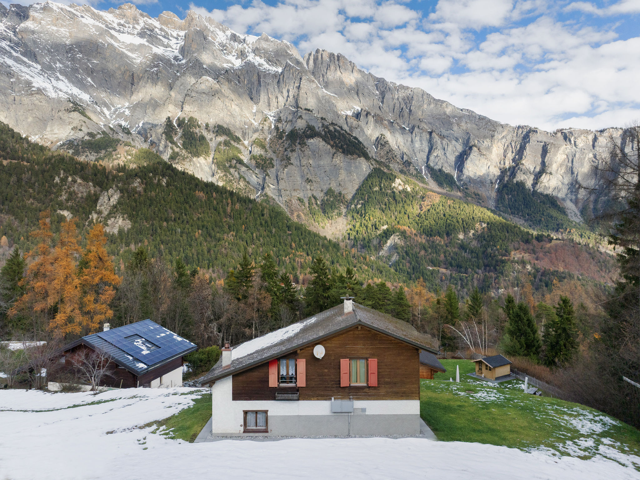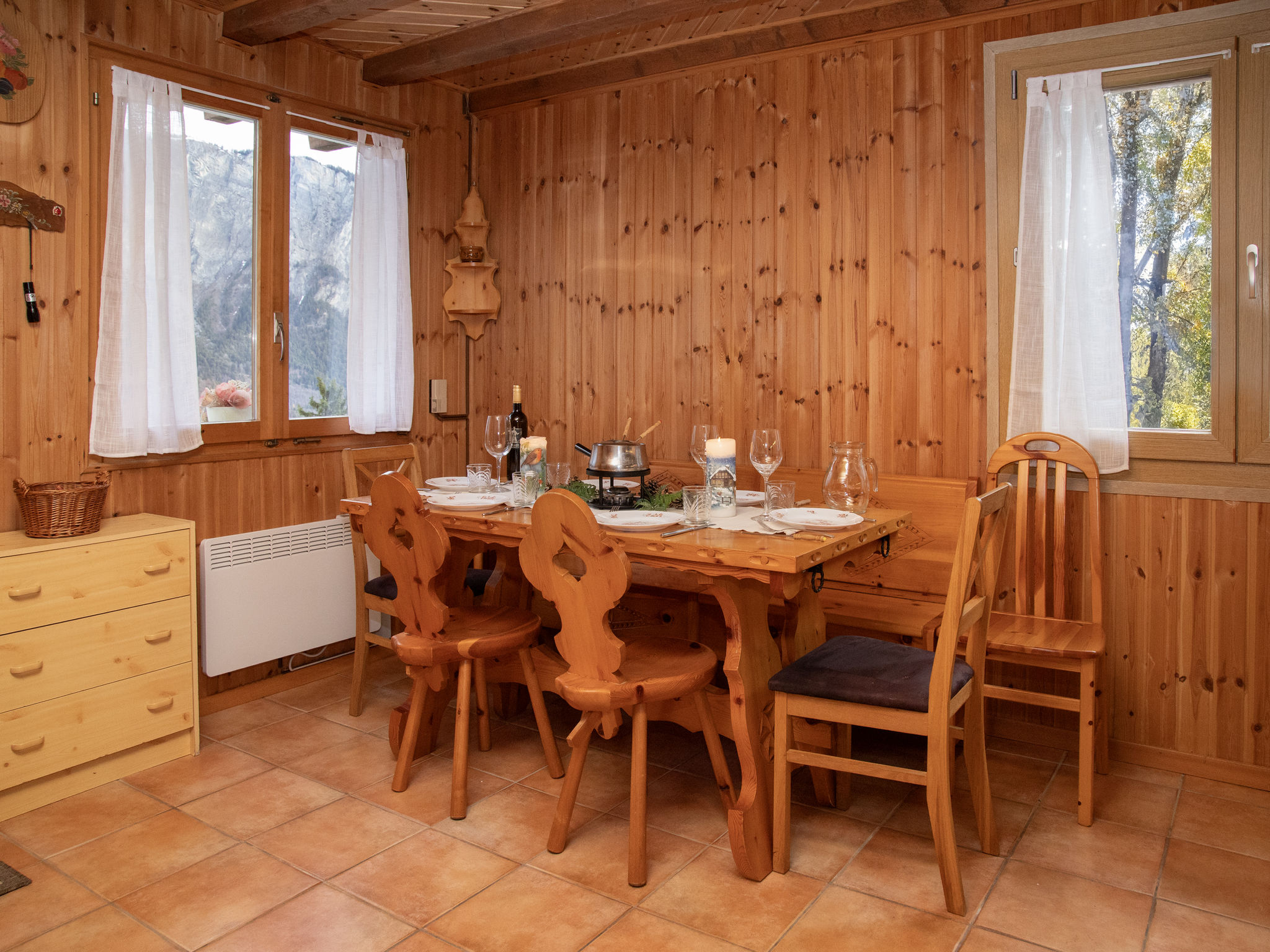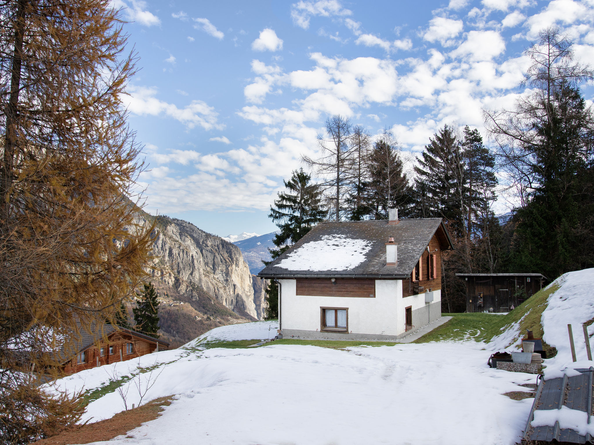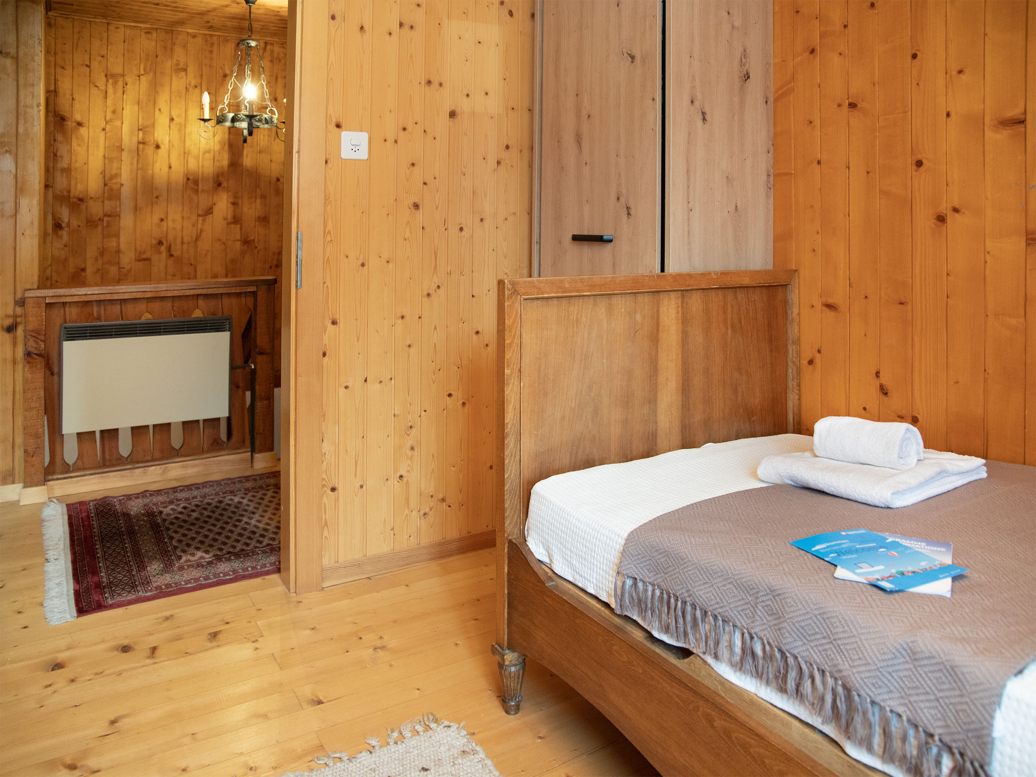 "Mélèze 1967", 5-Zimmer-Chalet 100 m2 auf 2 Stockwerken, Nordostlage. Objekt geeignet für 2 Erwachsene + 3 Kinder. Schön und rustikal eingerichtet: grosses Esszimmer mit Esstisch. Wohnzimmer mit Sat-TV und Holzofen. Offene Küche (Backofen, Geschirrspüler, 4 Glaskeramikplatten, Toaster, Wasserkocher, elektrische Kaffeemaschine, Kapseln für die Kaffeemaschine (Dolce Gusto) extra, Fondue Set (Chinoise, Käse)). Bad. E-Heizung. Obergeschoss: 1 Doppelzimmer mit 1 franz. Bett (160 cm, Länge 200 cm). Ausgang zum Balkon, Richtung Nordosten. 2 Zimmer, jedes Zimmer mit 1 Bett (90 cm, Länge 190 cm). 1 abgeschrägtes Kinderzimmer mit 2 Schlafmöglichkeiten. Schöne Sicht auf die Berge. Zur Verfügung: Waschmaschine, Wäschetrockner. Parkplatz (2 Autos). Bitte beachten: Nichtraucher-Unterkunft.