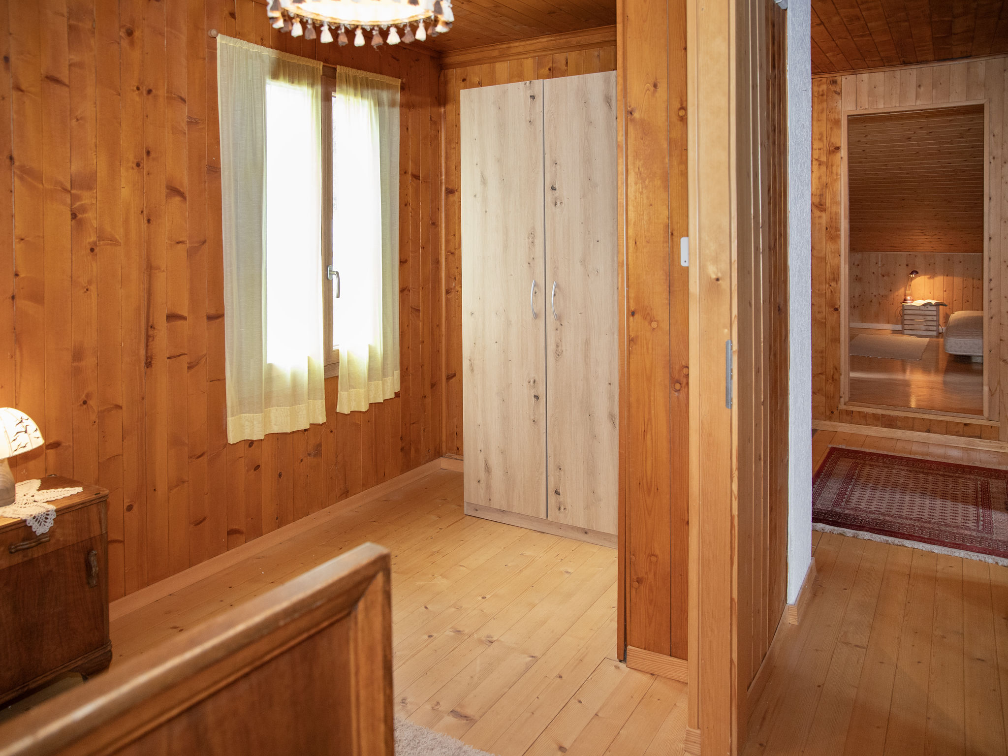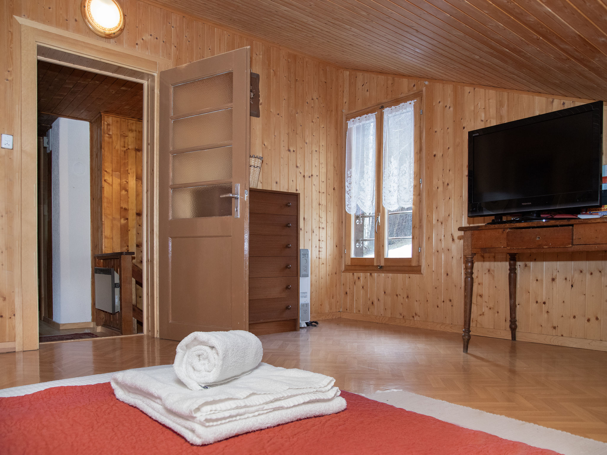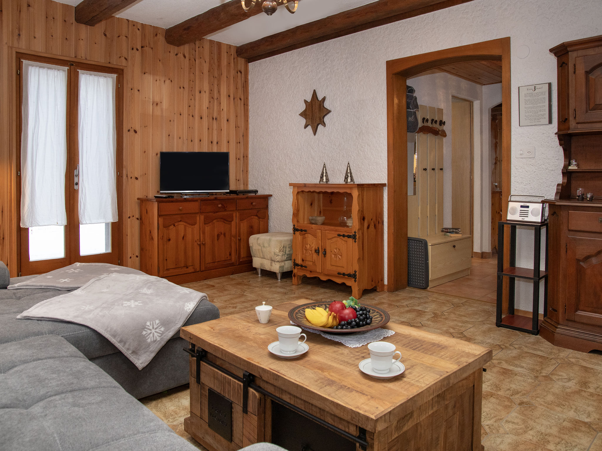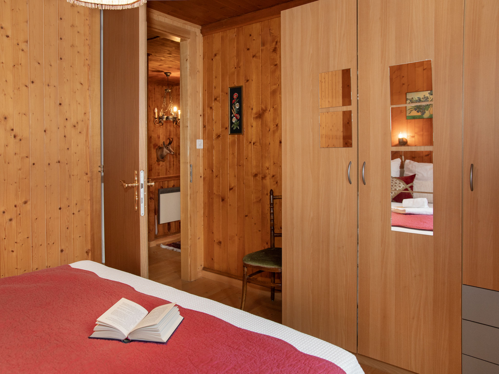 "Mélèze 1967", 5-Zimmer-Chalet 100 m2 auf 2 Stockwerken, Nordostlage. Objekt geeignet für 2 Erwachsene + 3 Kinder. Schön und rustikal eingerichtet: grosses Esszimmer mit Esstisch. Wohnzimmer mit Sat-TV und Holzofen. Offene Küche (Backofen, Geschirrspüler, 4 Glaskeramikplatten, Toaster, Wasserkocher, elektrische Kaffeemaschine, Kapseln für die Kaffeemaschine (Dolce Gusto) extra, Fondue Set (Chinoise, Käse)). Bad. E-Heizung. Obergeschoss: 1 Doppelzimmer mit 1 franz. Bett (160 cm, Länge 200 cm). Ausgang zum Balkon, Richtung Nordosten. 2 Zimmer, jedes Zimmer mit 1 Bett (90 cm, Länge 190 cm). 1 abgeschrägtes Kinderzimmer mit 2 Schlafmöglichkeiten. Schöne Sicht auf die Berge. Zur Verfügung: Waschmaschine, Wäschetrockner. Parkplatz (2 Autos). Bitte beachten: Nichtraucher-Unterkunft.