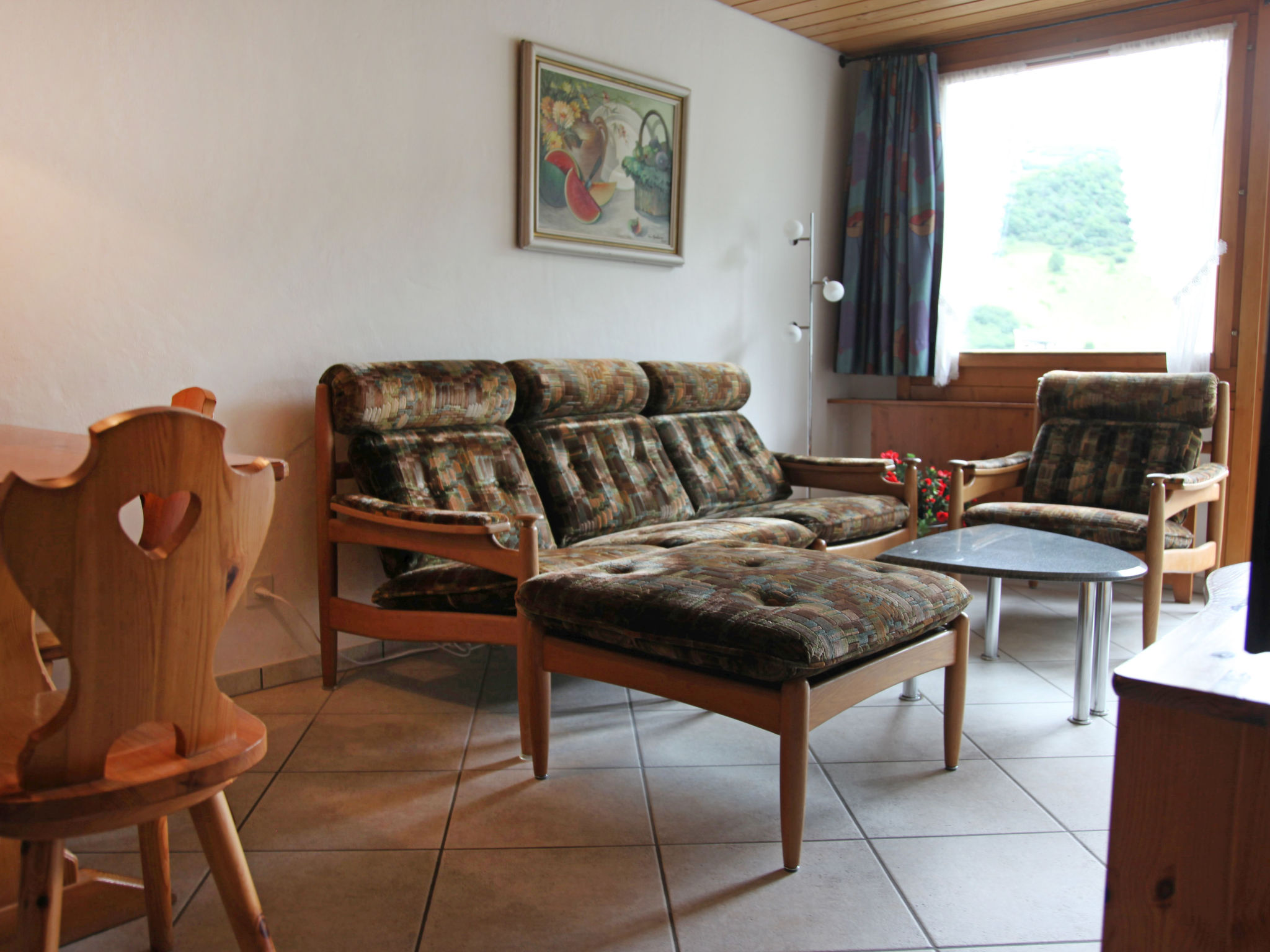 "Utoring Plaz 030", 2-Zimmer-Wohnung 41 m2 im 6. Stock. Einfach und zweckmässig eingerichtet: kleines Wohn-/Esszimmer mit TV (Flachbildschirm), Radio. 1 kleines Doppelzimmer mit 1 Doppelbett. Offene Küche (Backofen, Geschirrspüler, 4 Glaskeramikplatten). Dusche/WC. Balkon. Balkonmöbel. Schöne Sicht auf die Berge, die Landschaft und die Ortschaft. Zur Verfügung: Telefon, Haartrockner. Garage Nr. 30. Bitte beachten: Nichtraucher-Unterkunft.