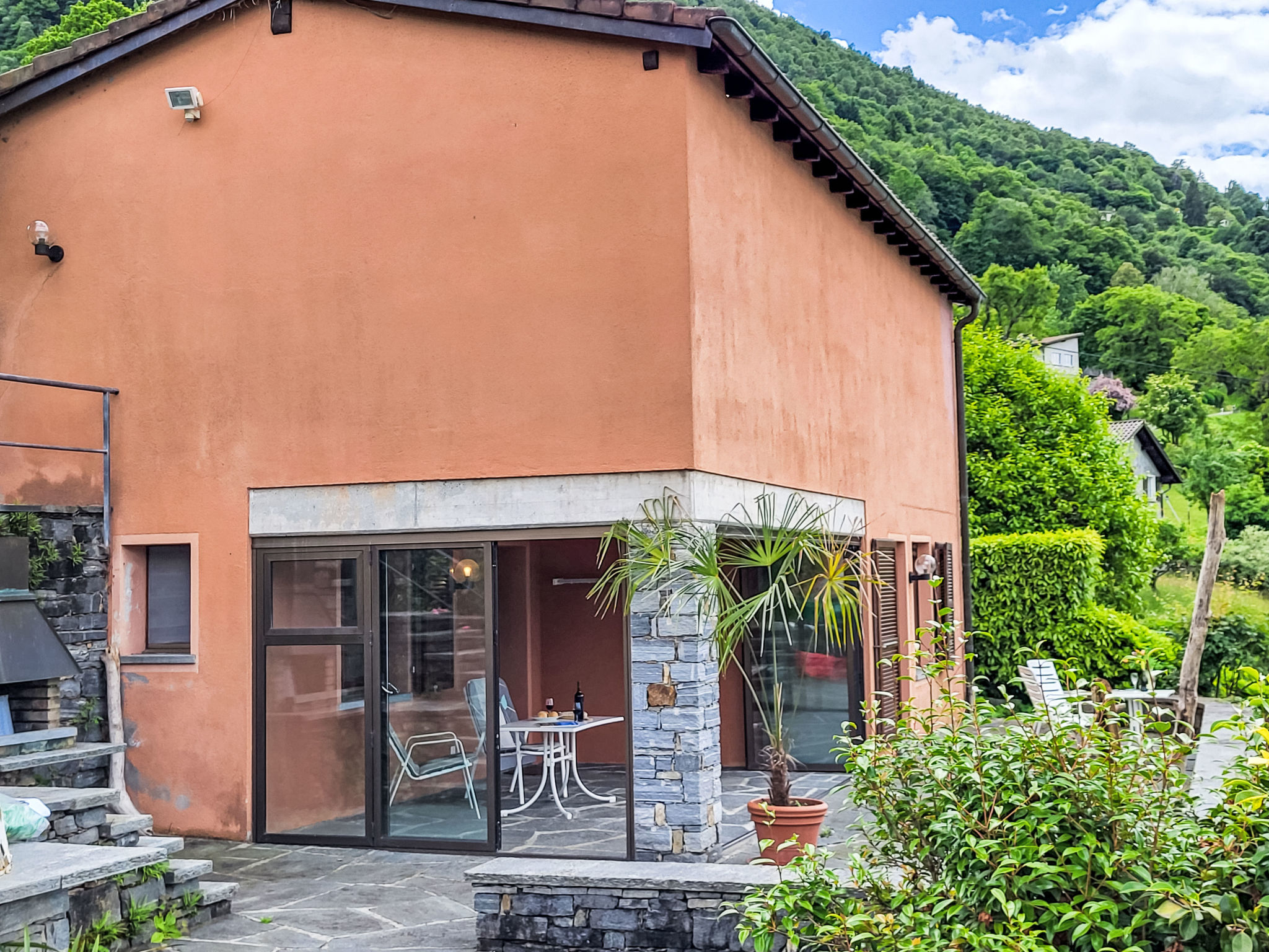 Vira Fosano 15 km von Locarno: Rustikaler, einfacher Bungalow "La Casa nei Monti", 653 m.ü.M., umgeben von Bäumen, Wiesen und Feldern. Oberhalb von Vira (3 km), ruhige, sonnige Lage am Hang, 20 m vom Waldrand, 5 km vom See, im Grünen, Richtung Nordwesten. Zur Mitbenutzung: grosser, gepflegter terrassierter Garten, 3'000 m2. Treppenweg (8 Stufen) bis zum Haus. Parkplatz beim Haus in 20 m. Lebensmittelgeschäft 3 km, Restaurant 3 km, Bushaltestelle "Monti di Fosano, Monti (Li.352)" 20 m, Bahnstation "Cadenazzo Stazione (S 20)", Kieselstrand "Lido Vira Shaka Beach" 5 km, Thermalbad "Thermali e Saline, Locarno" 15 km, Badesee "Lago Maggiore" 5 km. Nahe gelegene Sehenswürdigkeiten: Indemini, Botanischer Garten Gambarogno, Bolle di Magadino, Monti di Gerra, Locarno Piazza Grande, Ascona. Bekannte Seen in der Umgebung sind gut erreichbar: Lago Maggiore. Wandergebiete: Monte Gambarogno, Magadino Ebene, Valle Verzasca. Der Besitzer akzeptiert keine Jugendgruppen. Bitte beachten: Tiere in der Umgebung.