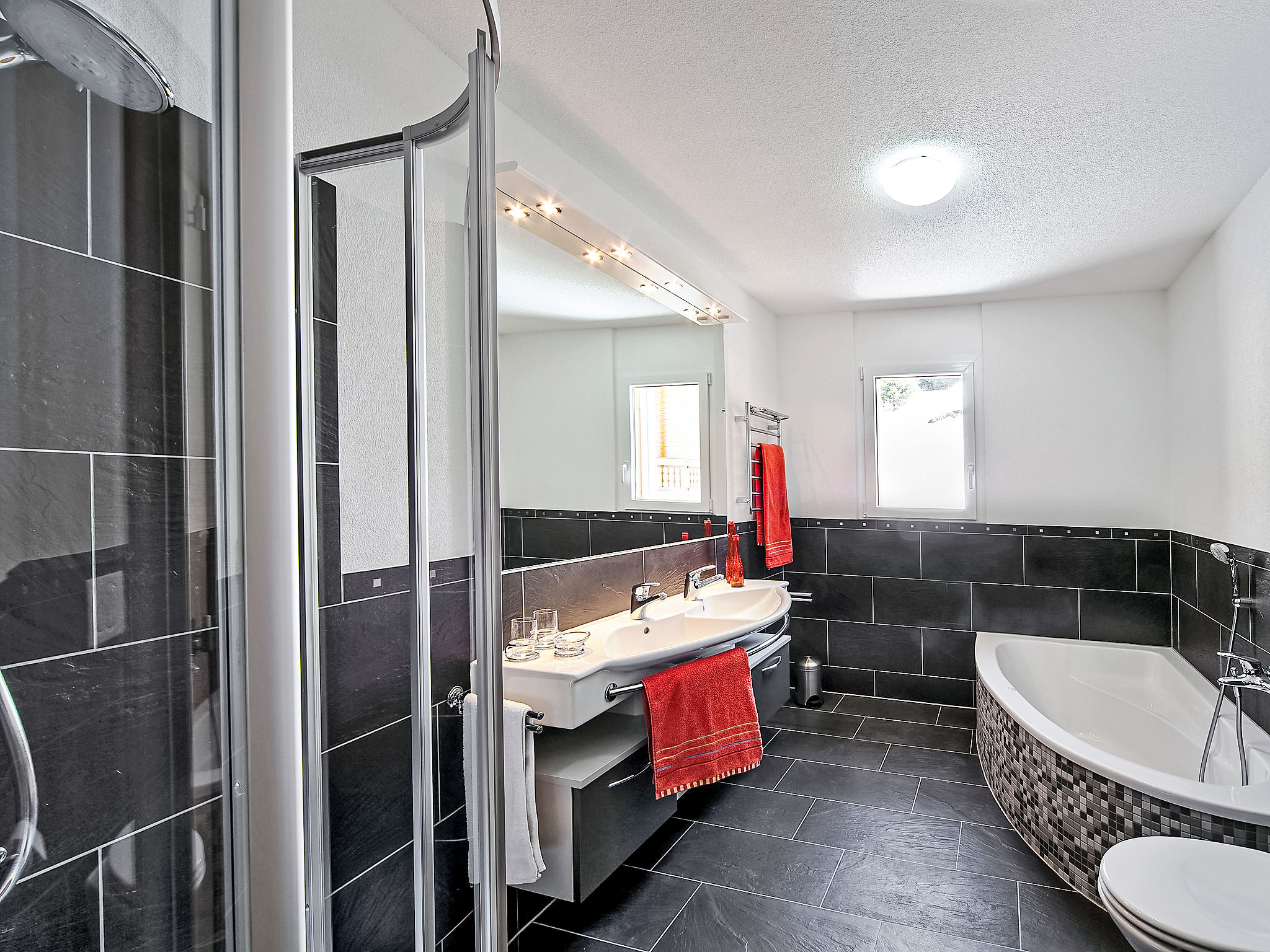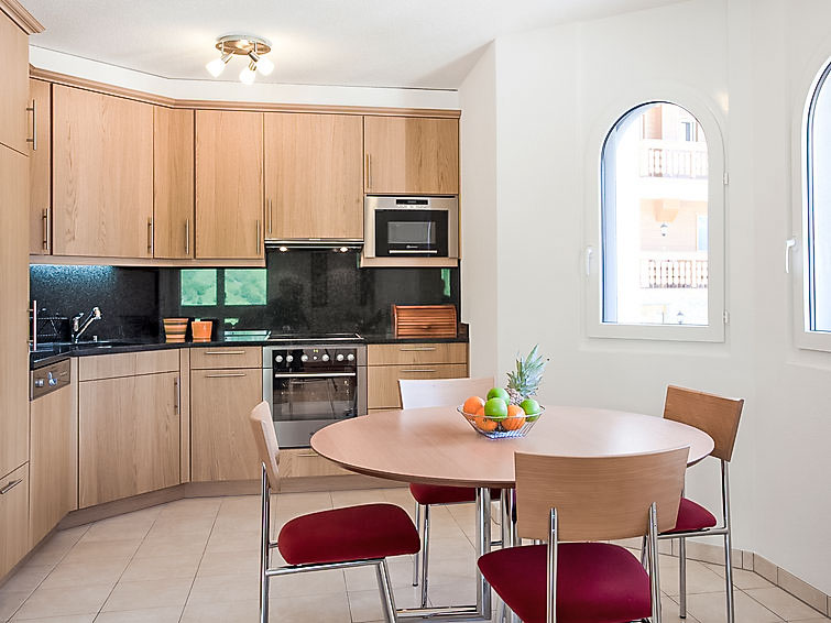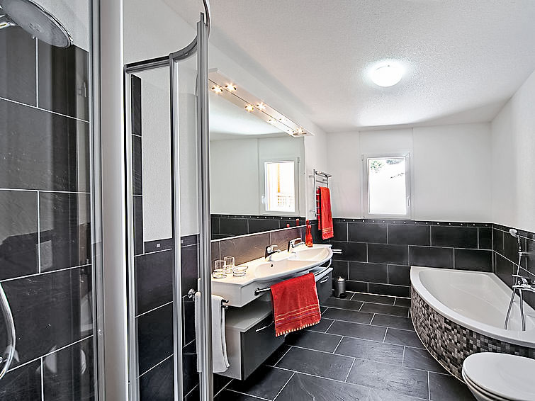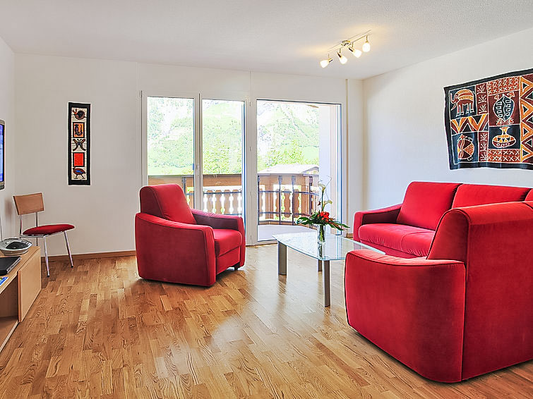 Komfortables Appartementhaus "Iris A", auf 4 Stockwerken, Baujahr 2008. Im Ort, zentrale, sonnige, erhöhte Lage, an einer Strasse. In der Anlage: Sauna, Fitnessraum, Dampfbad, Sprudelbad, Fahrstuhl, Zentralheizung, Waschmaschine, Wäschetrockner (zur Mitbenutzung, extra). Gemeinschaftsgarage. Einkaufsgeschäft 400 m, Restaurant 200 m, Bar, Café 400 m, Bushaltestelle "Leukerbad, Obere Maressen" 250 m, Thermalbad 400 m. Skisportanlagen 600 m, Skibushaltestelle 150 m, Eisfeld 1 km. Zwischen den Iris-Häuser gibt es ein Fitness- und Wellness-Chalet zur Mitbenutzung für alle Hausbewohner. Wellness mit Finnisch-Sauna, Aromadampfbad, Einzel-Whirlpool. In der Buchung ist die Leukerbad Plus Card inbegriffen. Die Leukerbad Plus Card beinhaltet folgende Leistungen: Freie Benutzung des Ortsbus Ringjet, Freie Benutzung des Kinder-Skigebietes Erli, Gratis Nutzung der Sportarena (Badminton, Tennis, Squash, Billard, Tischtennis, Eislaufen, Fussball, Indoor-Fussball, Minigolf, Boulder, etc.), 15% Ermässigung beim Kauf eines Schnee- und Badepasses. 10% Ermässigung auf Abonnemente und Mehrfacheintritte in öffentlichen Thermalbäder.