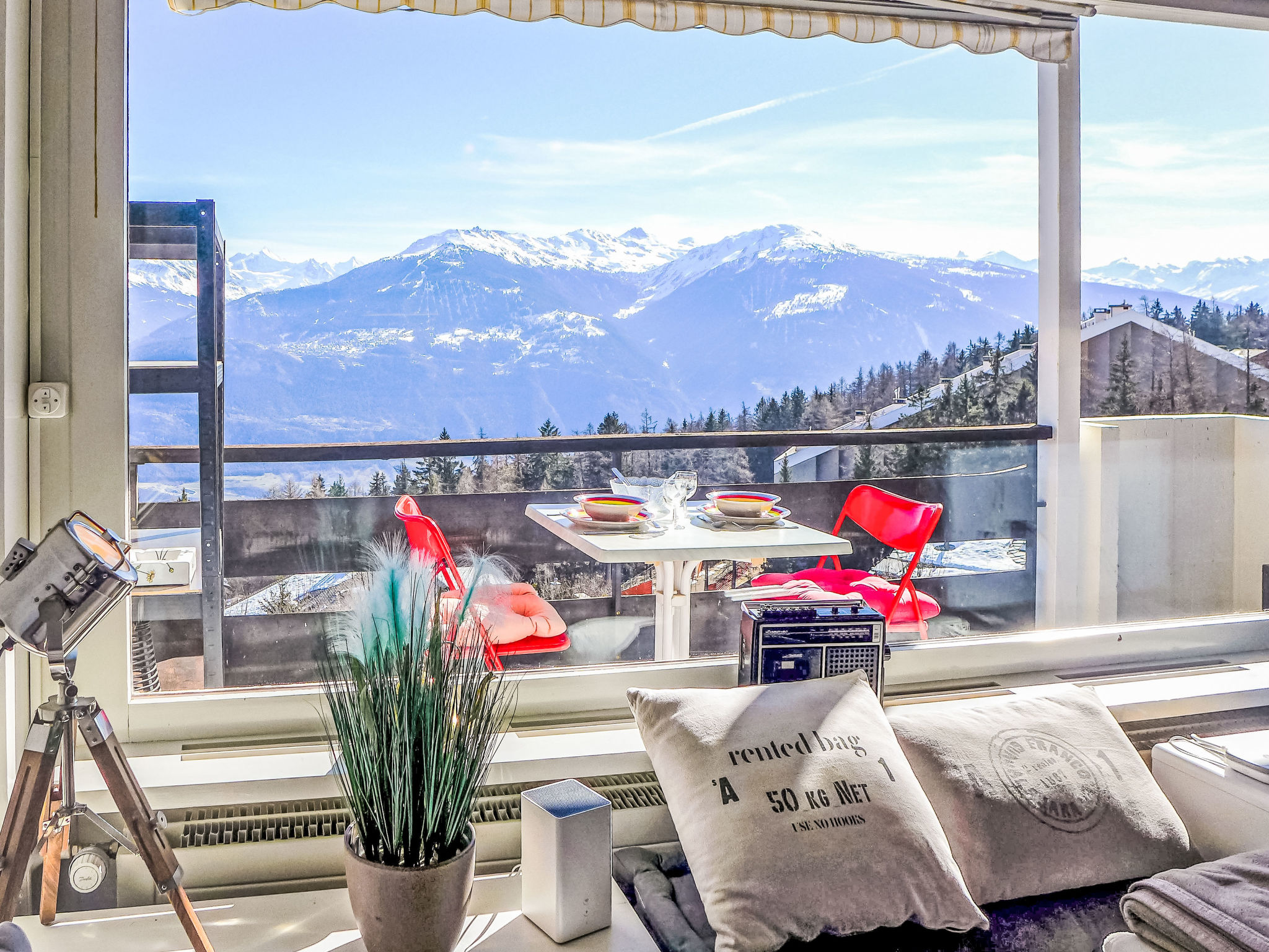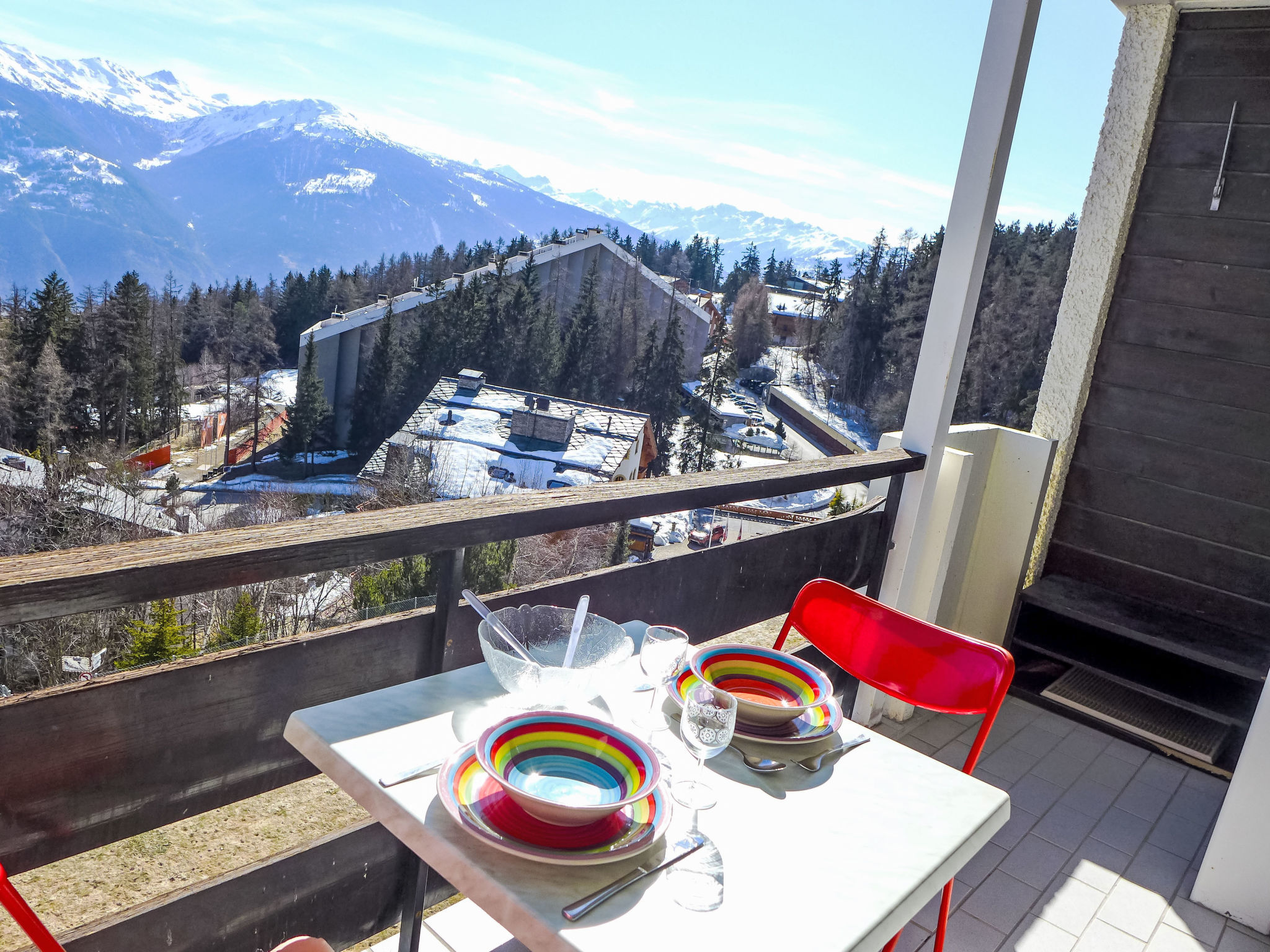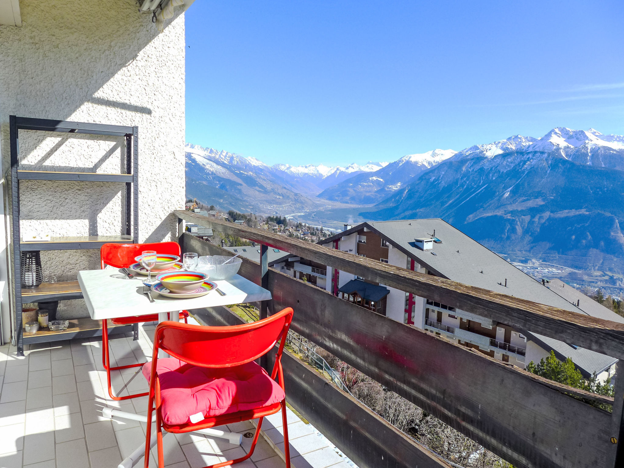 "Les Orzières 417", 2-Zimmer-Wohnung 47 m2 im 4. Stock. Hell, teilweise renoviert im Jahre 2019, komfortabel und gemütlich eingerichtet: Wohn-/Esszimmer mit Kabel-TV. Ausgang zum Balkon. 1 Zimmer mit 1 franz. Bett (140 cm, Länge 190 cm). Offene Küche (3 Kochplatten, Backofen, Toaster, Wasserkocher, Mikrowelle, elektrische Kaffeemaschine, Kapseln für die Kaffeemaschine (Nespresso) extra, Racletteofen, Fondue Set (Chinoise, Käse)). Dusche/WC. Balkon 7 m2, Südlage. Balkonmöbel, Elektrogrill. Herrliche Sicht auf die Berge und das Tal. Zur Verfügung: Bügeleisen, Haartrockner. Internet (WLAN, gratis). Garage Nr. 23 (1 Auto), Höhe 225 cm, Breite 215 cm. Bitte beachten: Nichtraucher-Unterkunft. Maximal 1 Haustier/Hund erlaubt.