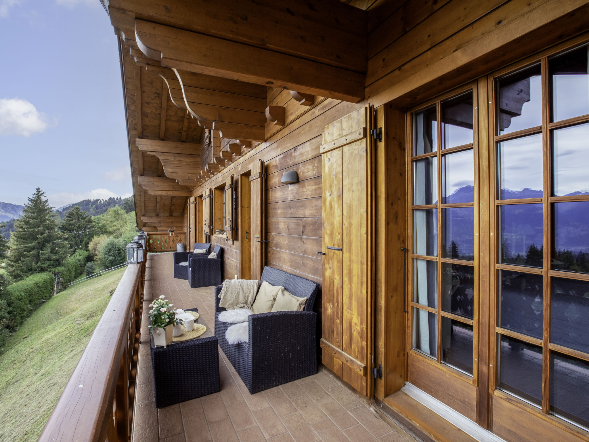"La-Ina", 5-Zimmer-Attikawohnung 180 m2 auf 2 Stockwerken im 1. Stock, Südlage. Geräumig, komfortabel und schön eingerichtet: Salon mit offenem Kamin und TV (Flachbildschirm). Ausgang zum Balkon, Richtung Süden. Esszimmer mit Esstisch. Ausgang zum Balkon, Richtung Süden. 1 Zimmer mit 1 franz. Bett (1 x 180 cm). Ausgang zum Balkon, Richtung Süden. 1 Zimmer mit 1 franz. Bett (1 x 180 cm). 1 Zimmer mit 1 franz. Bett (1 x 180 cm), Bad/Dusche. Ausgang zum Balkon, Richtung Süden. Grosse, offene Küche (Backofen, Geschirrspüler, 4 Induktionskochplatten, Toaster, Wasserkocher, Mikrowelle, elektrische Kaffeemaschine, Racletteofen, Fondue Set (Käse)). Ausgang zum Balkon, Richtung Norden. Dusche/WC, sep. WC. Obergeschoss: 1 abgeschrägtes, offenes Zimmer, ohne Schrank mit 2 Betten (90 cm). Grosser Balkon, Südlage, kleiner Balkon, Nordlage. Balkonmöbel. Sehr schöne Panoramasicht auf die Berge. Zur Verfügung: Waschmaschine, Wäschetrockner. Internet (Wireless LAN, gratis). Parkplatz (2 Autos) in 30 m. Bitte beachten: Nichtraucher-Unterkunft. Kein Fahrstuhl. 434.061.12