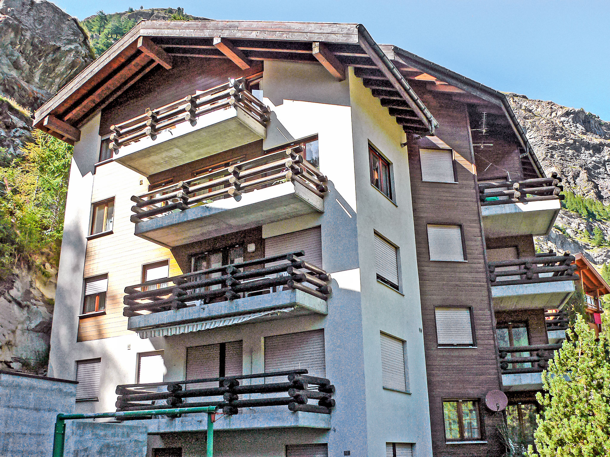 Schönes, einfaches Mehrfamilienhaus "Bodmen A". Im Ortsteil Bodmen, 450 m vom Zentrum von Zermatt, ruhige, sonnige, erhöhte Lage. Im Hause: Fahrstuhl, Zentralheizung. Supermarkt, Restaurant 350 m, Bäckerei 450 m, Fahrradverleih 500 m, Zentrum zu Fuss in 5 Minuten erreichbar, Bushaltestelle "Bahnhof Zermatt" 500 m. Bergeisenbahn 500 m, Skiverleih 350 m, Skibushaltestelle 500 m, Skischule 250 m, Kinderskischule. Taxi kann nicht bis zum Haus fahren. Die Schlüsselübergabe findet bei der Agentur Interhome in Zermatt statt. Die Wohnung im Haus Bodmen A ist durch einen 50 m langen Tunnel erreichbar.