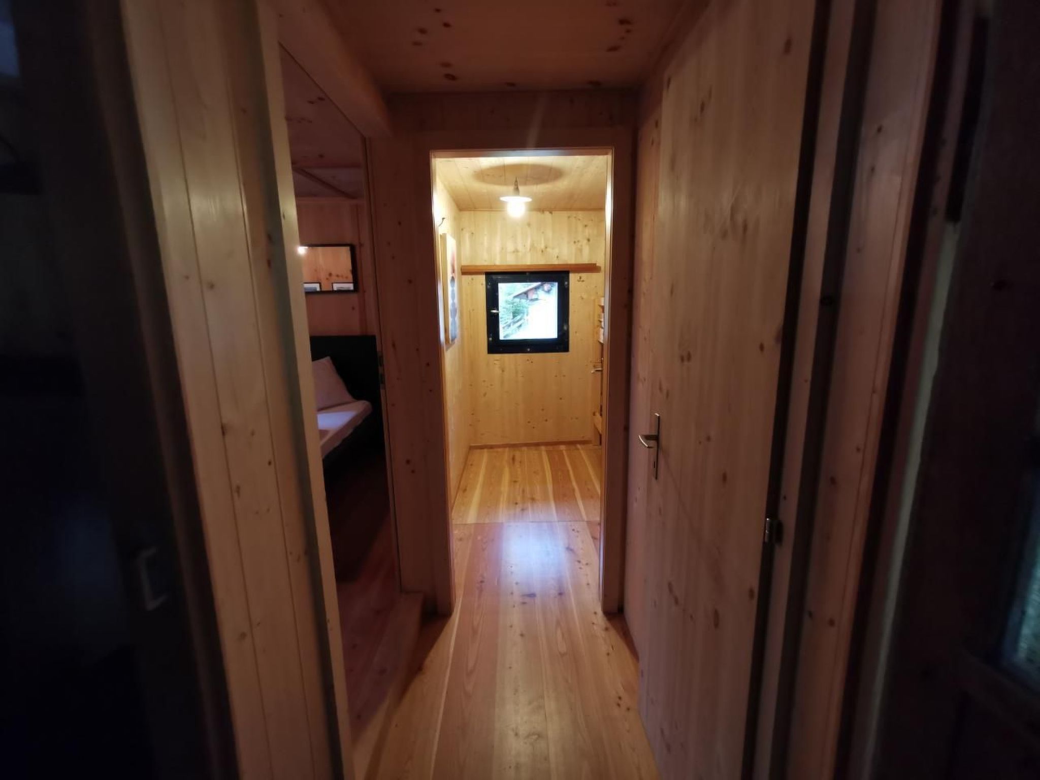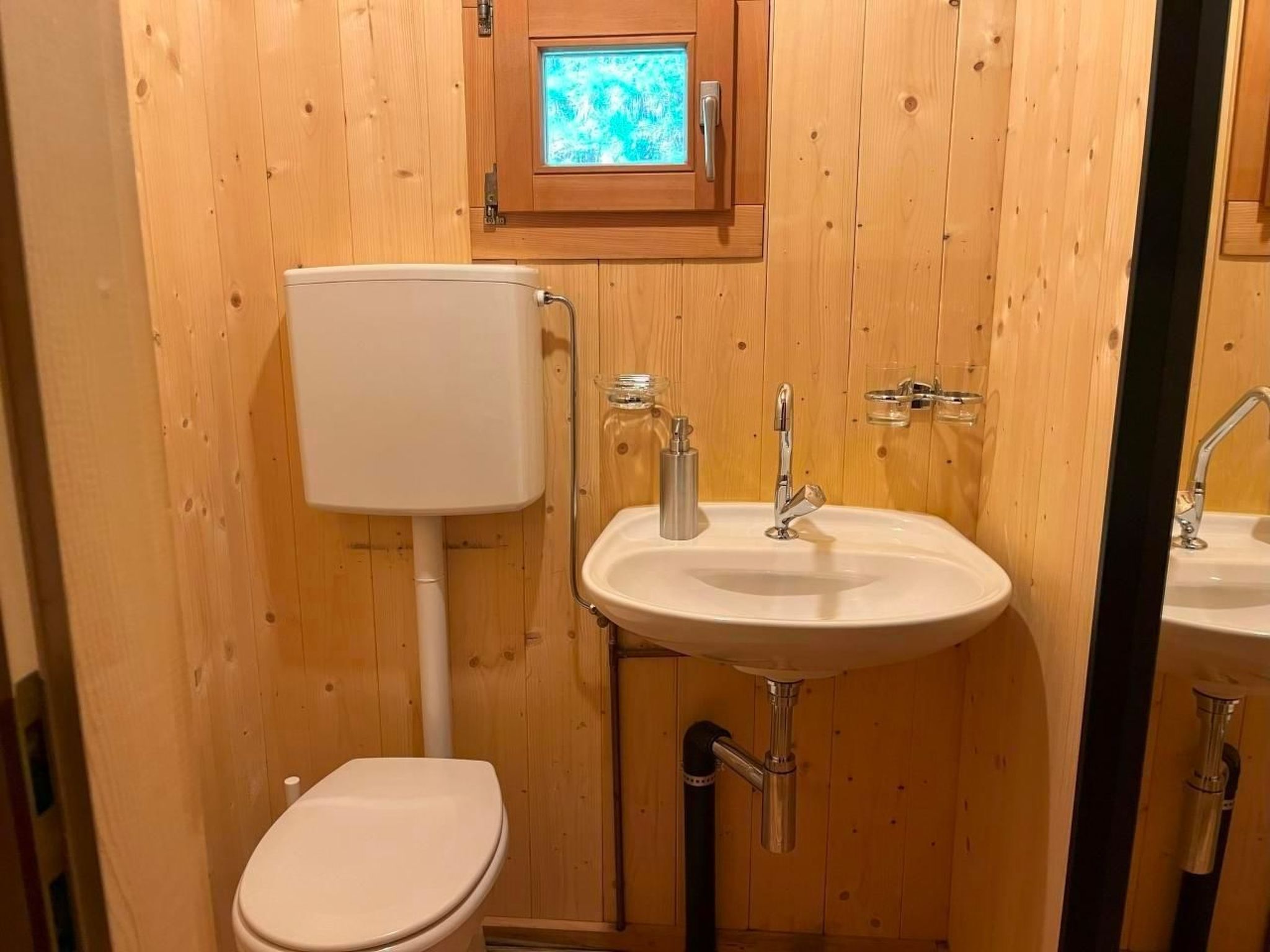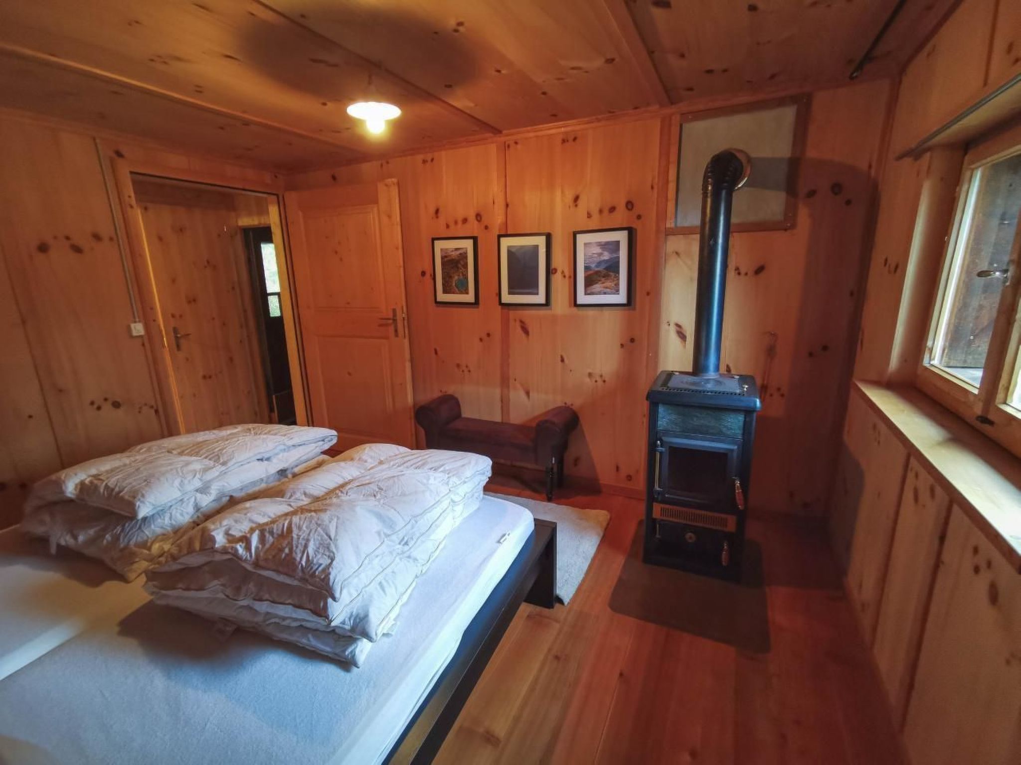 Im Schlafhaus (Holzhaus) befindet sich ein Zimmer mit einem Doppelbett und einem Schwedenofen. Direkt nebenan ist ein kleines Schlafzimmer mit einem Kajüten Bett. Ein WC mit Lavabo ist direkt bei den beiden Schlafzimmern zu finden. Im Vorraum der Schlafzimmer befindet sich ein Aufenthaltsraum.