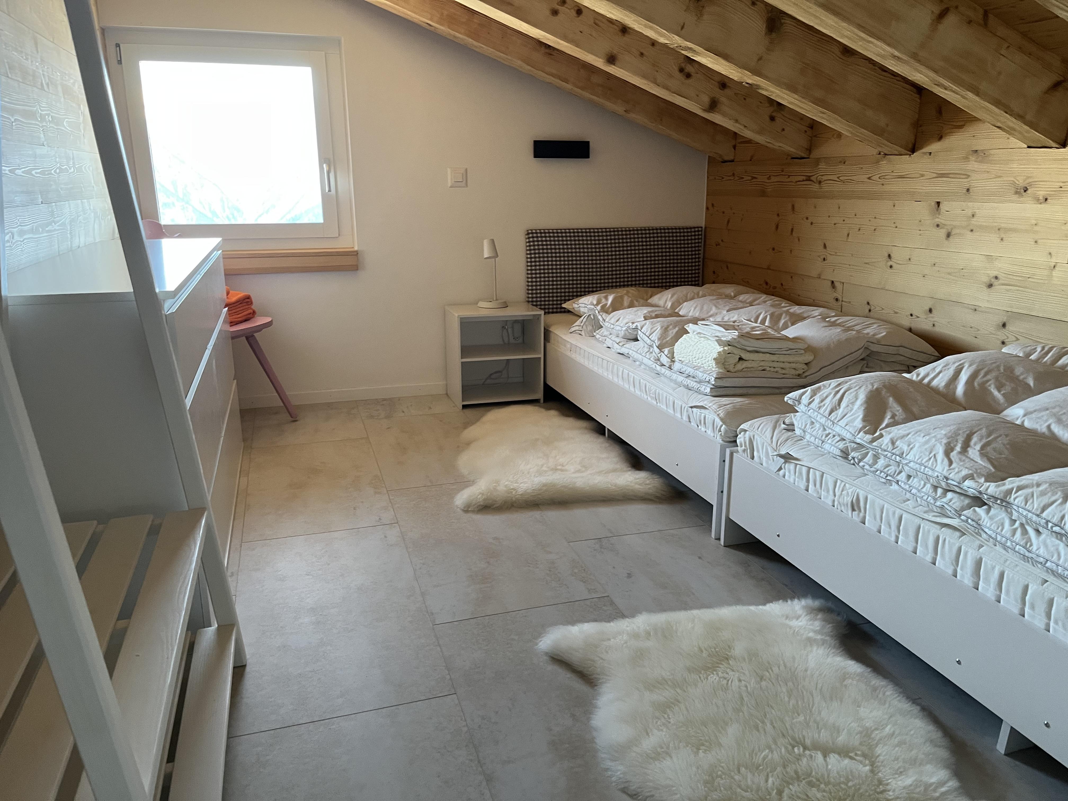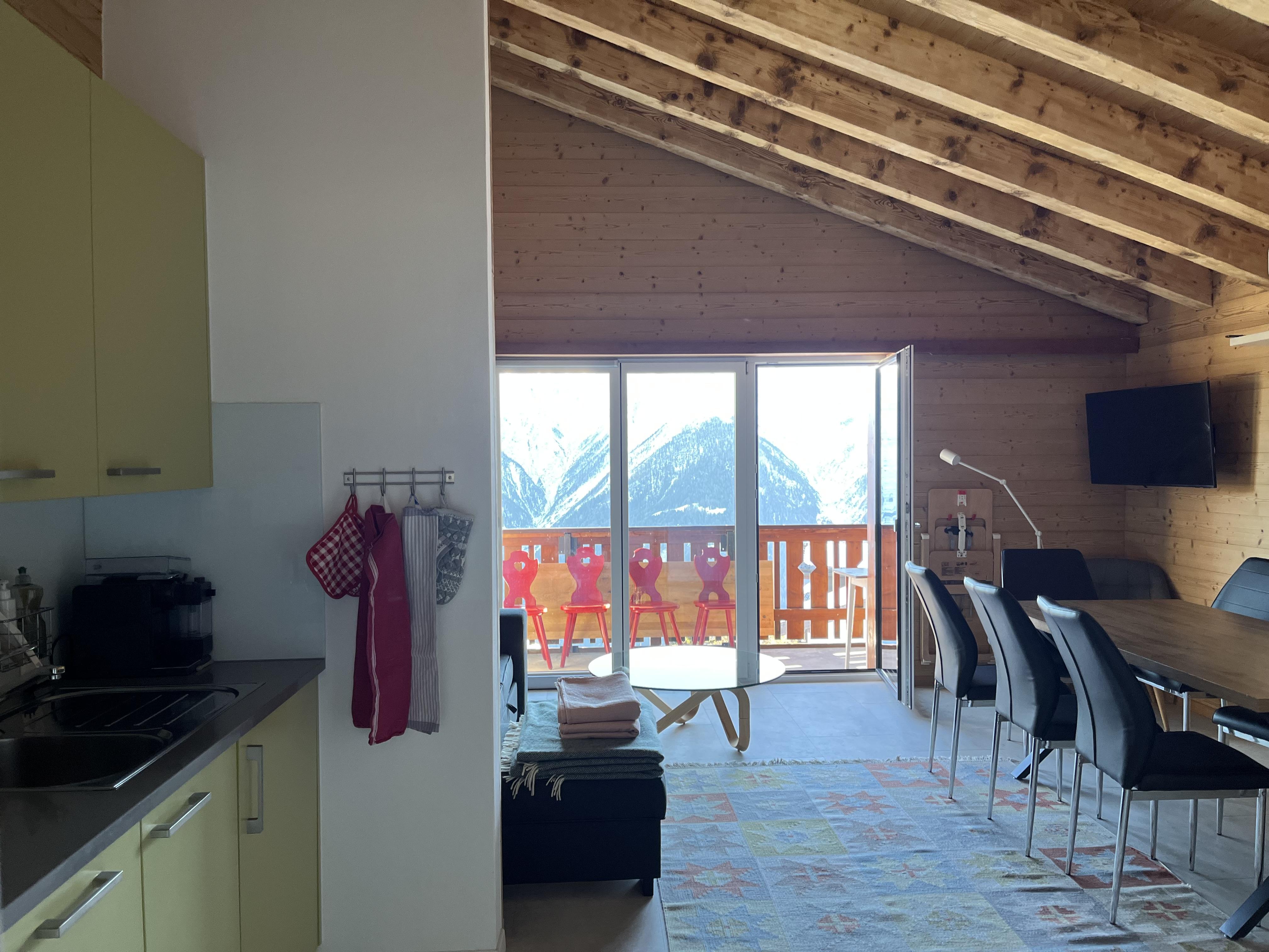 Die Dachgeschosswohnung im Haus Bergliebe bietet eine ruhige Rückzugsmöglichkeit mit eindrucksvoller Aussicht auf die umliegende Bergwelt. Trotz der zentralen Lage und der Nähe zur Bergbahnstation, die in wenigen Gehminuten erreichbar ist, geniesst du hier eine entspannte Atmosphäre fernab vom Trubel. Das Mehrfamilienhaus eignet sich besonders für Familien und überzeugt mit einem Nichtraucherkonzept. Sie können mit den Ski direkt vors Haus fahren und ihre Ausrüstung im Skiraum vom Haus deponieren. Die Wohnung verfügt über drei Zimmer, ein Bad mit Dusche und WC und eine zusätzliche Nasszelle mit einem Doppel-Lavabo.