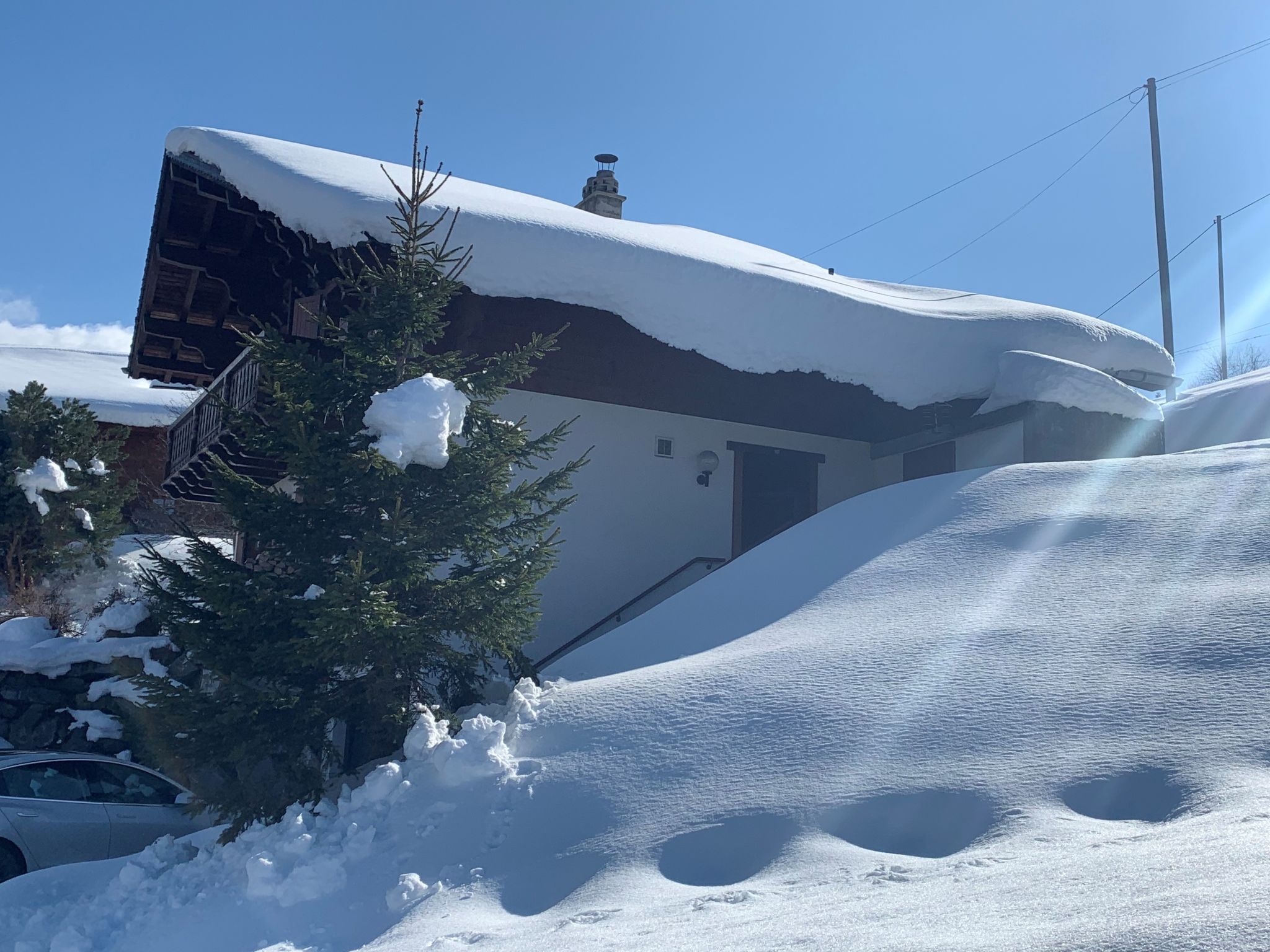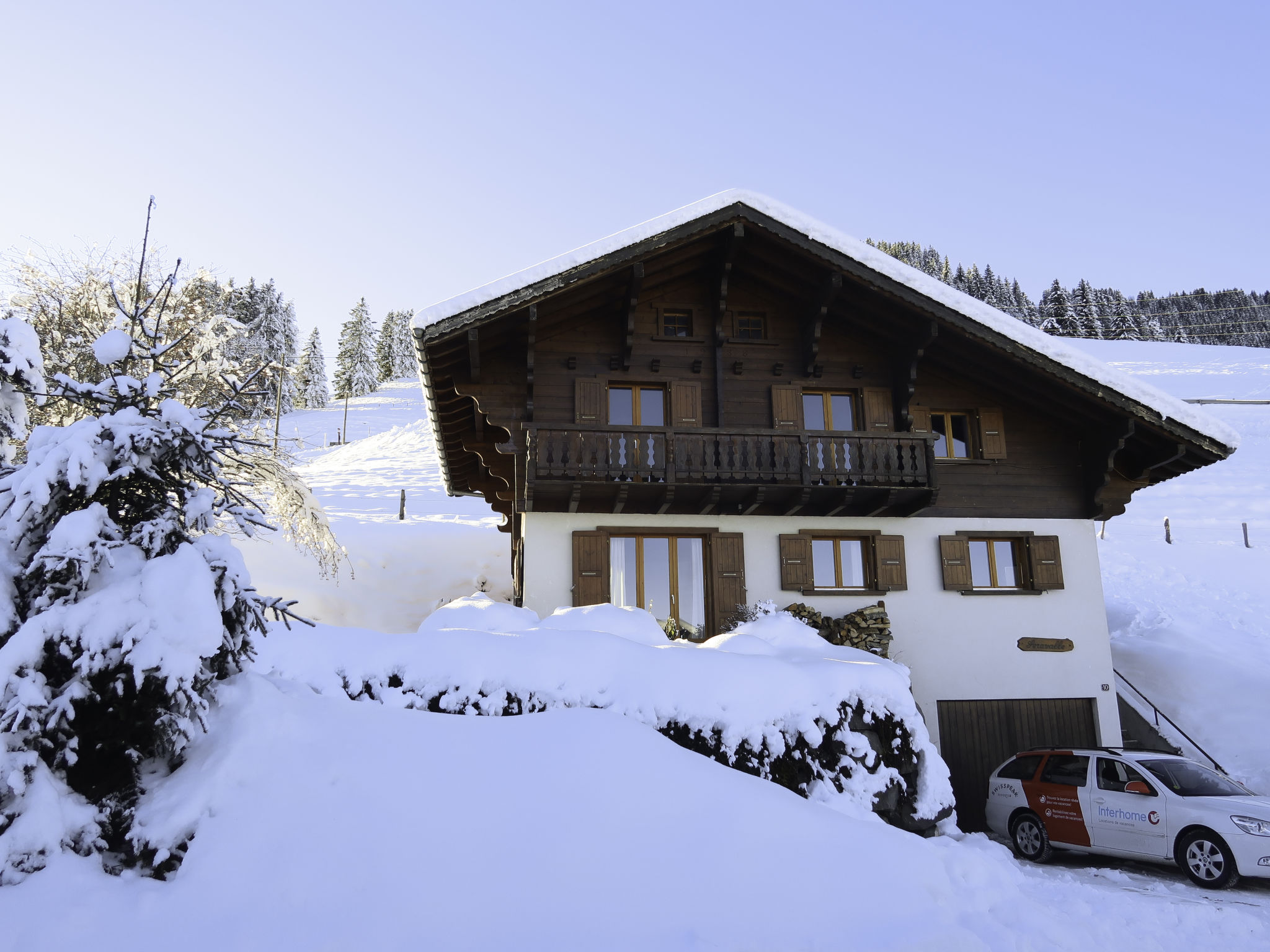 Les Flats 6 km von Val d'Illiez: Gemütliches, rustikales Chalet "Seravalle", 1'450 m.ü.M., umgeben von Wiesen. Ausserhalb des Ortes, 6 km vom Zentrum von Val d'Illiez, ruhige, sonnige Lage am Hang, in einer Sackgasse. 500 m lange schmale Zufahrt bis zum Haus. Im Winter 4x4 empfohlen. Einzelgarage, öffentliche Parkplätze 100 m. Lebensmittelgeschäft 6 km, Supermarkt 9 km, Einkaufszentrum 15 km, Restaurant 6 km, Bäckerei 6 km, Bushaltestelle "Les Ayers" 1 km, Bahnstation "Val d'Illiez" 6 km, Freibad 9 km, Hallenbad 9 km. Sportzentrum 9 km, Gondelbahn 9 km, Skipisten 4.5 km, Skiverleih 4.5 km, Langlaufloipe 10 km, Eisfeld 9 km. Bekannte Skigebiete sind gut erreichbar: Portes du Soleil. Bitte beachten: Fahrzeug empfohlen.
