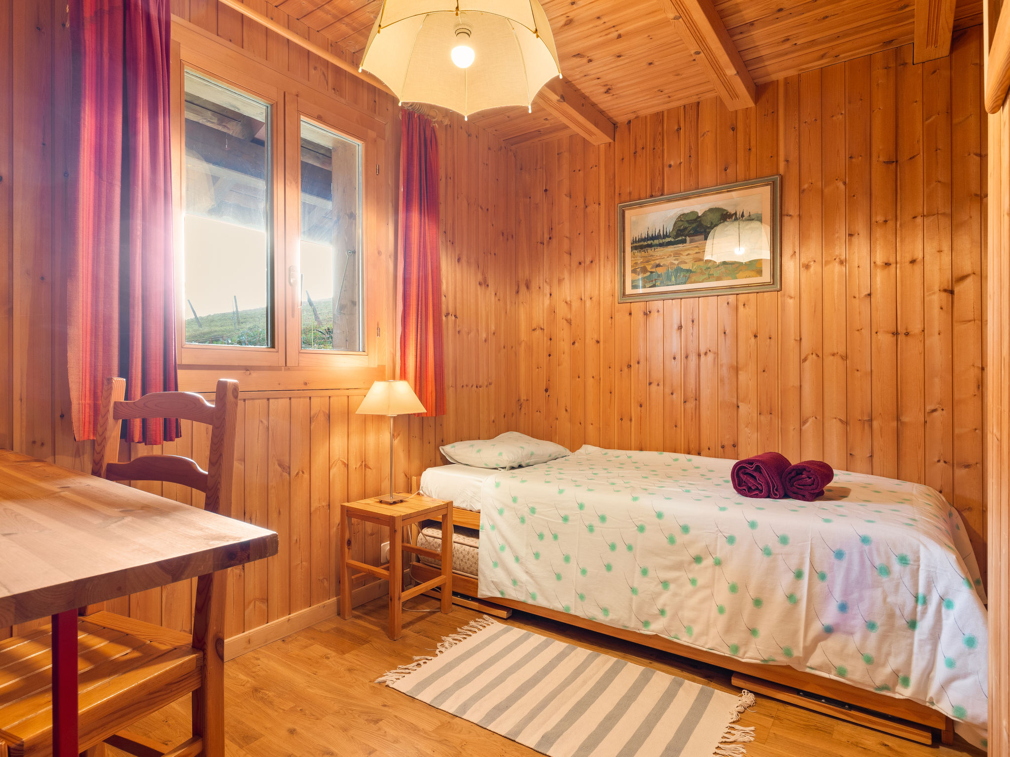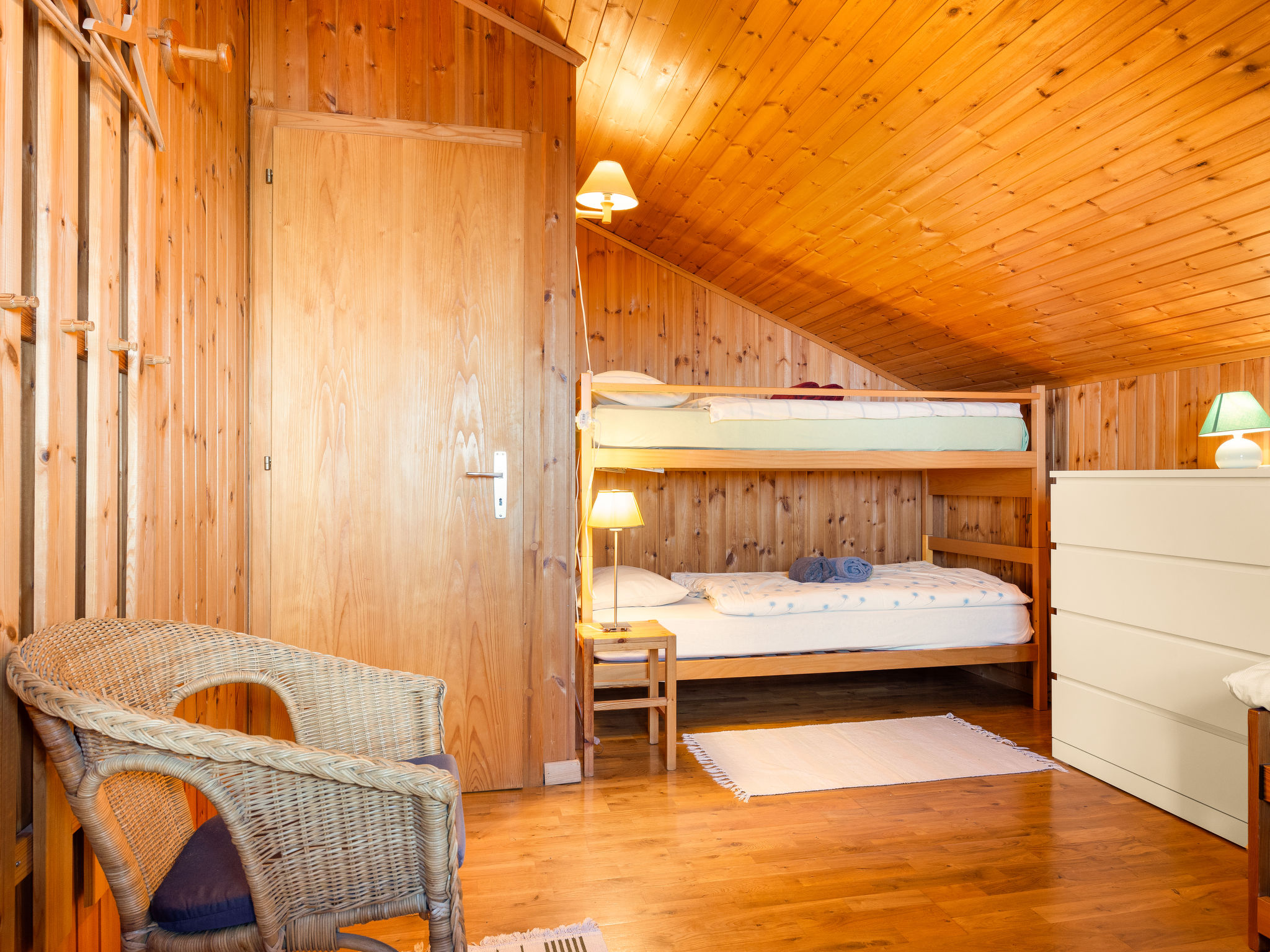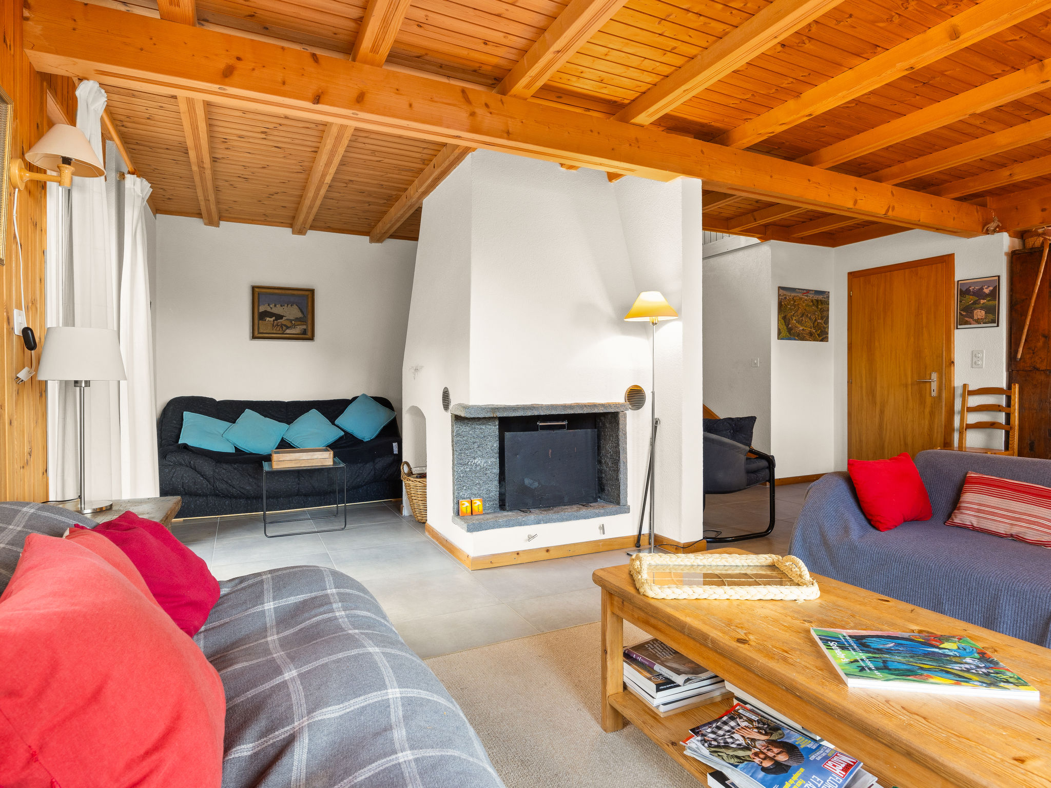 "Chalet Seravalle", 4-Zimmer-Chalet 137 m2 auf 2 Stockwerken. Objekt geeignet für 5 Erwachsene + 3 Kinder. Zweckmässig und gemütlich eingerichtet: Wohn-/Esszimmer mit offenem Kamin, TV und Boiler. Ausgang zur Terrasse. Offene Küche (4 Kochplatten, Backofen, Geschirrspüler, Toaster, Wasserkocher, elektrische Kaffeemaschine, Kapseln für die Kaffeemaschine (Nespresso) extra, Racletteofen, Fondue Set (Käse)). Dusche/WC. Ölheizung. Heizung nicht in allen Räumen. Obergeschoss: 1 Zimmer mit 1 Doppelbett (160 cm, Länge 200 cm). Ausgang zum Balkon. 1 Zimmer mit 1 Doppelbett (150 cm, Länge 200 cm). Ausgang zum Balkon. 1 Zimmer mit 1 Bett (90 cm, Länge 200 cm). 1 Kinderzimmer mit 1 Bett (90 cm, Länge 200 cm), 1 x 2 Etagenbetten (90 cm, Länge 200 cm). Bad, sep. WC, Doppelwaschbecken. Balkon, Terrasse. Terrassenmöbel. Sehr schöne Sicht auf die Berge. Zur Verfügung: Haartrockner. Internet (Wireless LAN, gratis). Parkplatz (2 Autos), Garage beim Haus. Bitte beachten: Nichtraucher-Unterkunft.