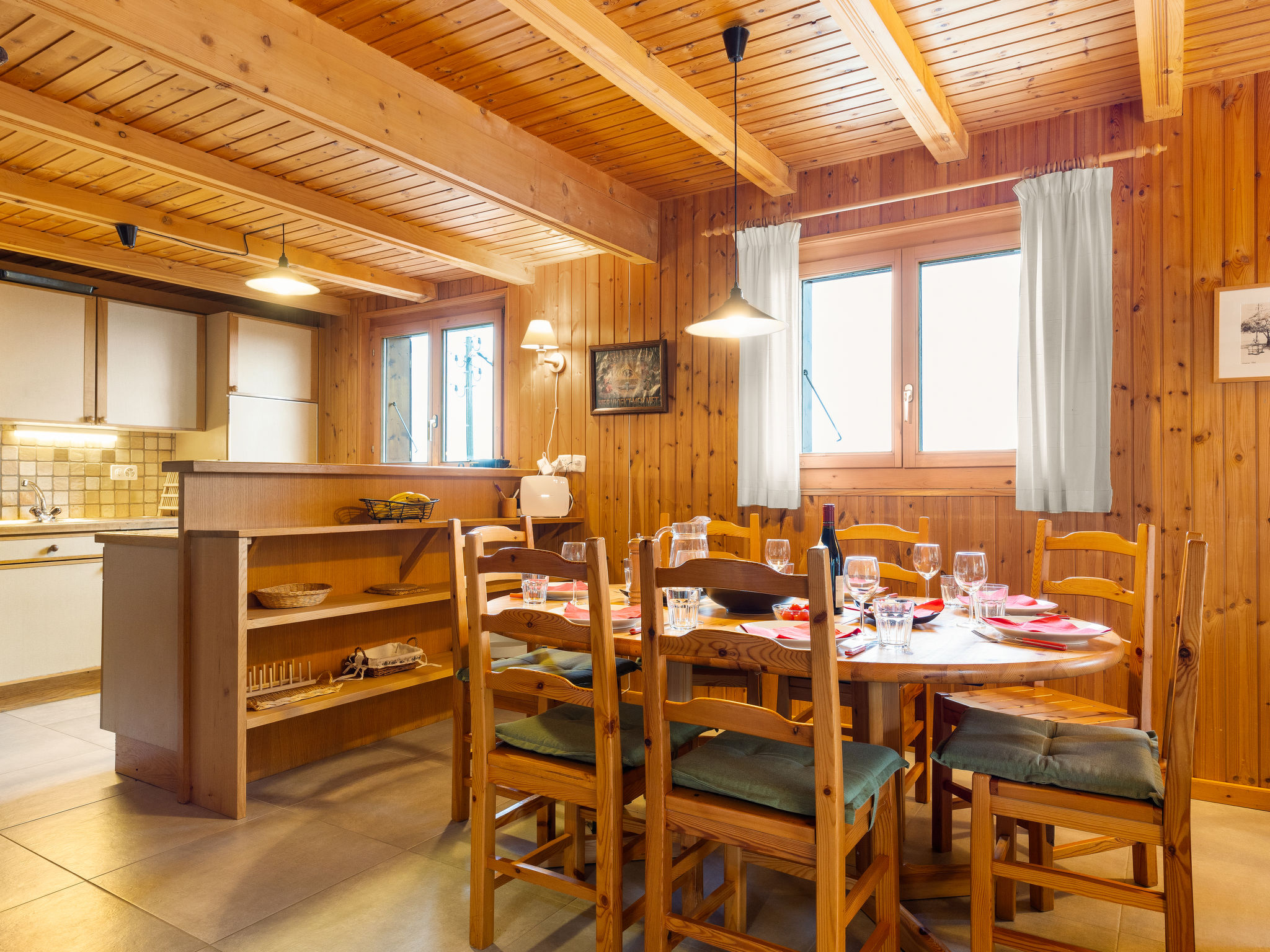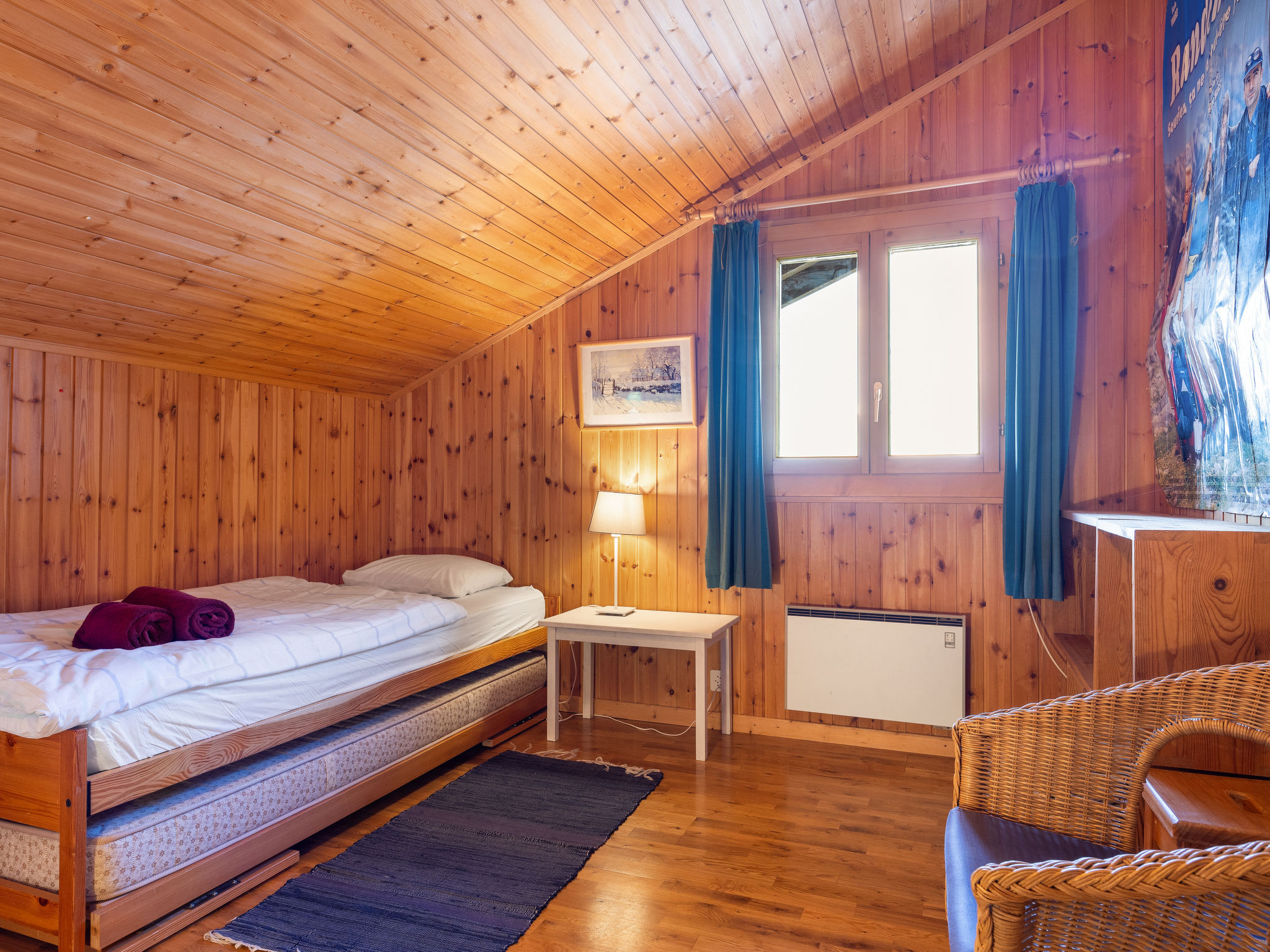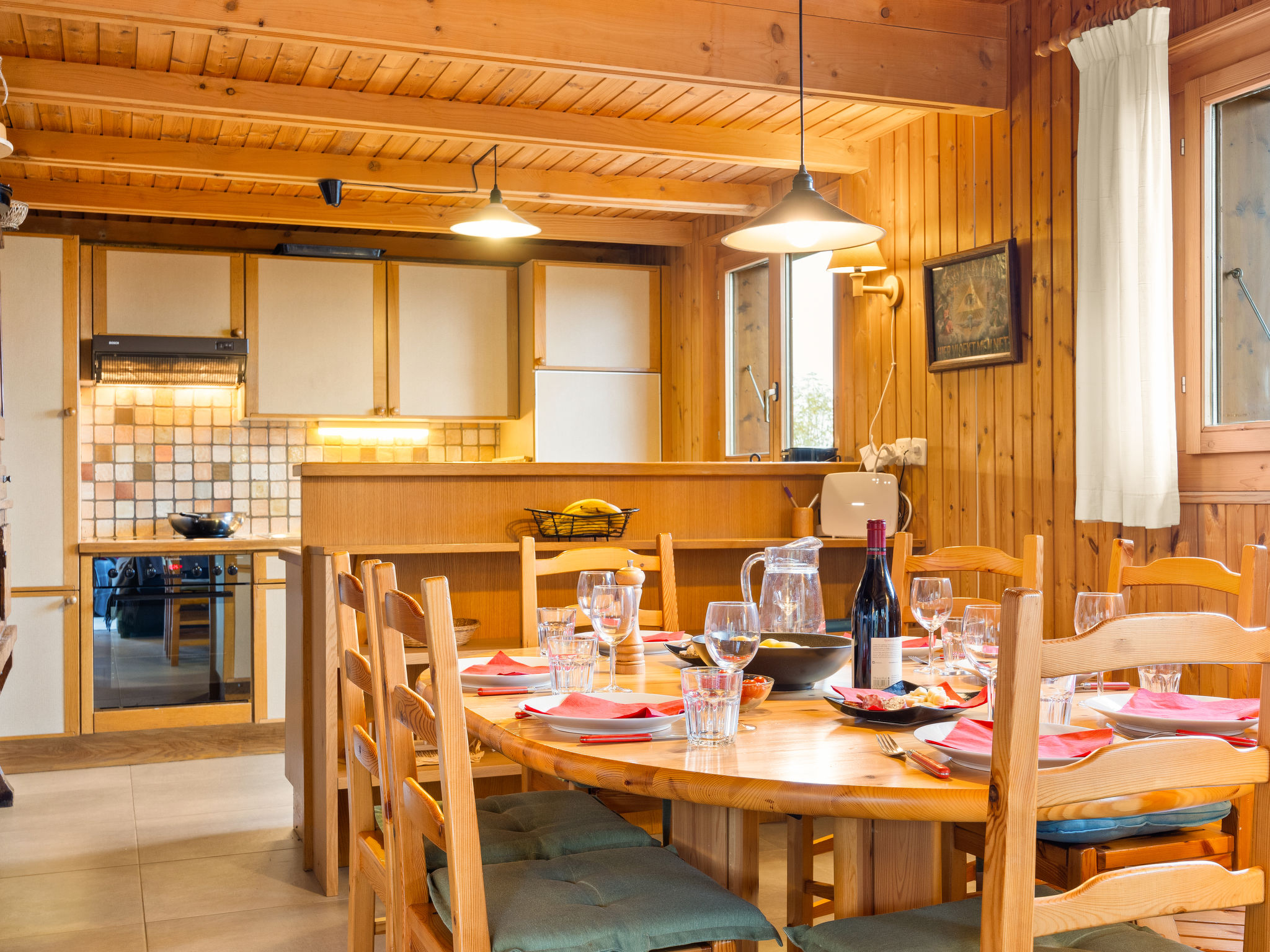 "Chalet Seravalle", 4-Zimmer-Chalet 137 m2 auf 2 Stockwerken. Objekt geeignet für 5 Erwachsene + 3 Kinder. Zweckmässig und gemütlich eingerichtet: Wohn-/Esszimmer mit offenem Kamin, TV und Boiler. Ausgang zur Terrasse. Offene Küche (4 Kochplatten, Backofen, Geschirrspüler, Toaster, Wasserkocher, elektrische Kaffeemaschine, Kapseln für die Kaffeemaschine (Nespresso) extra, Racletteofen, Fondue Set (Käse)). Dusche/WC. Ölheizung. Heizung nicht in allen Räumen. Obergeschoss: 1 Zimmer mit 1 Doppelbett (160 cm, Länge 200 cm). Ausgang zum Balkon. 1 Zimmer mit 1 Doppelbett (150 cm, Länge 200 cm). Ausgang zum Balkon. 1 Zimmer mit 1 Bett (90 cm, Länge 200 cm). 1 Kinderzimmer mit 1 Bett (90 cm, Länge 200 cm), 1 x 2 Etagenbetten (90 cm, Länge 200 cm). Bad, sep. WC, Doppelwaschbecken. Balkon, Terrasse. Terrassenmöbel. Sehr schöne Sicht auf die Berge. Zur Verfügung: Haartrockner. Internet (Wireless LAN, gratis). Parkplatz (2 Autos), Garage beim Haus. Bitte beachten: Nichtraucher-Unterkunft.