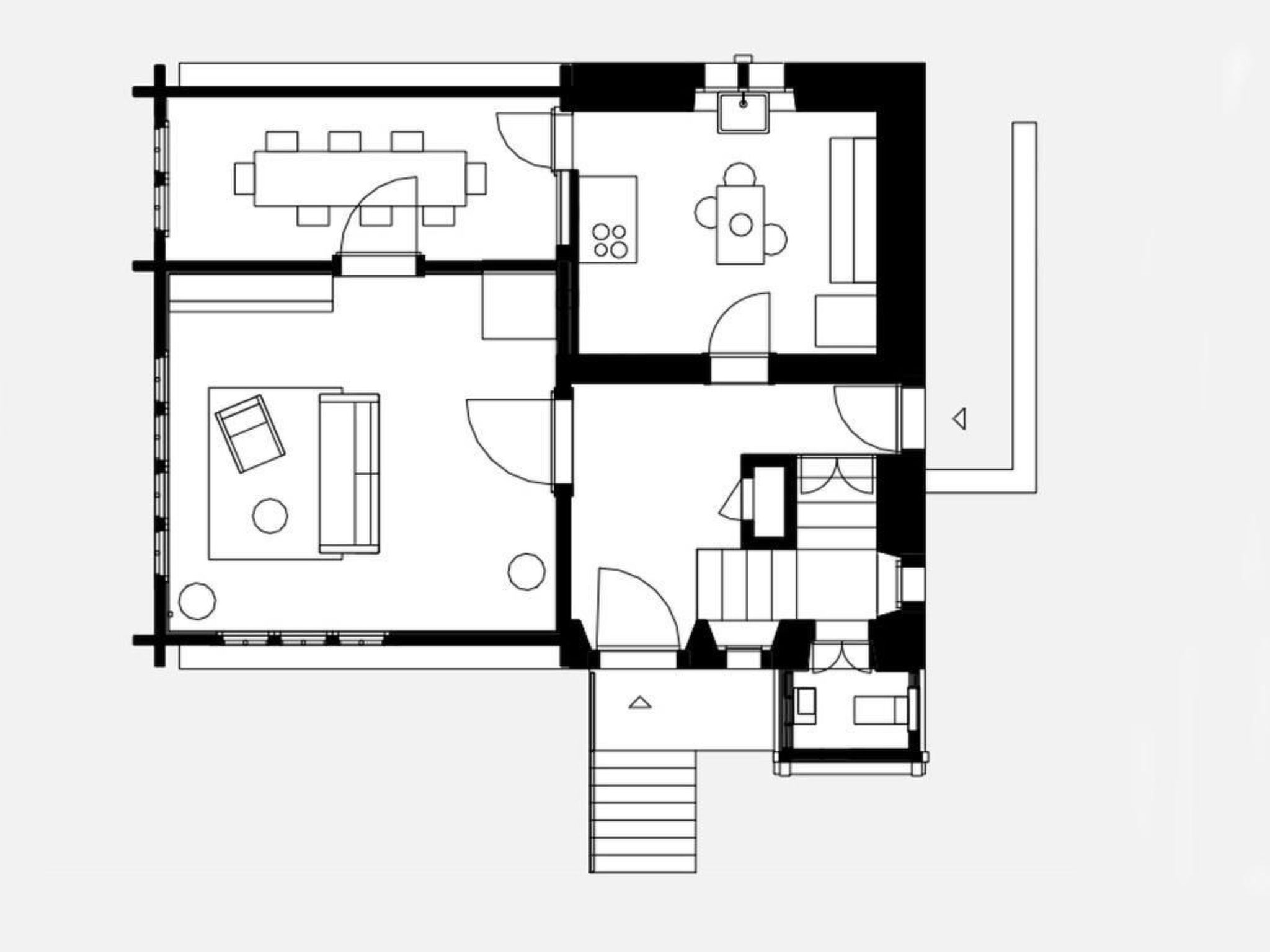 Anzahl Personen 7: Das Haus bietet Platz für sieben Gäste in vier Schlafzimmern (1 Doppelzimmer, ein Zimmer mit zwei Einzelbetten (gefangen), ein Schlafsofa im Musikraum im Sockelgeschoss, ein Einzelbett in der Kapelle und 1 Doppelbett ( 160x200) im Sommerzimmer (nur in den Sommermonaten nutzbar). Das Haus verfügt über drei Eingänge. Der Haupteingang befindet sich auf der Seite gegen die Kirche zu, dort liegt auch der Gartensitzplatz. Ein Eingang führt direkt zum Musikraum, welcher auch als Zimmer benutzt werden kann und der dritte Eingang ist über die Treppe zu erreichen und führt von der Dorfseite her ins Treppenhaus.