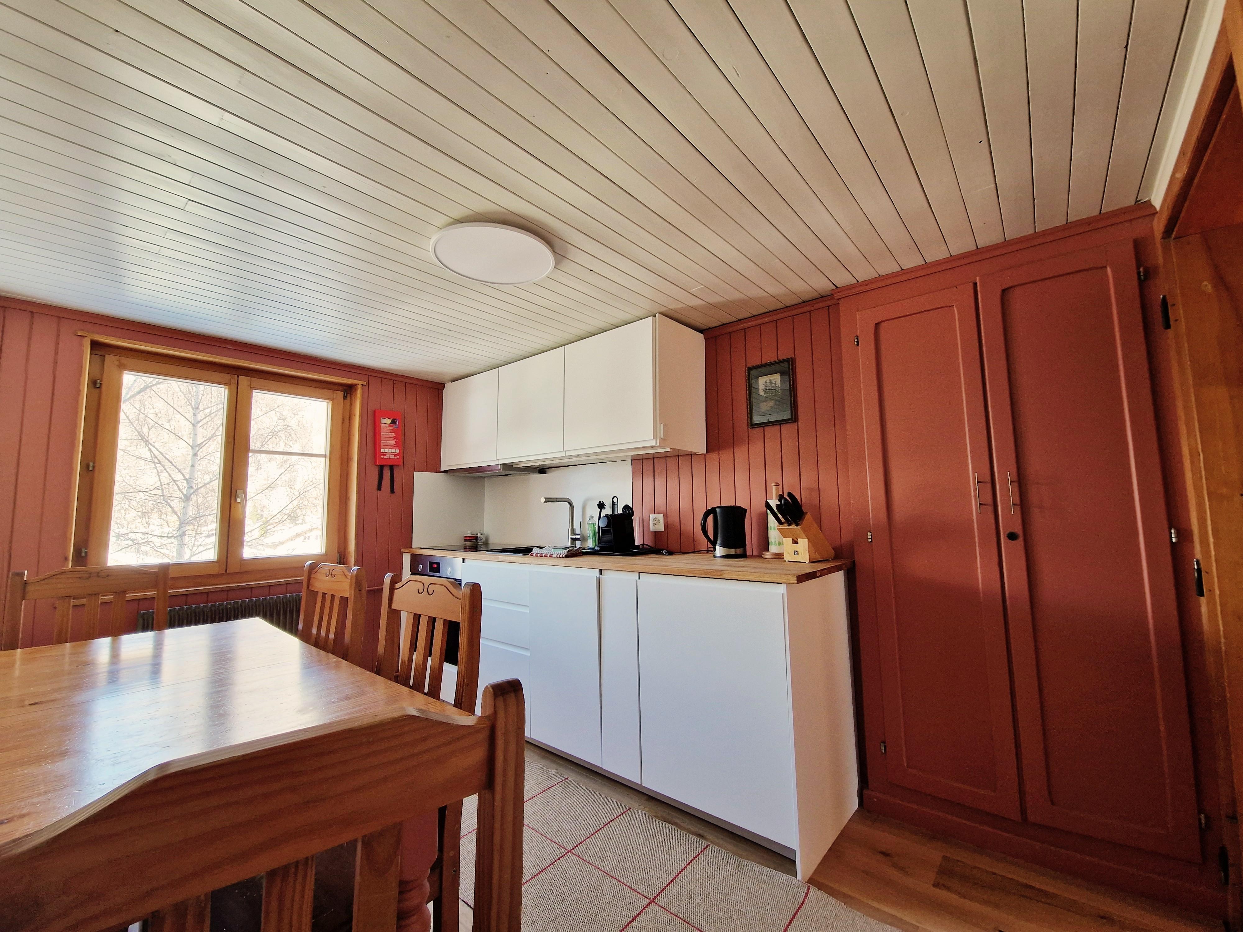Separate Küche: 2025 komplett saniert, modern ausgestattet mit Kühlschrank, Geschirrspüler, Kaffeemaschine sowie Fondue- und Raclette-Set