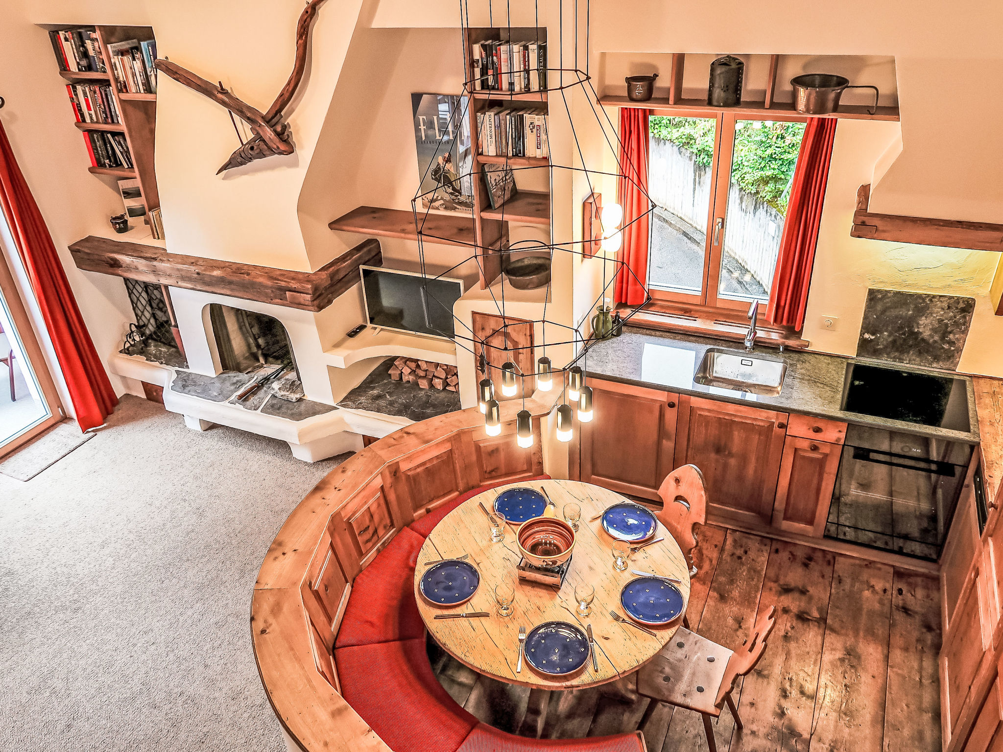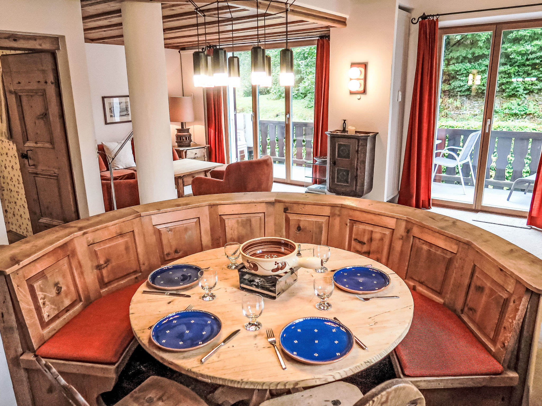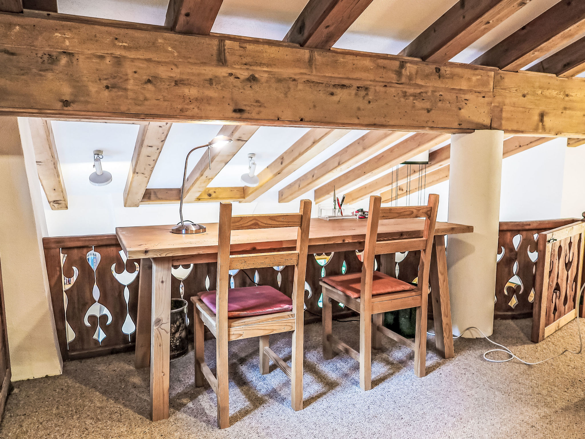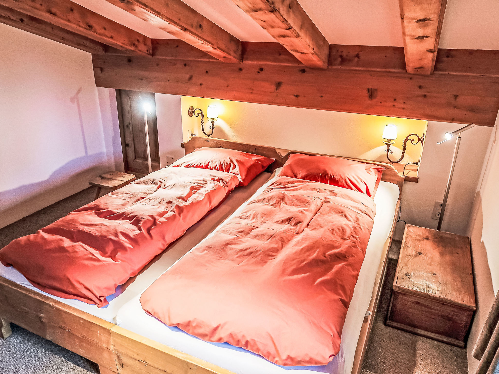 "Villa Waldpark", 5-Zimmer-Maisonette-Wohnung 85 m2 auf 2 Stockwerken im 1. Stock. Komfortabel und gemütlich eingerichtet: Wohn-/Esszimmer mit Sat-TV (Flachbildschirm). Ausgang zum Balkon. 1 Zimmer mit 1 Doppelbett (160 cm, Länge 185 cm). 1 Kinderzimmer mit 1 x 2 Etagenbetten (90 cm, Länge 185 cm). Offene Küche (Backofen, Geschirrspüler, 4 Induktionskochplatten, Wasserkocher, elektrische Kaffeemaschine, Kapseln für die Kaffeemaschine (Nespresso) extra, Racletteofen, Fondue Set (Chinoise, Käse)) mit Esstisch. Bad/WC. Obergeschoss: Galerie. 1 Zimmer mit 1 Doppelbett (180 cm, Länge 185 cm). Dusche/WC. Balkon 10 m2, Südlage. Balkonmöbel, Liegestühle (1). Schöne Sicht auf die Berge und die Landschaft. Zur Verfügung: Waschmaschine. Internet (Wireless LAN, gratis). Garage Nr. 7 (1 Auto). Bitte beachten: geeignet für Familien. Nichtraucher-Unterkunft.