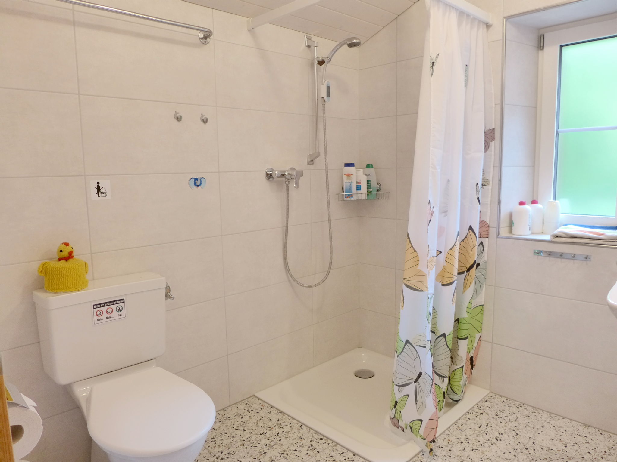 "Beim Thor Klein", 2-Zimmer-Wohnung 40 m2, im Obergeschoss. Geräumig und hell, einfach und gemütlich eingerichtet: offenes grosses Wohn-/Schlafzimmer mit 2 Betten (90 cm, Länge 200 cm), Esstisch, Flachbildschirm, Radio, Stereoanlage und DVD. 1 Zimmer mit 1 x 2 Etagenbetten (90 cm, Länge 200 cm). Offene Küche (Backofen, Geschirrspüler, 3 Glaskeramikplatten, Toaster, Wasserkocher, Mikrowelle, elektrische Kaffeemaschine, Kapseln für die Kaffeemaschine (Delizio) extra, Racletteofen, Fondue Set (Käse)). Dusche/WC. Kleine Terrasse. Balkonmöbel. Schöne Sicht auf die Berge und die Landschaft. Zur Verfügung: Babybett bis 2 Jahre (extra), Haartrockner. Internet (WLAN, gratis). Parkplatz (1 Auto). Bitte beachten: Nichtraucher-Unterkunft. Maximal 1 Haustier/Hund erlaubt.
