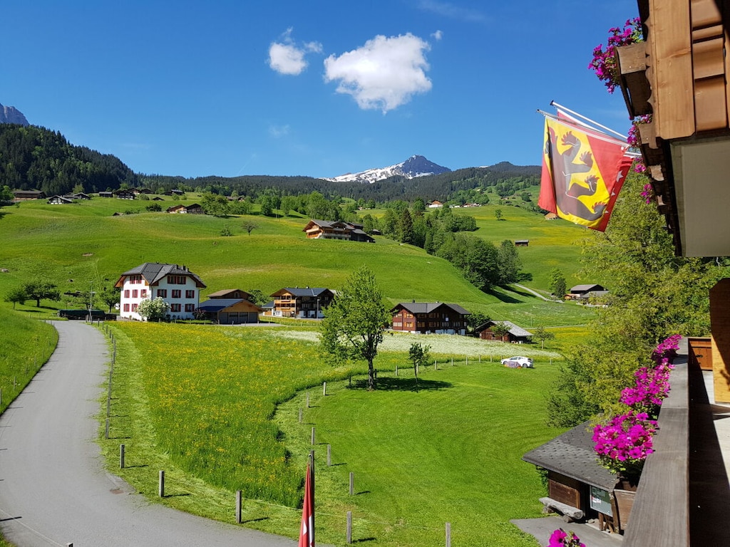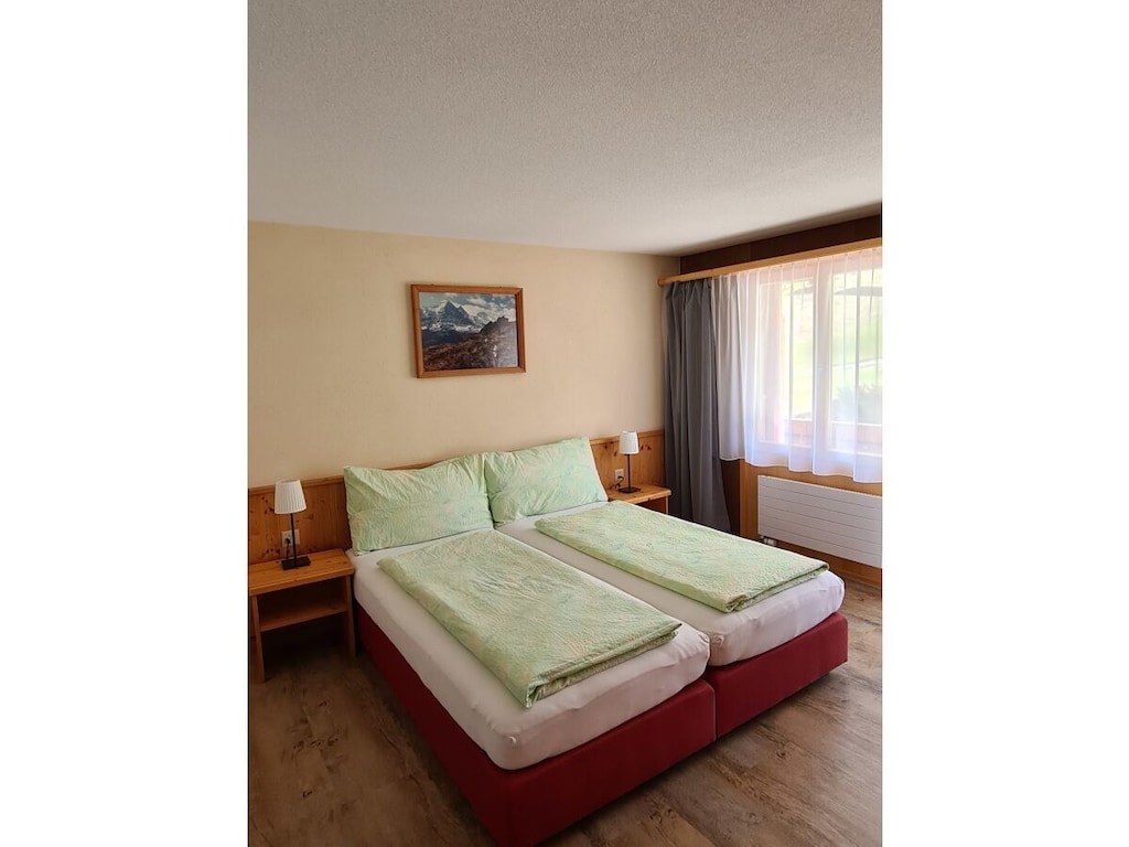 Sommerferien in den Bergen Ferienwohnung I im Chalet Bodenwald für zwei Personen an ruhiger und sonniger Lage, am Fusse der berühmten Eigernordwand, 4 Autominuten vom Dorfzentrum, 5 Minuten zu Fuss oder per Ski ( Winter ) zum Grindelwald Terminal. Der Modernste Terminal Der Alpen. Im Sommer ideal für Spaziergänge, Wanderungen, Biken, und andere Sportarten. Im Winter diverse Skipisten und Langlaufloipe bis zum Chalet. Für weitere Fragen stehen wir Ihnen jederzeit gerne zur Verfügung. Fam. Jossi
