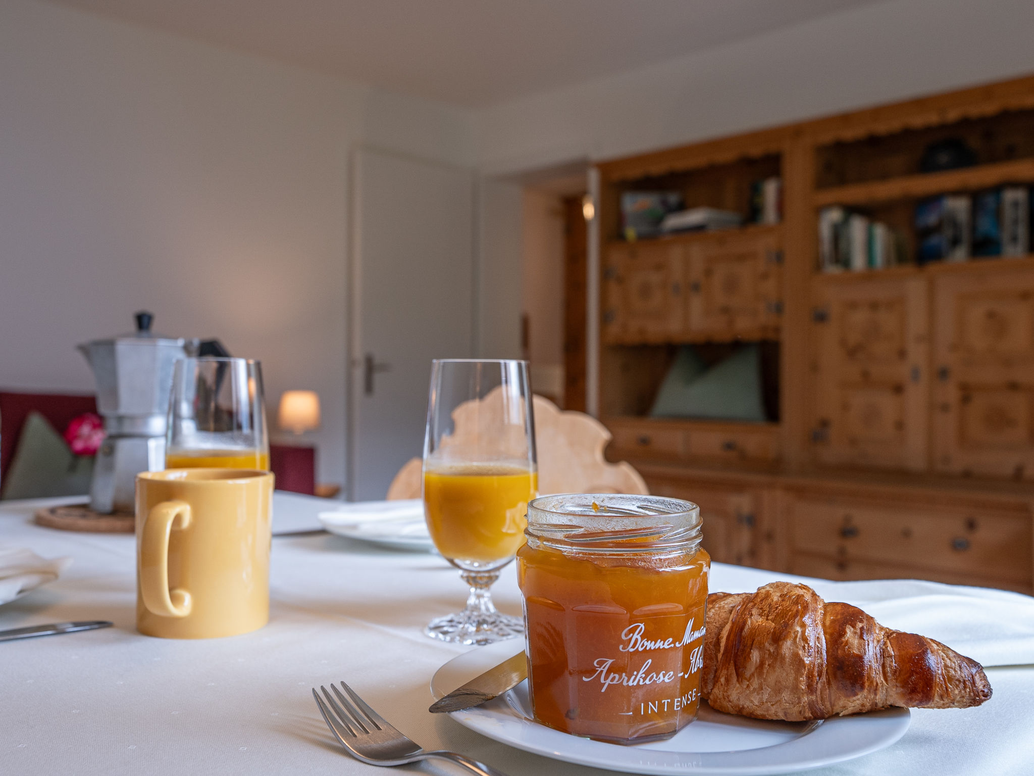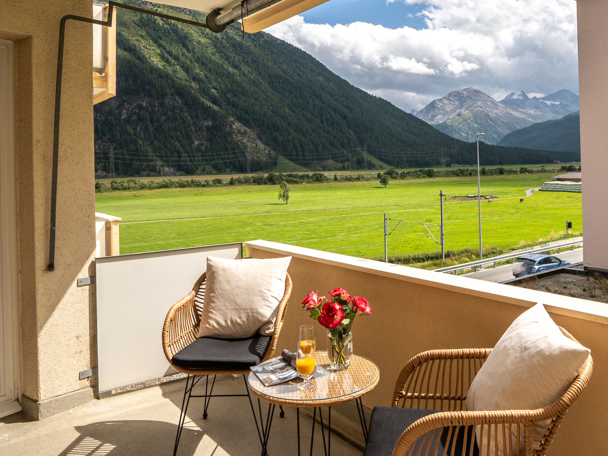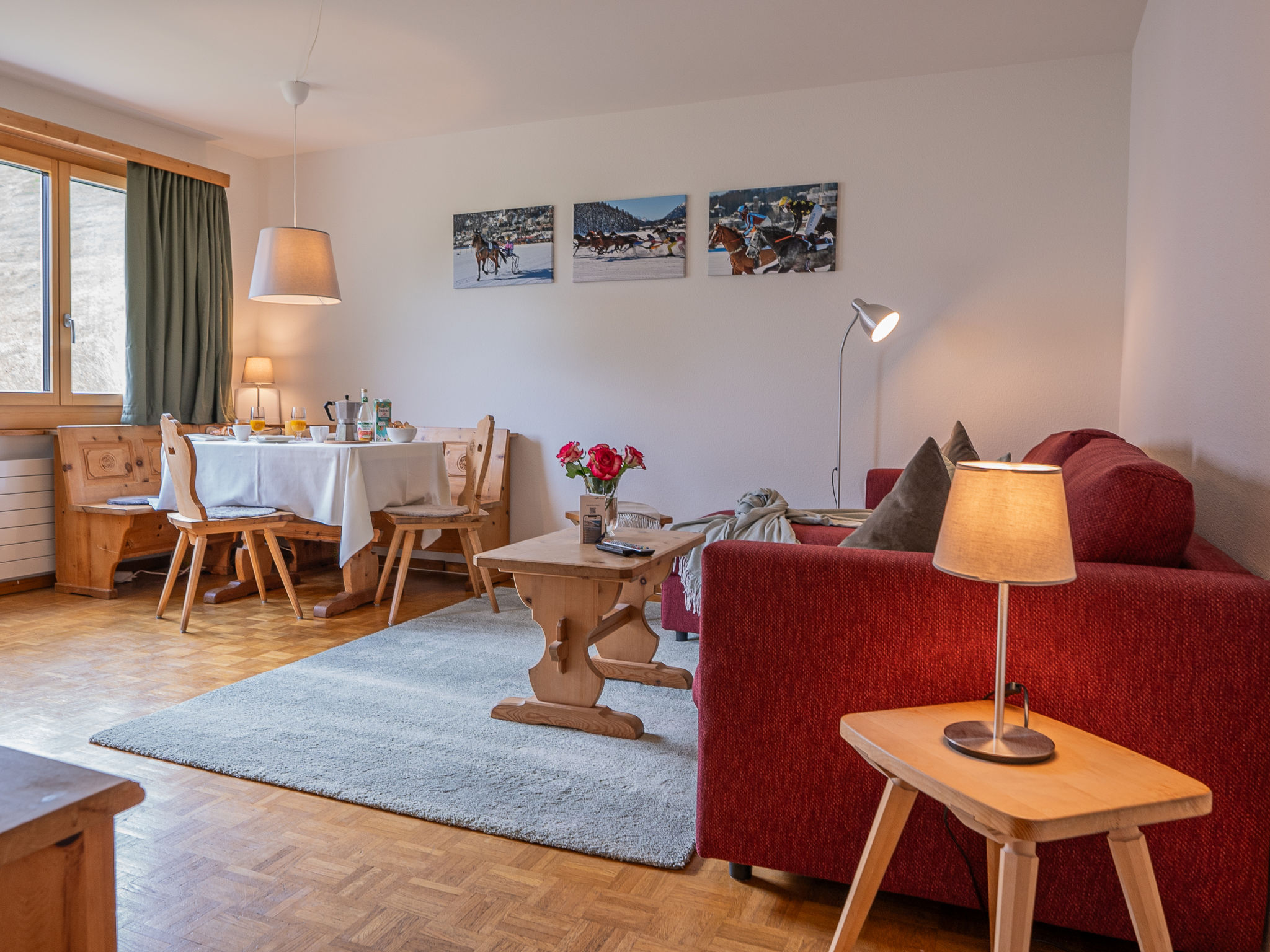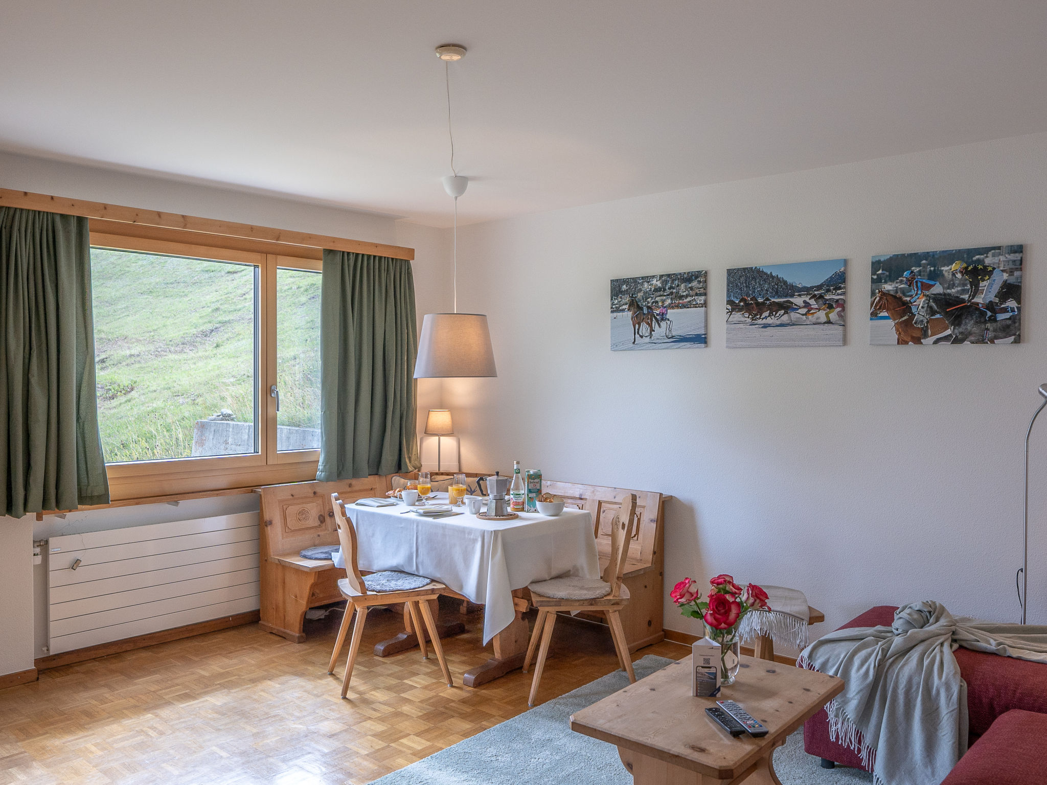 "Chesa Muntarütsch", 2-Zimmer-Wohnung 55 m2 im 2. Stock. Gemütlich und mit viel Holz eingerichtet: Wohn-/Esszimmer mit 1 Diwanbett (140 cm, Länge 190 cm), Esstisch und TV (Flachbildschirm). Ausgang zum Balkon. 1 grosses Doppelzimmer mit 1 Doppelbett (2 x 90 cm, Länge 200 cm). Ausgang zum Balkon. Küche (Backofen, Geschirrspüler, 4 Glaskeramikplatten, Toaster, Wasserkocher, elektrische Kaffeemaschine, Kapseln für die Kaffeemaschine (Nespresso) extra, Fondue Set (Käse)). Bad/WC. Heizung. Holzdielenboden. Balkonmöbel. Sicht auf die Berge, die Landschaft und die Ortschaft. Zur Verfügung: Bügeleisen, Haartrockner. Internet (Wireless LAN, gratis). Garage Nr. 2, Höhe 193 cm, Breite 230 cm. Bitte beachten: Nichtraucher-Unterkunft, Nichtraucher-Haus. Maximal 2 Haustiere/Hunde erlaubt.