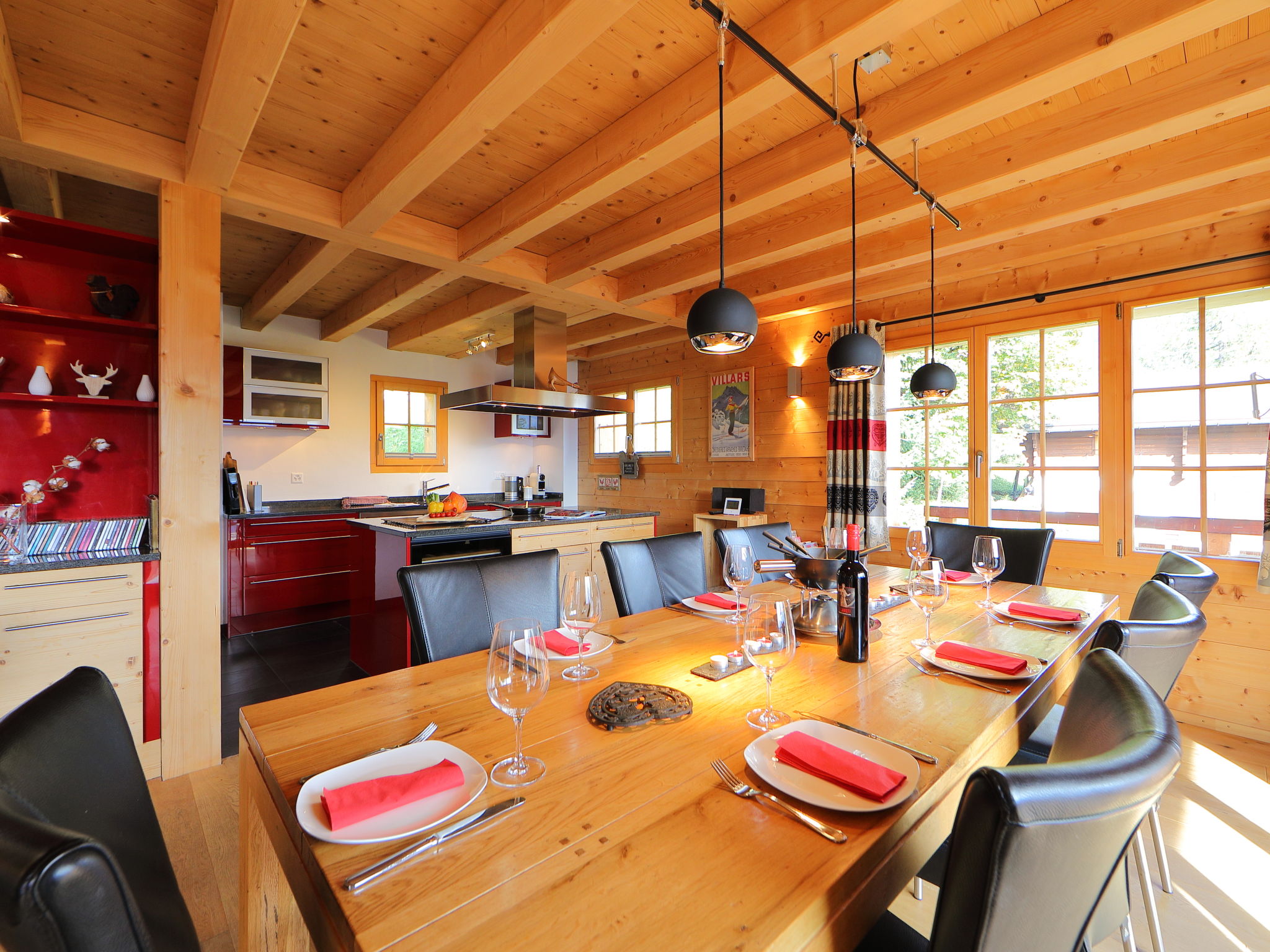 "Chalet Maurice", 6-Zimmer-Chalet 250 m2 auf 3 Stockwerken, Südlage. Sehr komfortabel und geschmackvoll eingerichtet: abgeschrägtes grosses Wohn-/Esszimmer 90 m2 mit offenem Kamin, Esstisch, sep. WC und TV (Flachbildschirm), Stereoanlage und DVD. Ausgang zum Balkon, Richtung Süden. 1 Zimmer mit 1 franz. Bett (160 cm, Länge 200 cm), Dusche/WC. Ausgang zur Terrasse. Offene Küche (Backofen, Geschirrspüler, 4 Induktionskochplatten, Toaster, Wasserkocher, Mikrowelle, Tiefkühler, elektrische Kaffeemaschine, Kapseln für die Kaffeemaschine (Nespresso) extra, Dampfgarer, Racletteofen, Kochinsel, Fondue Set (Käse)). Unteres Geschoss: 1 Zimmer mit 2 Betten (90 cm, Länge 200 cm). Ausgang zum Garten. 1 Zimmer mit 1 Doppelbett (2 x 90 cm, Länge 200 cm). Bad/WC, Dusche, Sauna. Obergeschoss: Durchgangszimmer. 1 abgeschrägtes Doppelzimmer mit 1 franz. Bett (2 x 90 cm, Länge 200 cm), Bad/Dusche/WC, TV und Flachbildschirm. Ausgang zum Balkon, Richtung Süden. Balkon, Südlage, grosse Terrasse, Südlage, Garten, Rasen. Terrassenmöbel, Gartengrill, Liegestühle (2). Sehr schöne Panoramasicht auf die Berge und das Tal. Zur Verfügung: Waschmaschine, Wäschetrockner, Sauna, Kinderhochstuhl, Babybett, Holz (extra). Internet (WLAN, gratis). Parkplatz (2 Autos). Bitte beachten: Nichtraucher-Haus. Maximal 1 Haustier/Hund erlaubt.